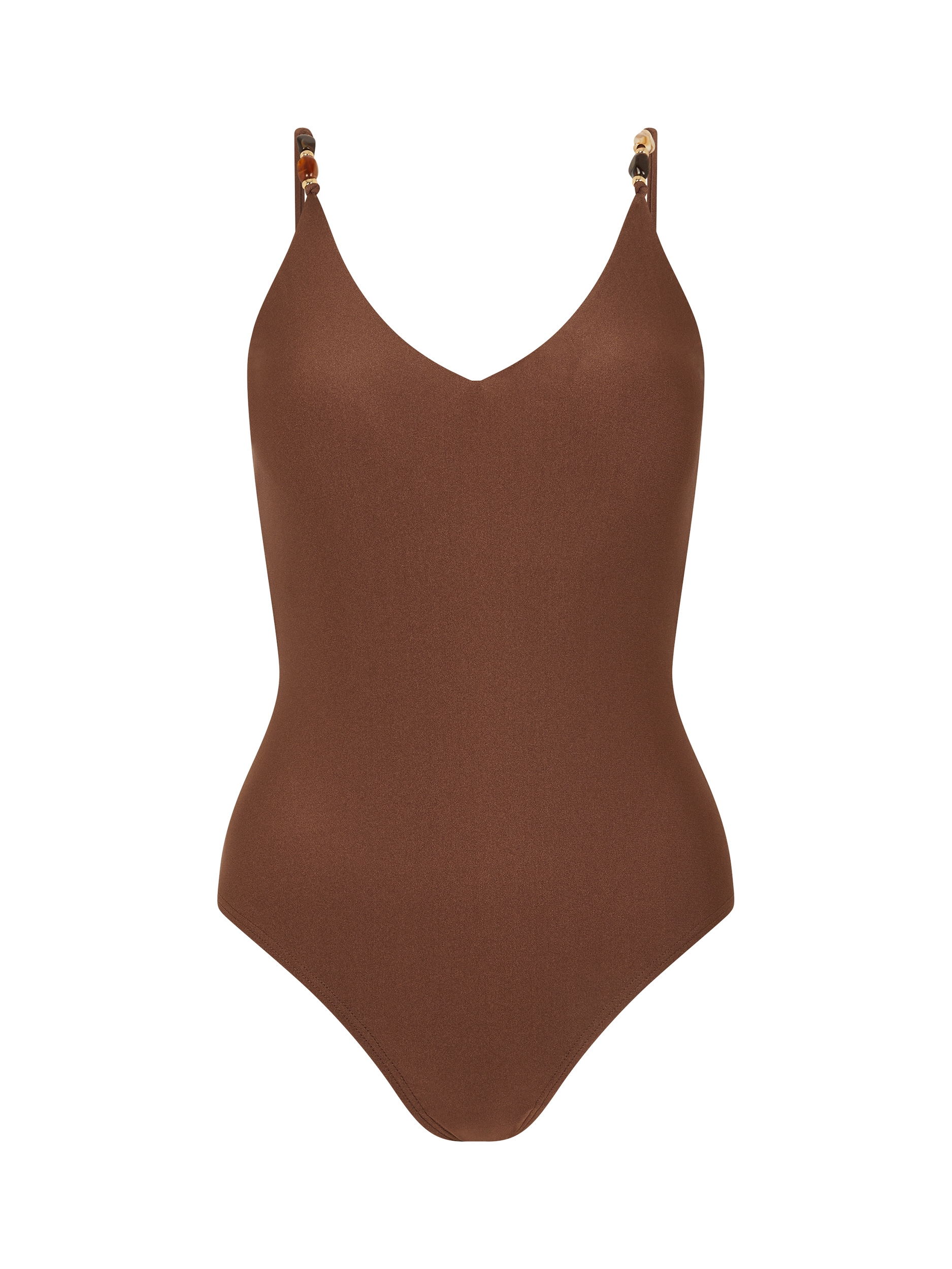 Designed in stretchy swim fabric, this swimsuit boasts a V-neckline with bead detailing on the straps to finish.