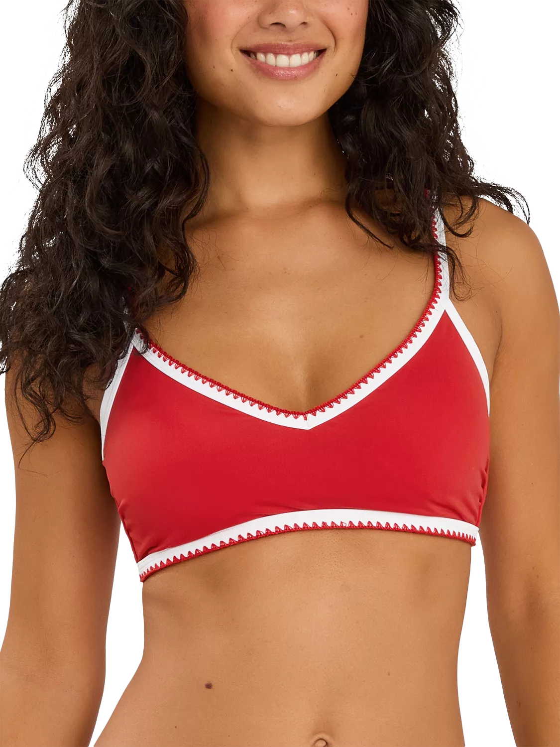 Featuring a vibrant tone and crochet trims, this bikini top is guaranteed to stand out poolside. Fastens with a clasp on the reverse.