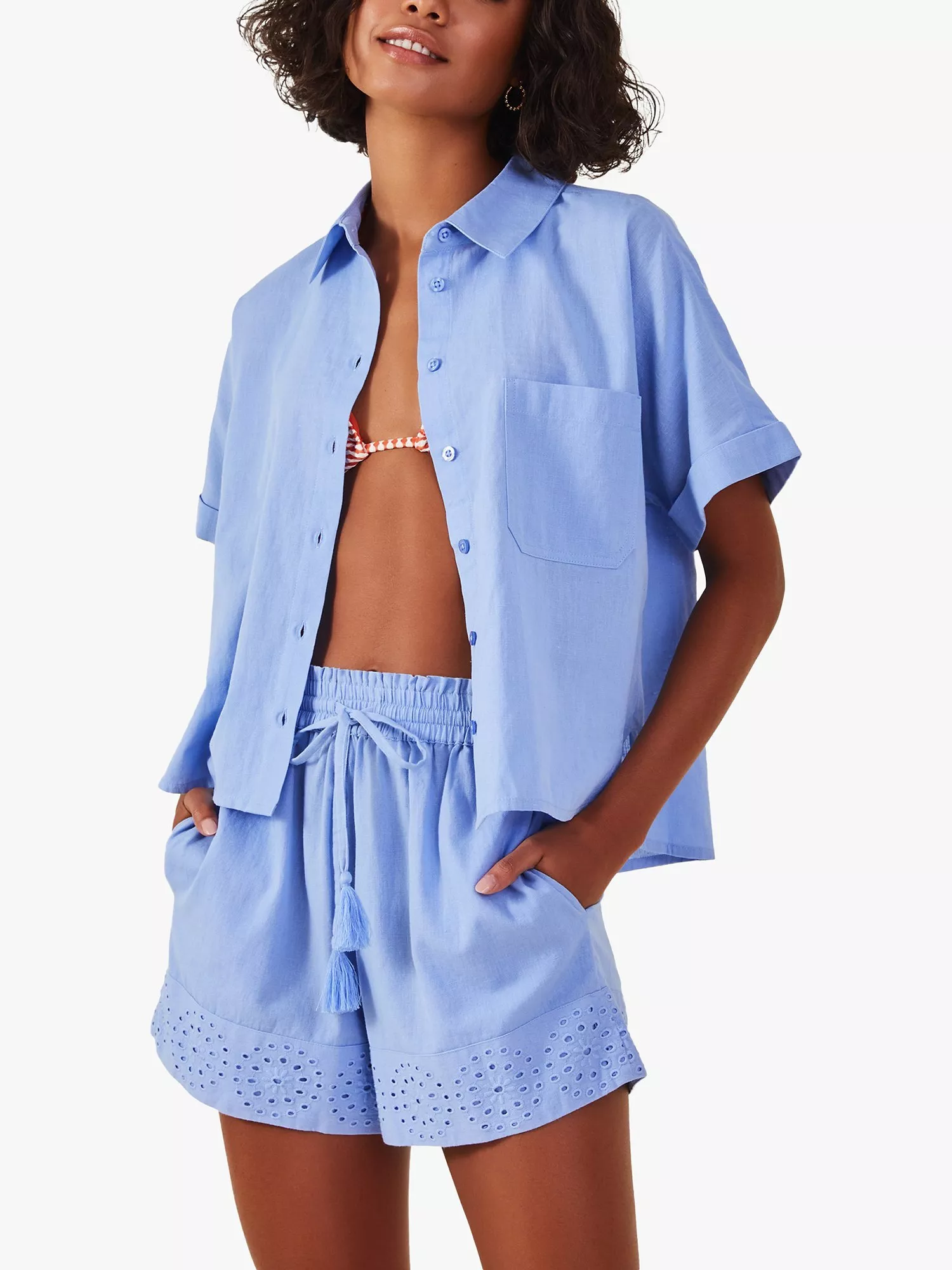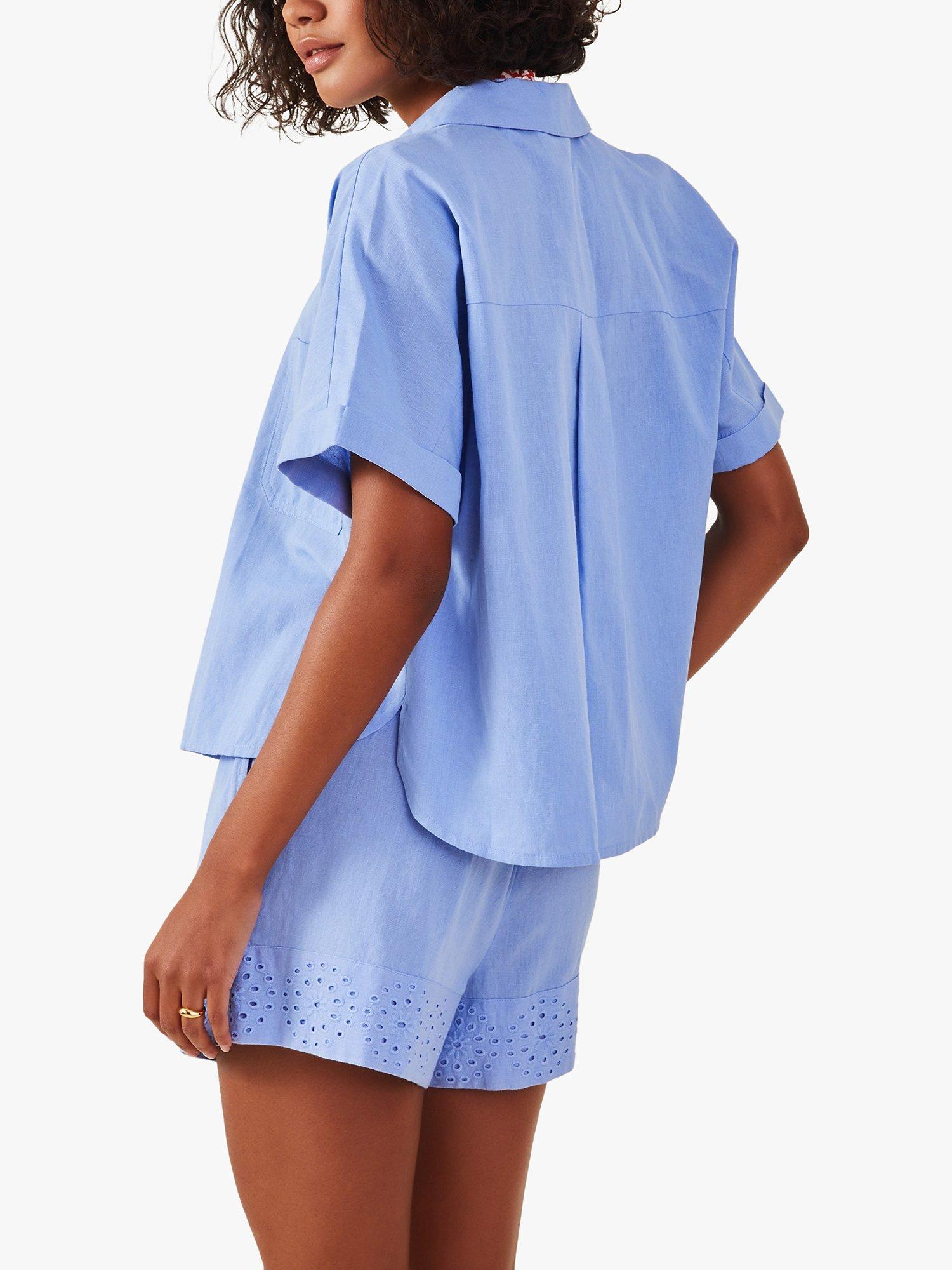 Structured with a collar and short sleeves, it is lightweight and breathable with a linen blend and pairs effortlessly with floaty summery skirts for warm days spent with good friends.