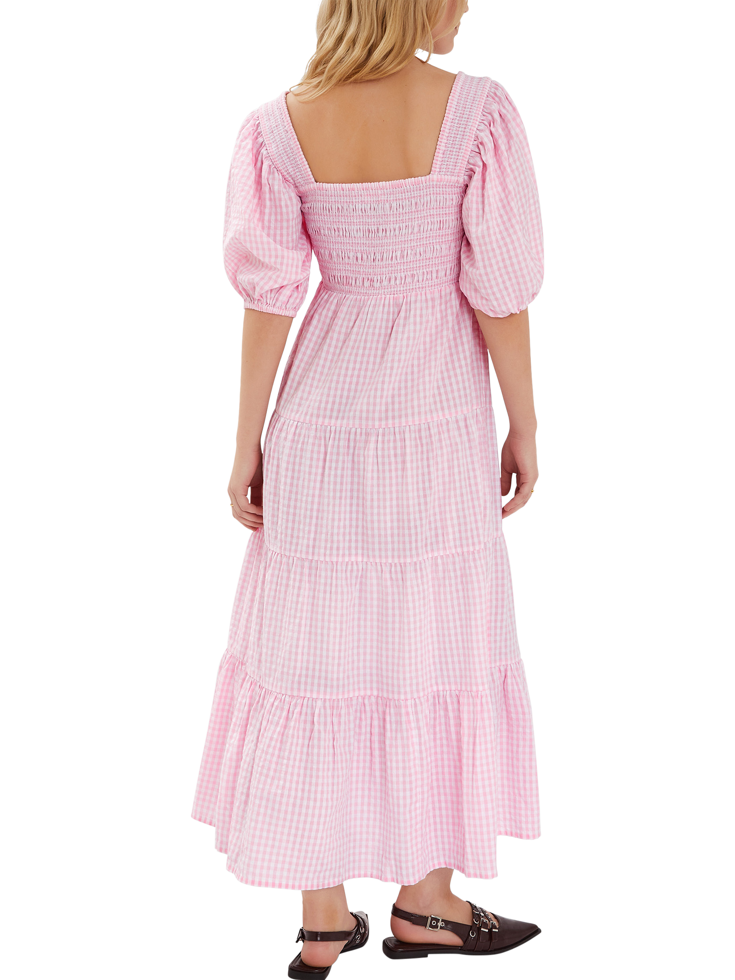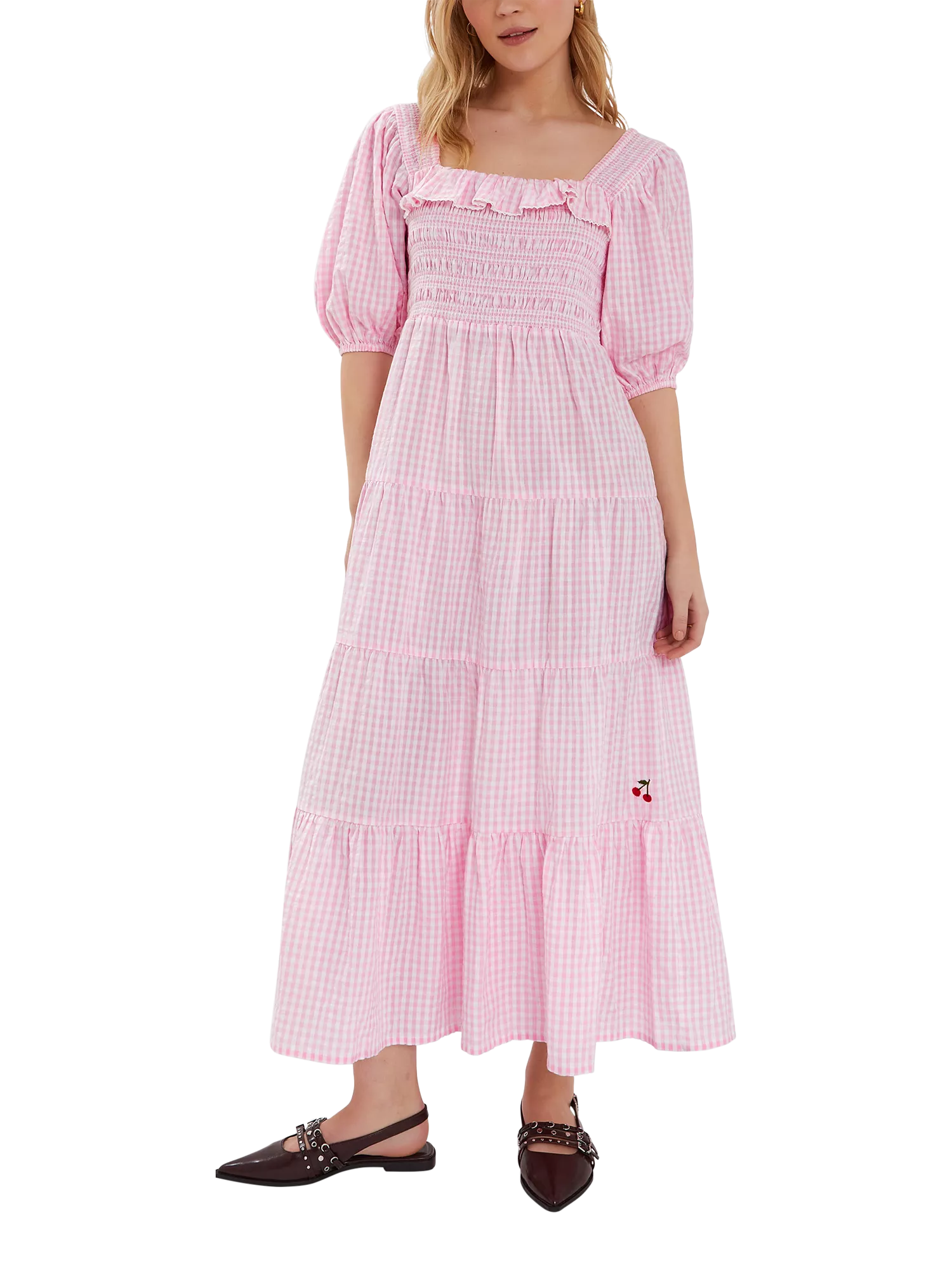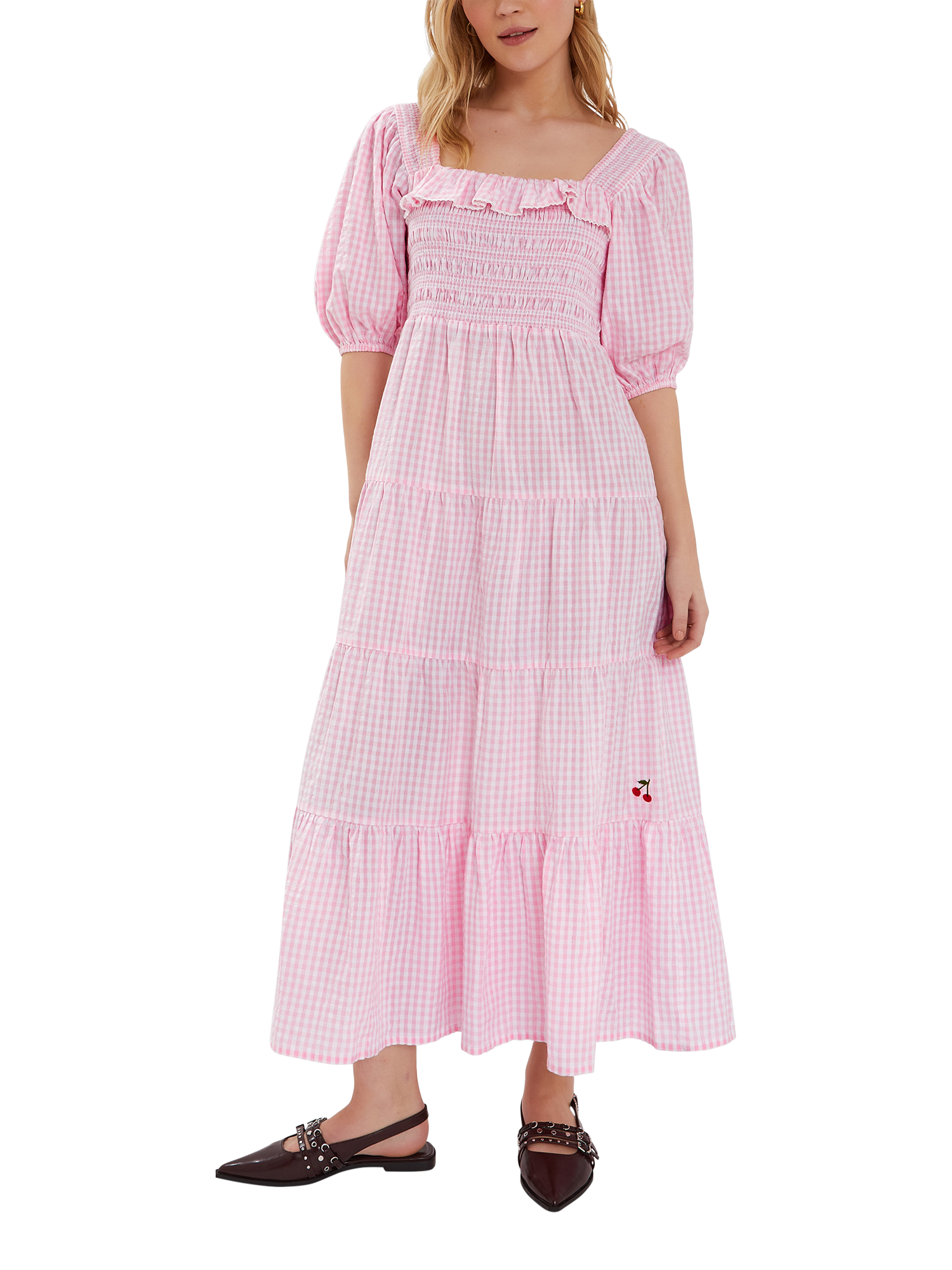 AccessorizeCherry Gingham Puff-Sleeve Maxi Dress, Pink