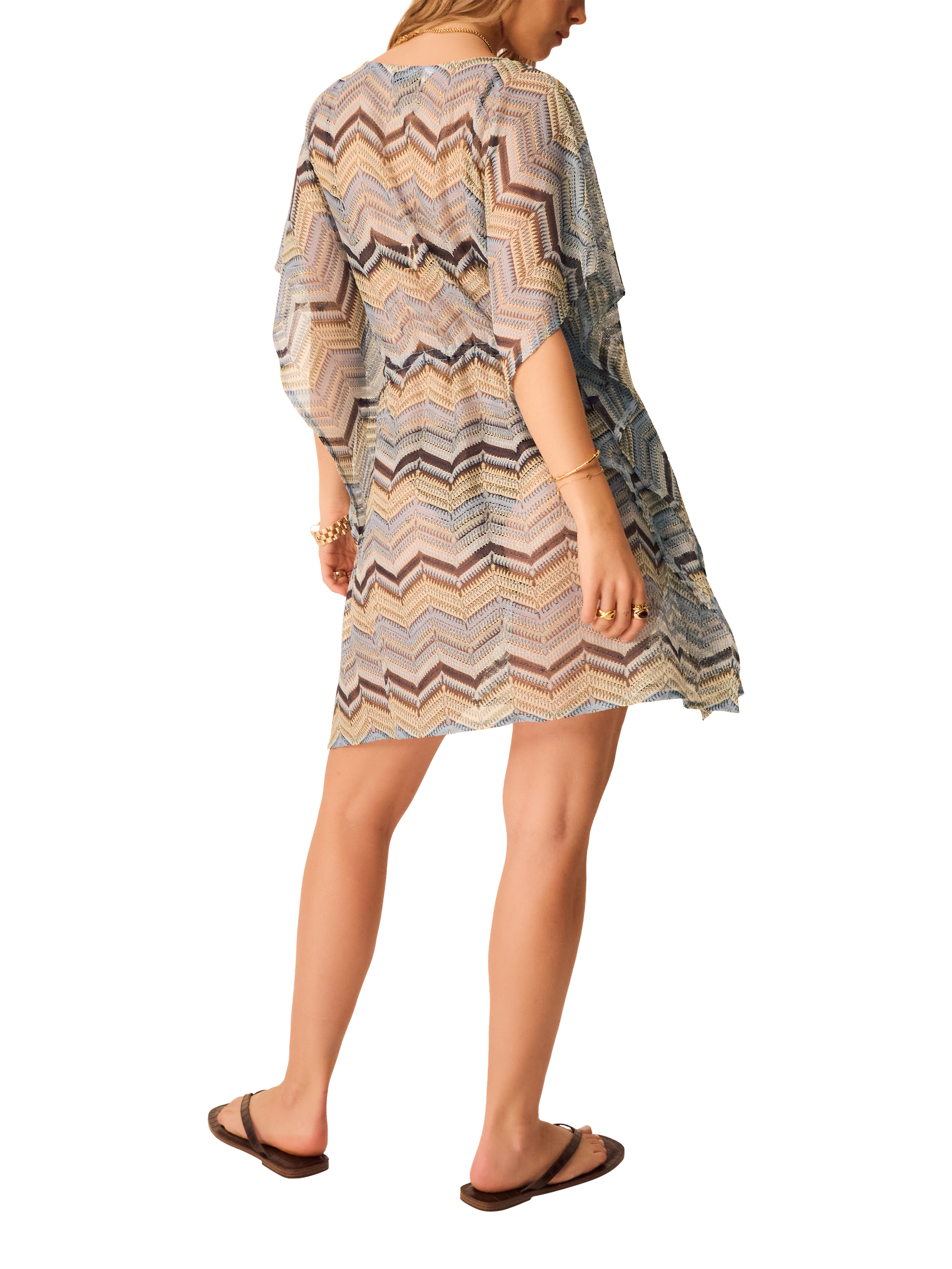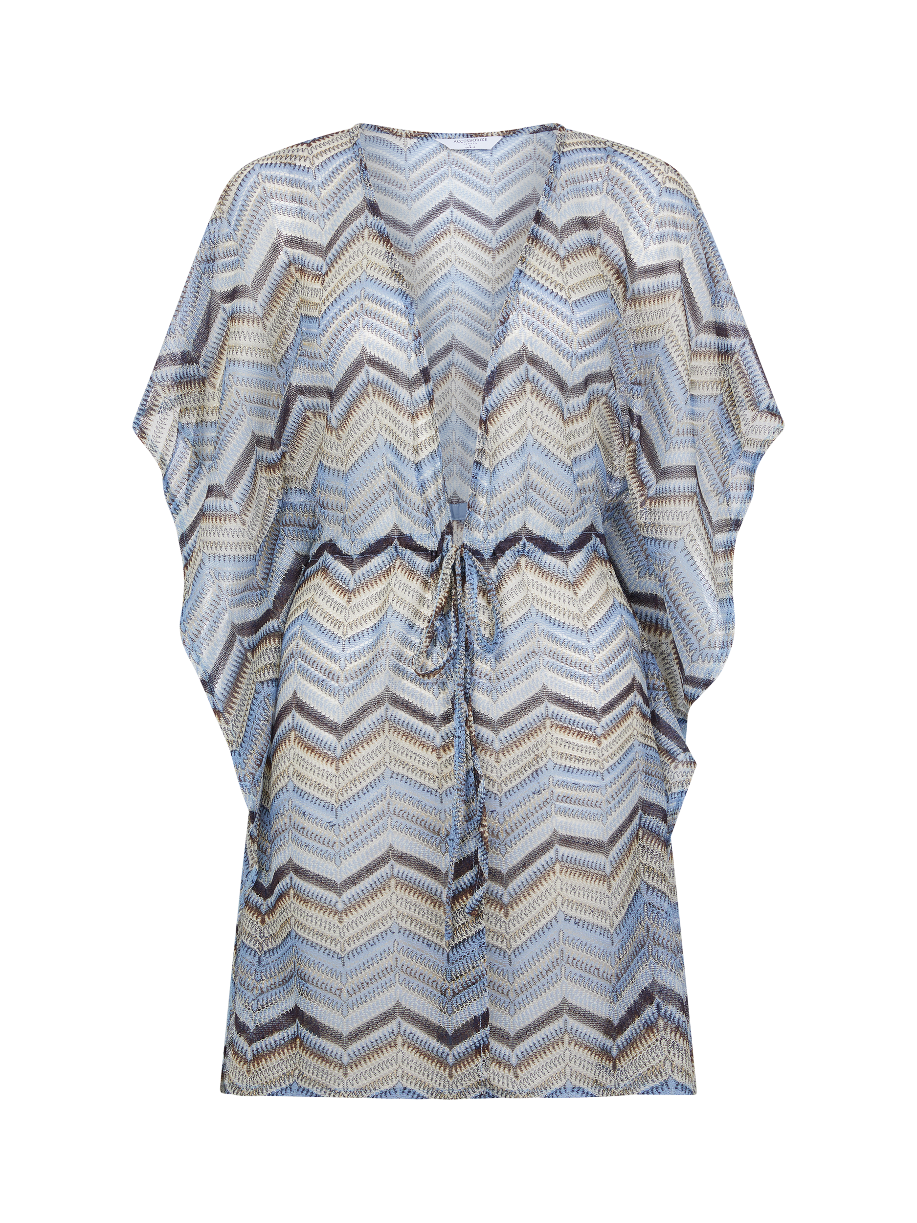 This mini kaftan has been woven with soft crochet, perfect for pulling over your bikini. Designed with floaty sleeves, a plunging neckline and an adjustable waist tie, it's a must-have for your swimwear collection. Sunnies on!