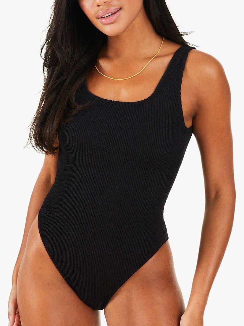 Getting you ready for a splash in no time, this crinkle swimsuit from Accessorize is styled with a classic scoop neckline and is cut with a scooped back and a high leg.