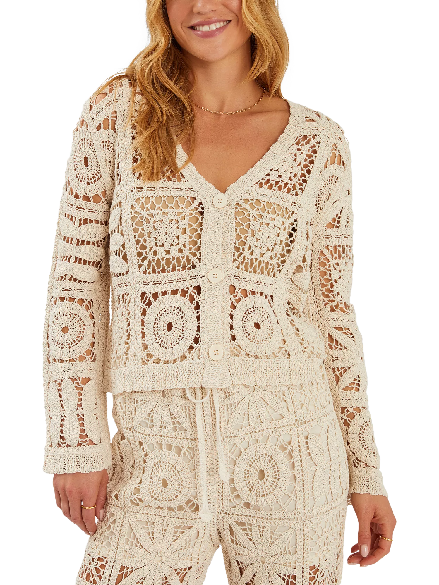 Whether you're wearing it over a bikini or pairing it with a strappy top, this crochet cardigan is a cute addition to your summer wardrobe. Stylish and lightweight, it's the perfect layer for warm, sunny days.