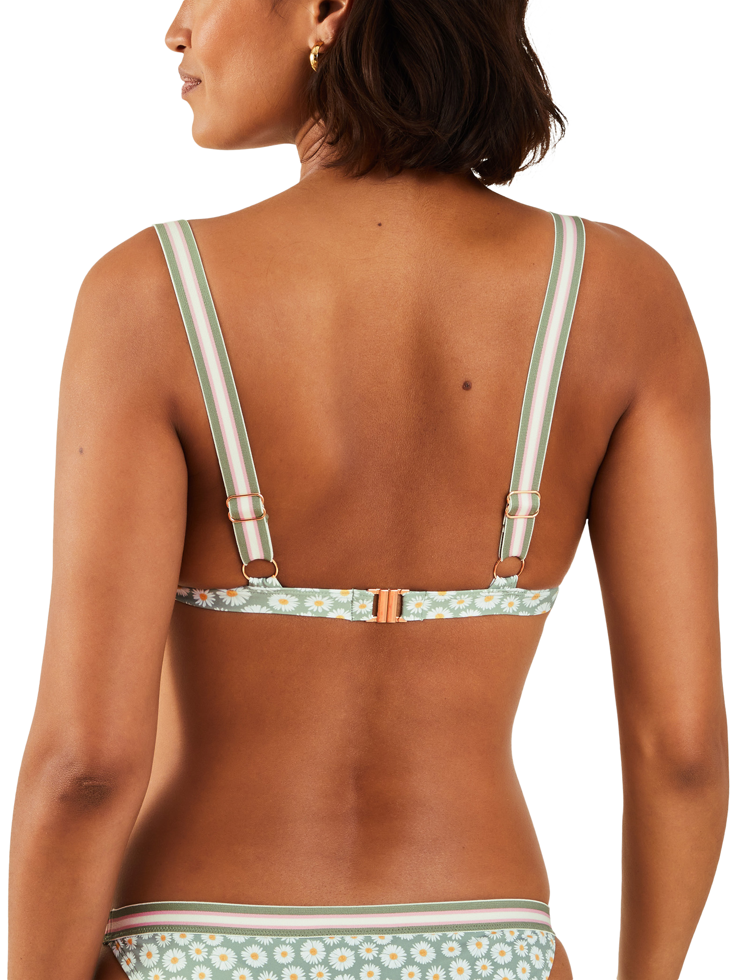 Printed with adorable daisies through the sage backdrop, this bikini top features contrast trims and sturdy straps for a secure fit.