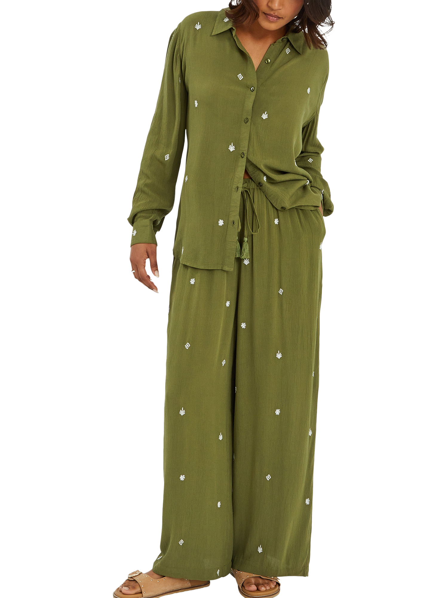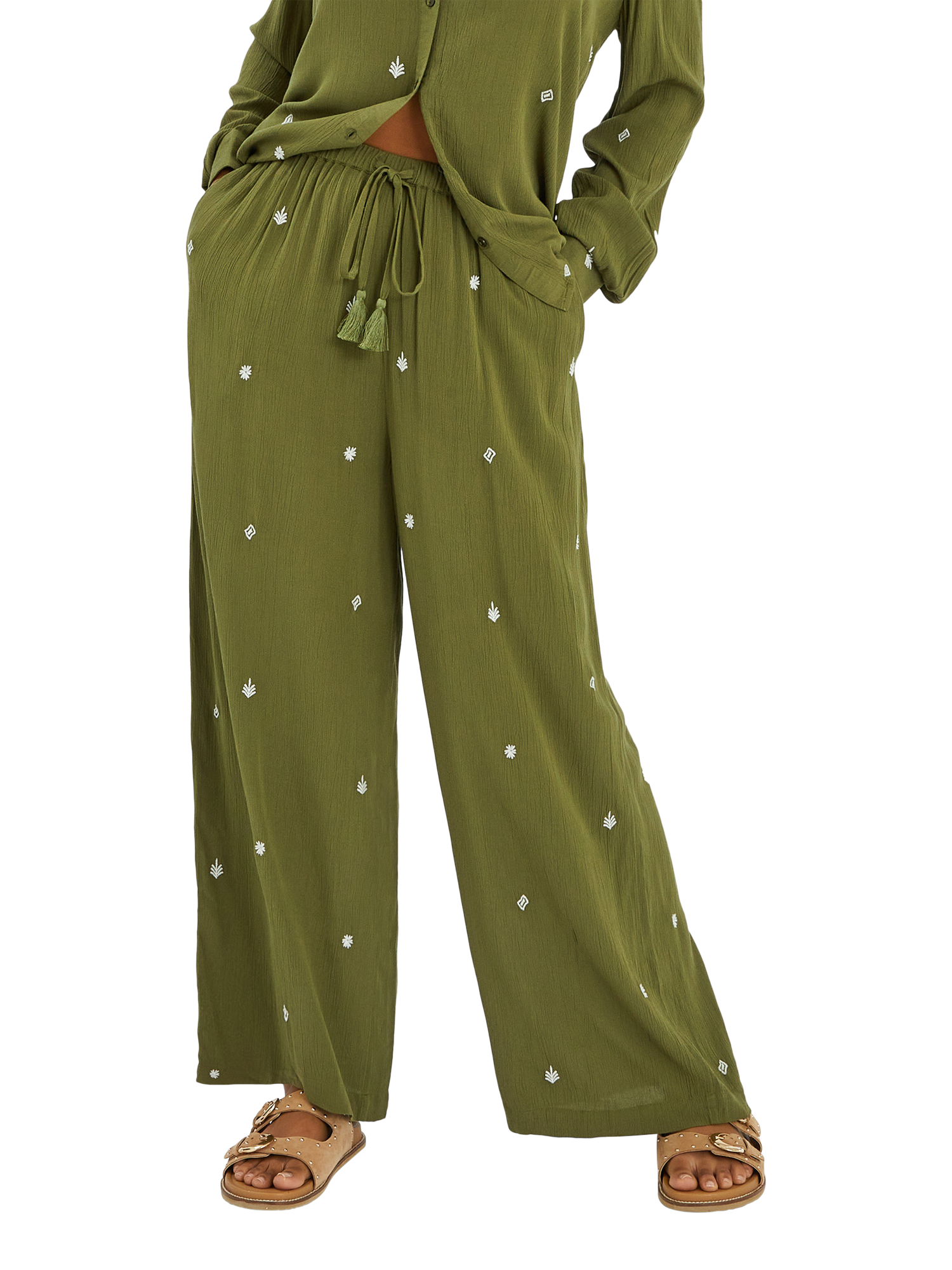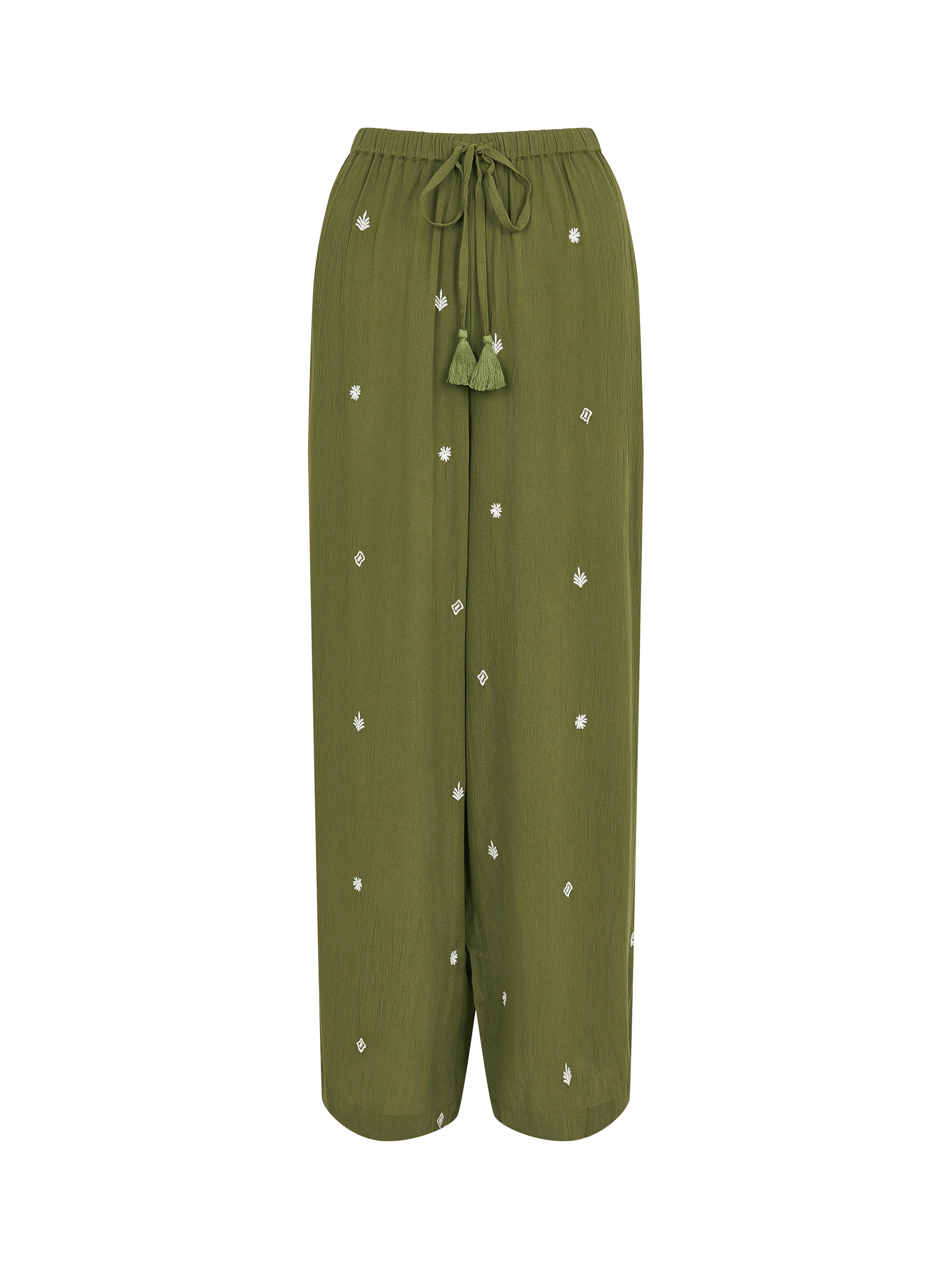 AccessorizeEmbroidered Crinkle Trousers, Khaki