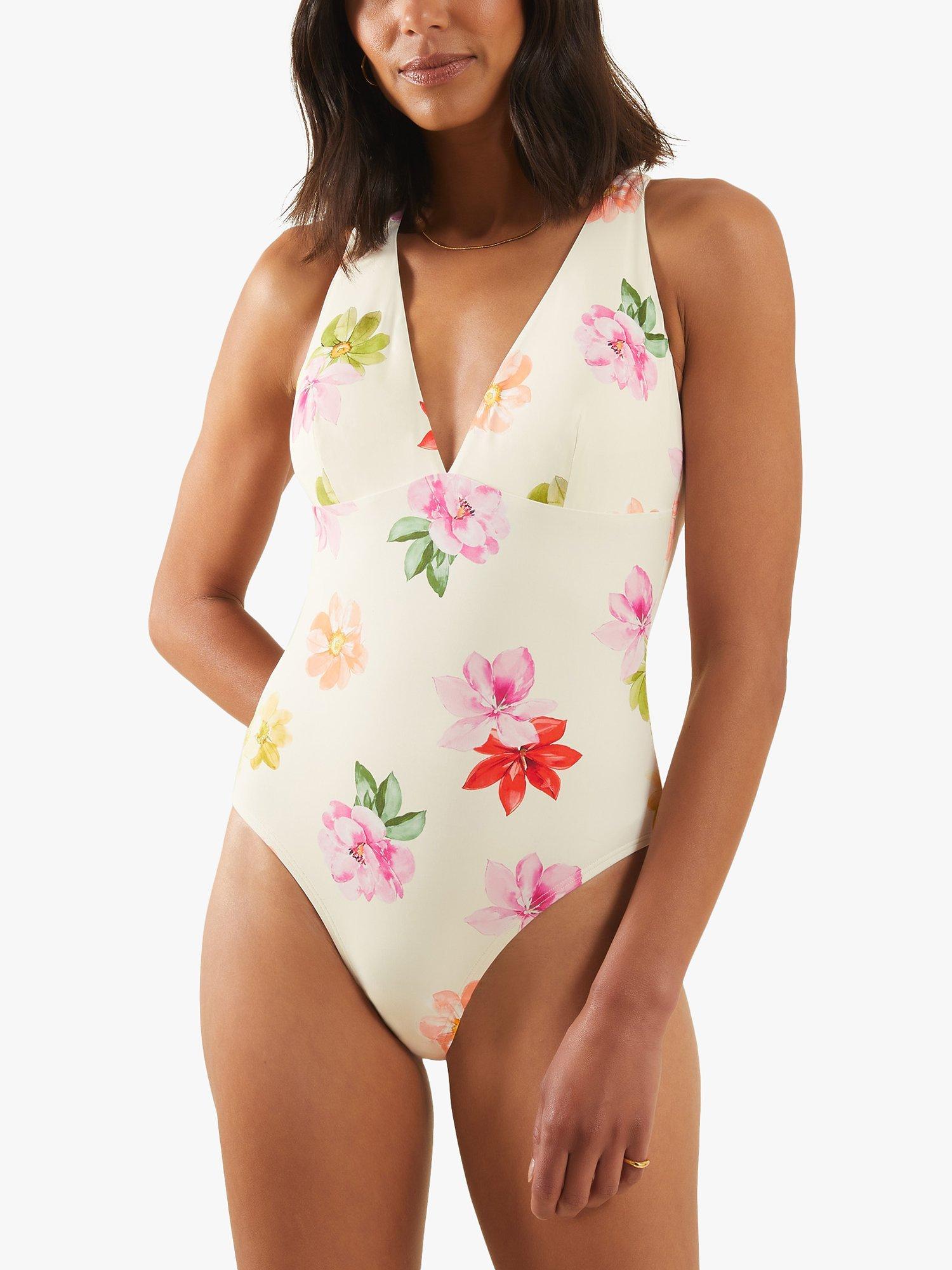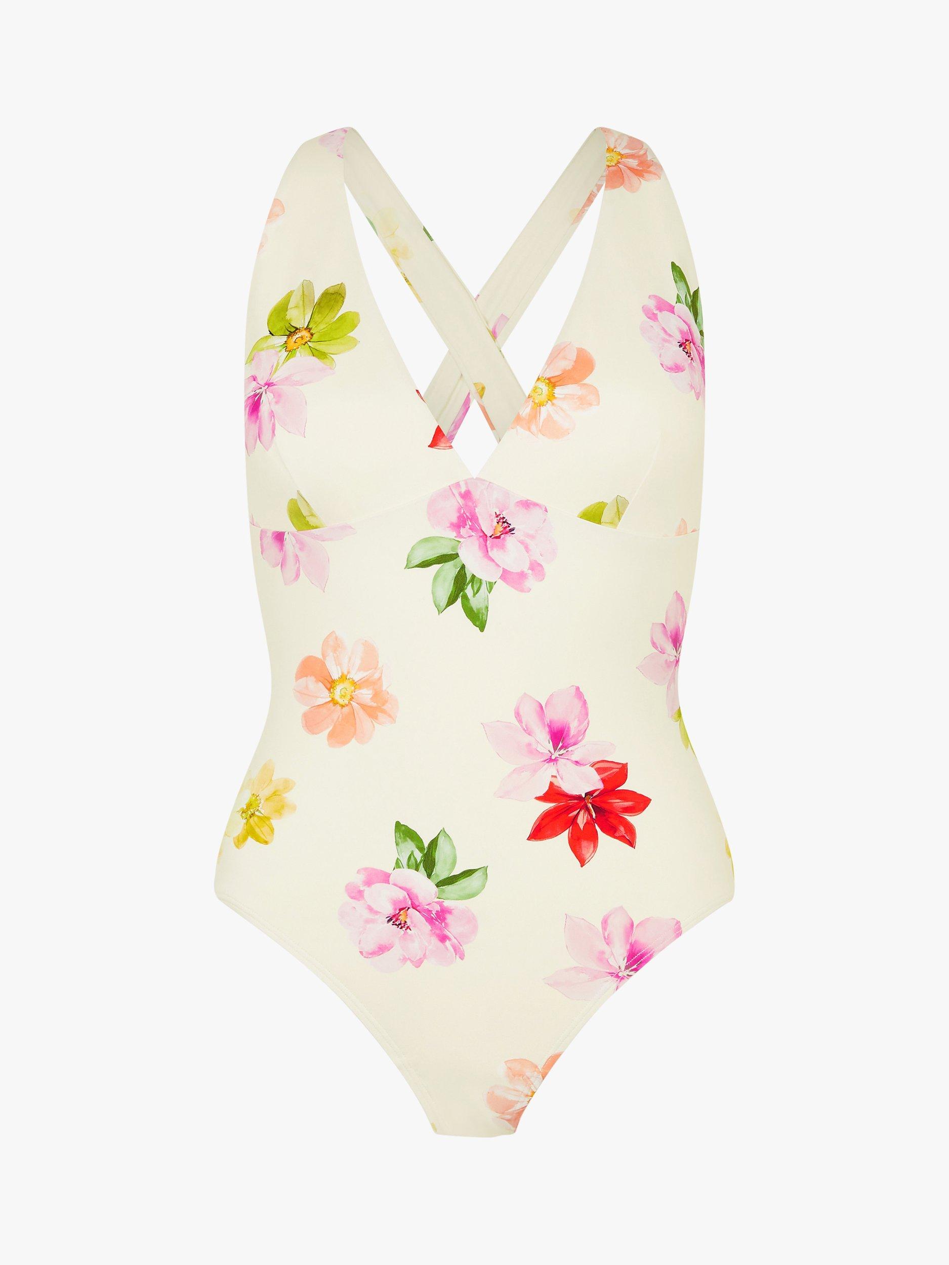 AccessorizeFloral Cross Back Swimsuit, White