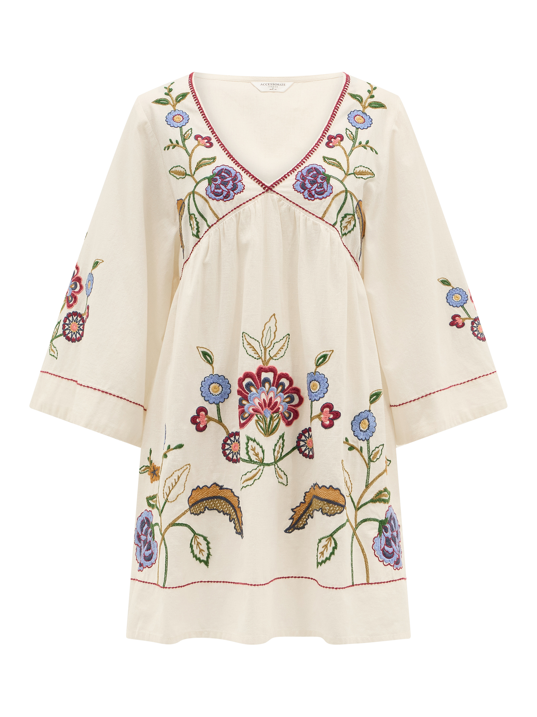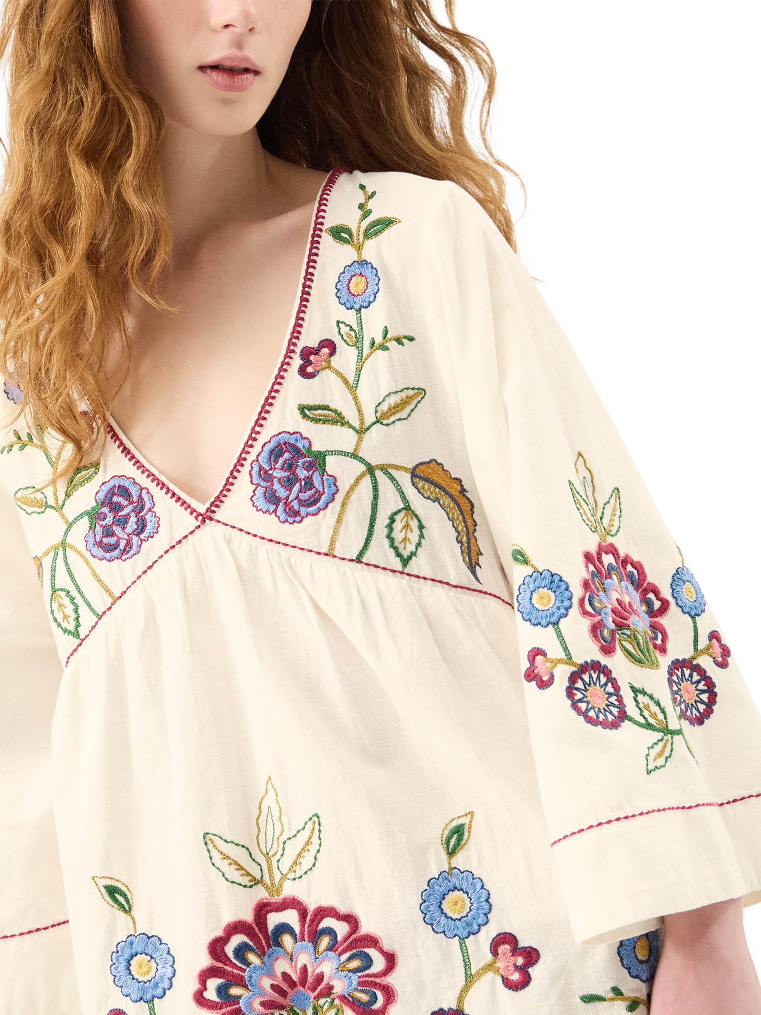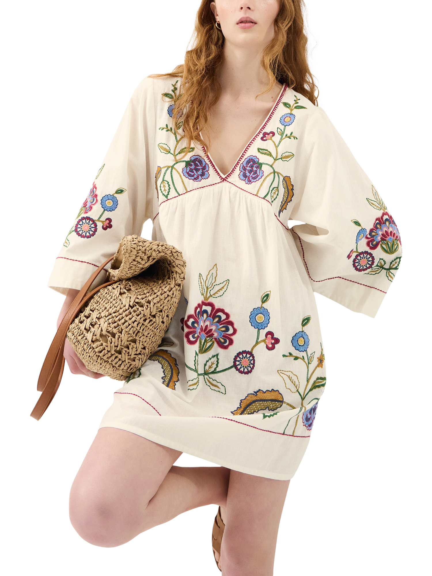 Where art meets beachwear. Embroidered with large blooms and coloured trim, this flowy kaftan is a must-have for any sunny getaway. Paired with sunnies and a straw bag, it's a 'fit you'll be wearing on repeat.