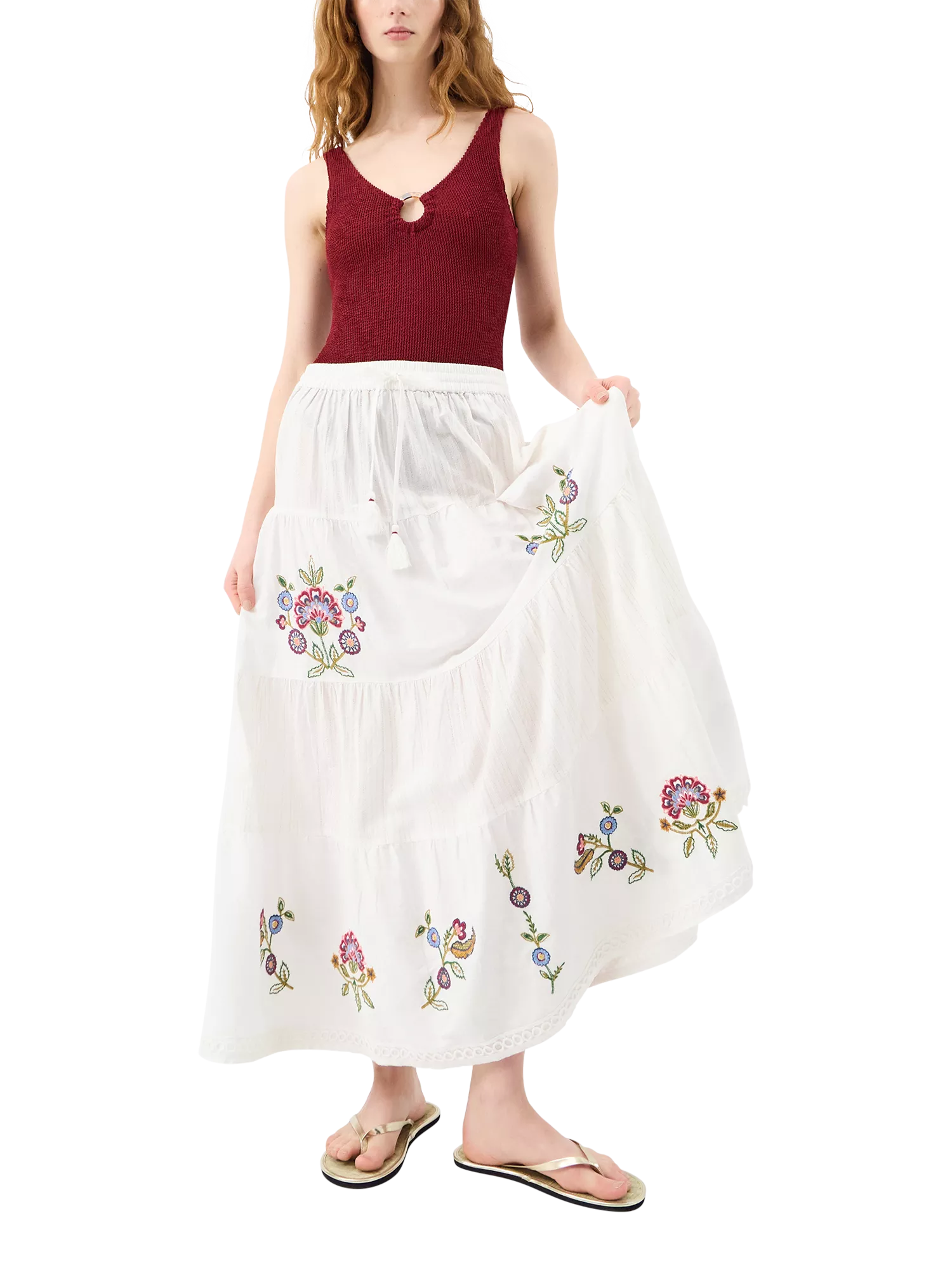 Featuring a tassel waist tie and tiers of lightweight material, this maxi skirt is made with a high cotton content plus a touch of linen for a breezy feel.