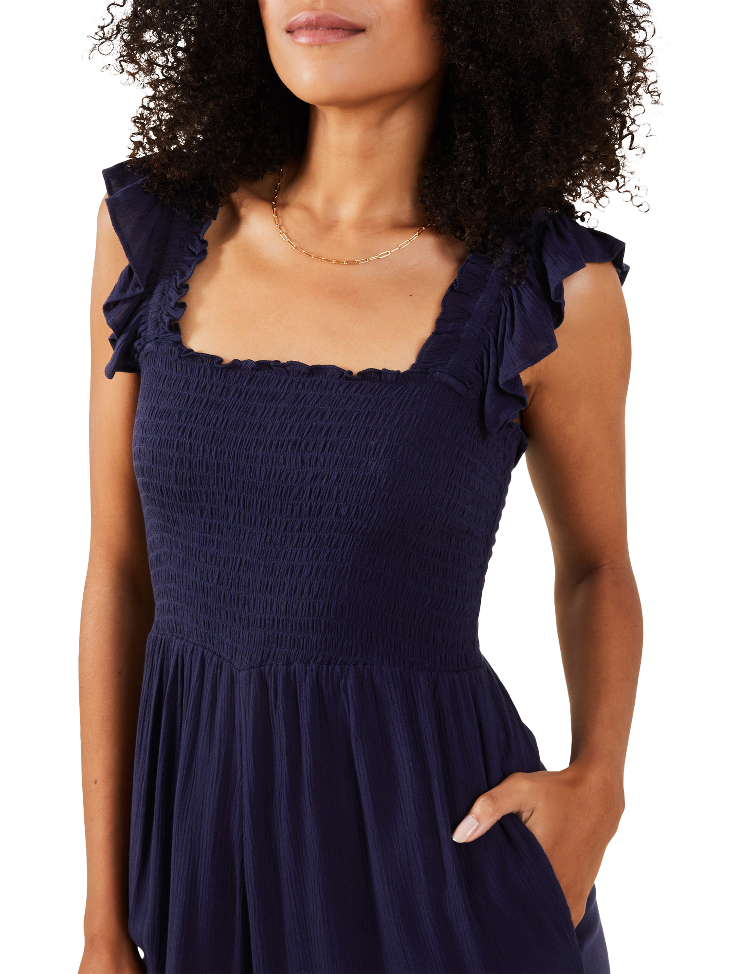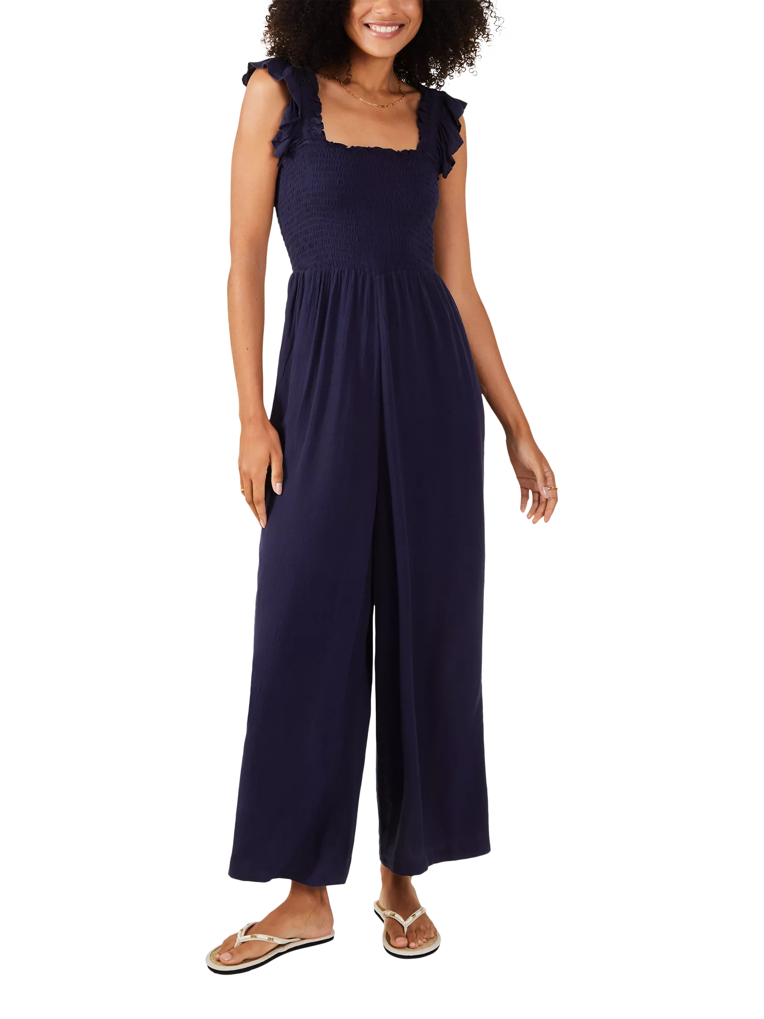 AccessorizeFrill Shoulder Jumpsuit, Navy
