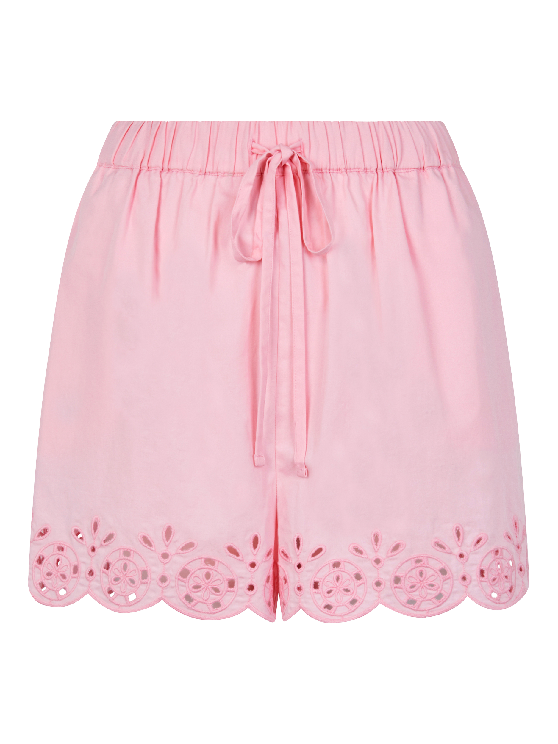 Designed in cotton that's super-soft and breathable, these shorts are an essential for your next beachy holiday. Sitting high on the waist, the cuffs are embroidered with cutwork motifs and a scalloped finish.