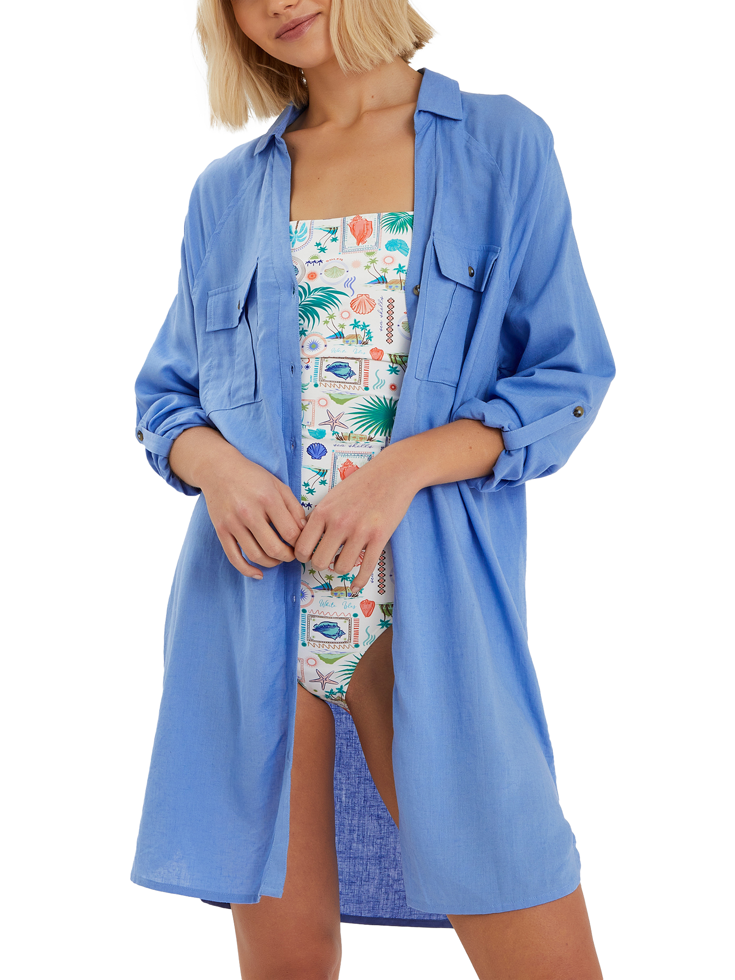 Extra coverage, but just as chic? We've got you. Featuring a clean design, complete with pockets, buttons and a collar to cover your bikini perfectly, this beach shirt is a suitcase essential.