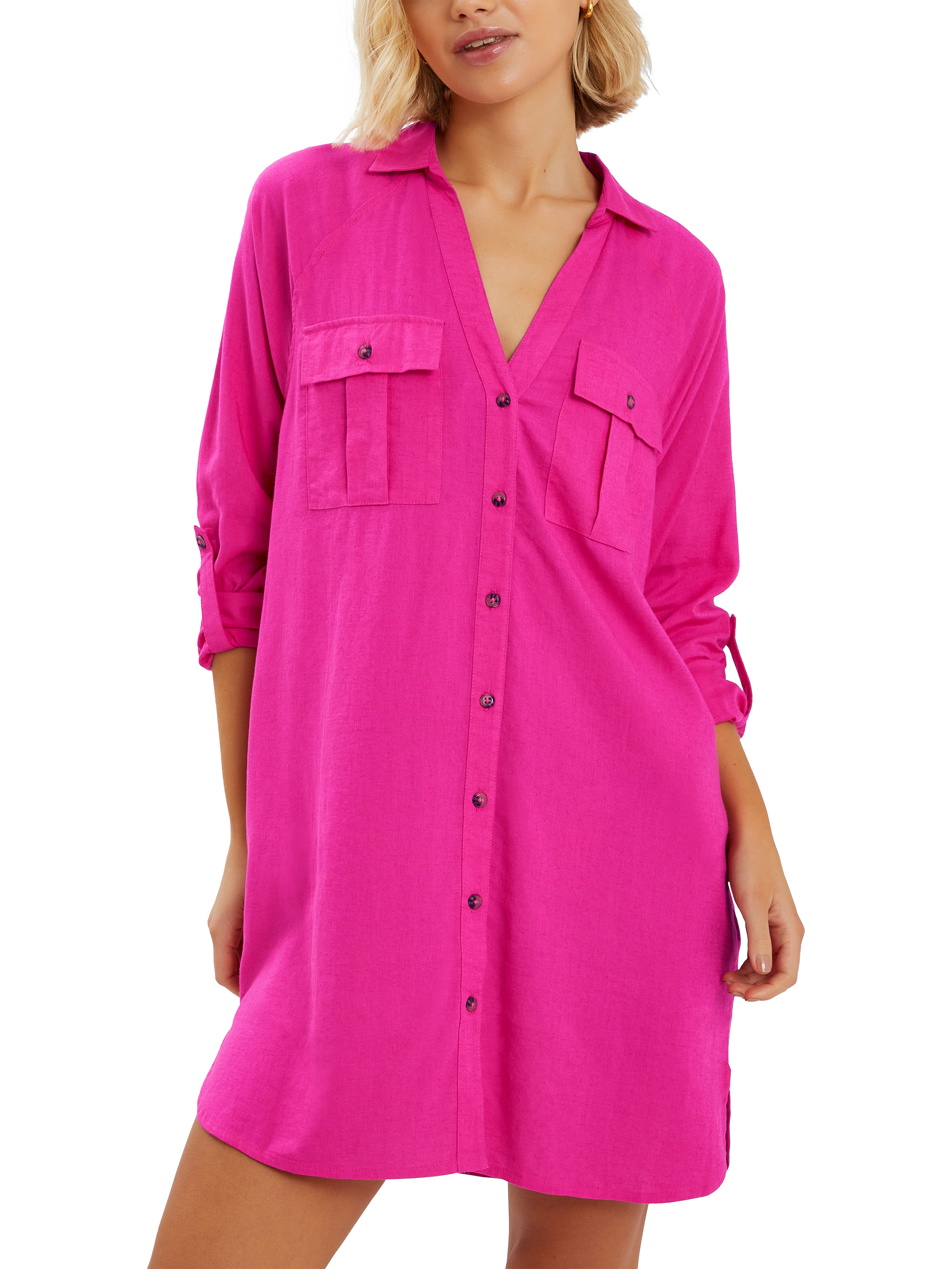Extra coverage, but just as chic? We've got you. Featuring a clean design, complete with pockets, buttons and a collar to cover your bikini perfectly, this beach shirt is a suitcase essential.