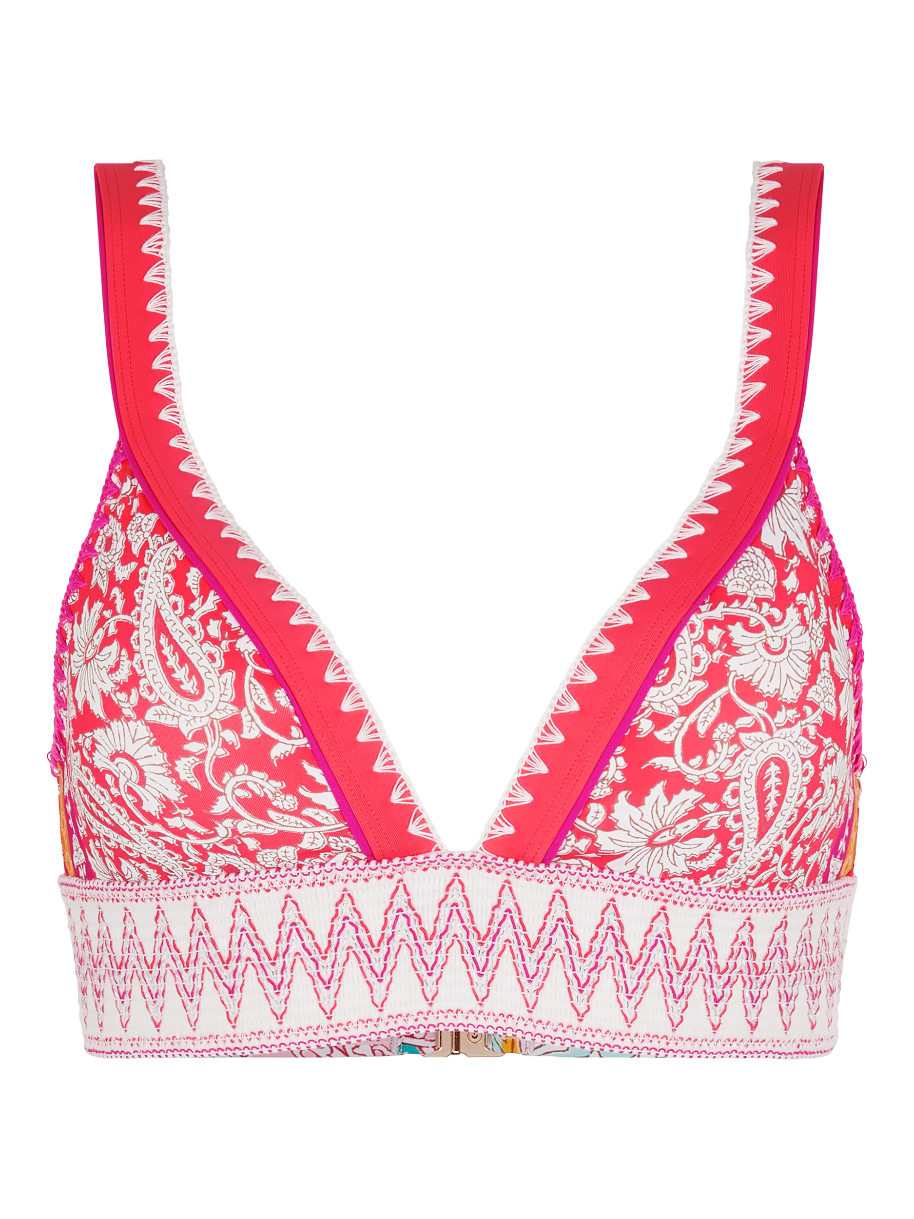 Infuse summer colours into your swimwear edit with this funky paisley bikini! This triangle bikini top has a textured finish with a woven elasticated underband and fully adjustable straps, allowing you to find the perfect fit. Matching bikini bottoms are available.