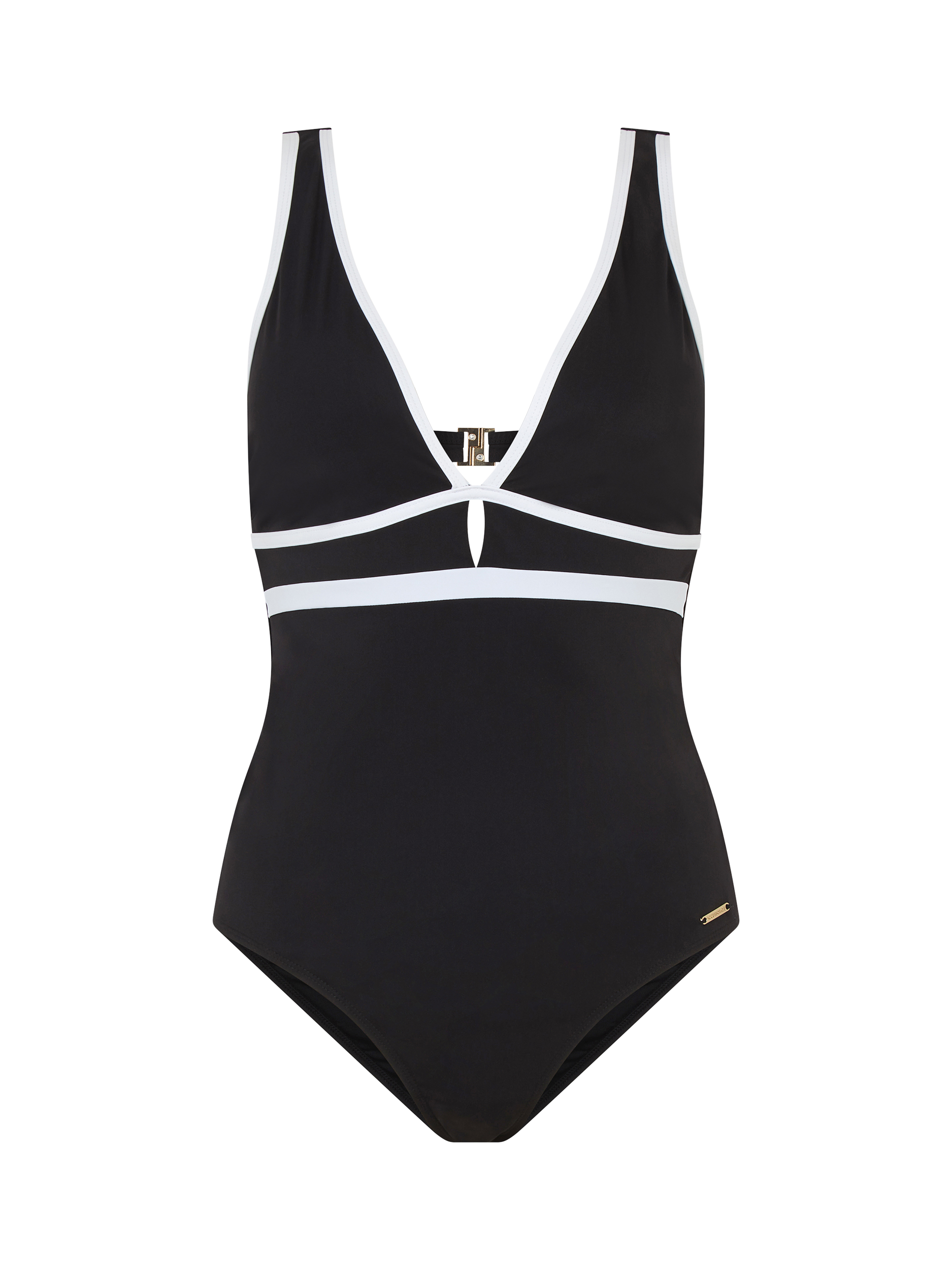 Designed in firm fabric to shape and sculpt your tummy area, this swimsuit is finished with contrast binding at the straps, plunge neckline and waist. It uses Xtra Life Lycra: a yarn that not only has greater durability but is also chlorine-, SPF-, and radiation-resistant, with a UPF50+ rating for sun protection.