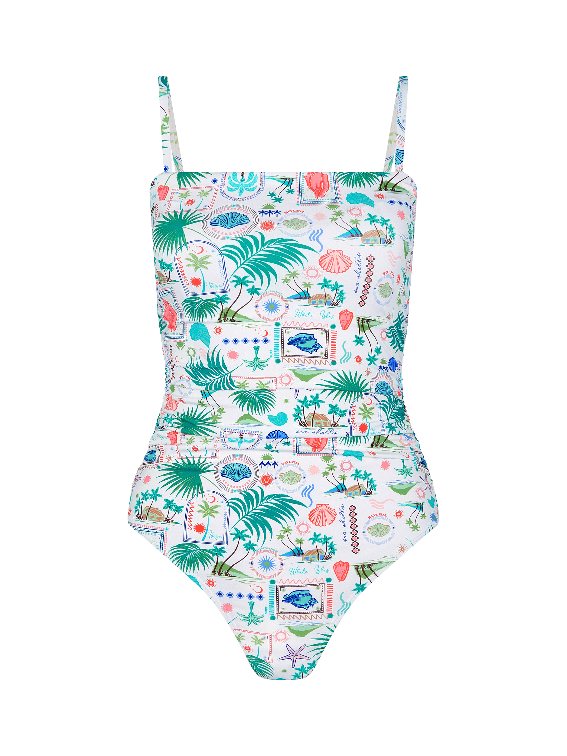 Wherever your destination, this swimsuit is a must-have for summertime. It's patterned with a colourful mix of palm trees, sea shells and postcard-worthy scenes and finished with pleats and folds at the waist for a comfy fit when you're soaking up the sun. All. Day. Long.