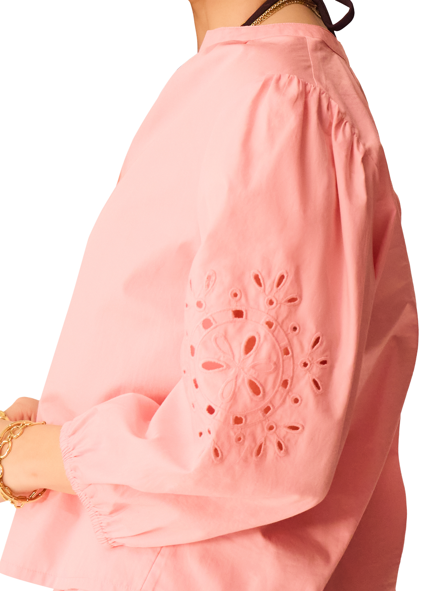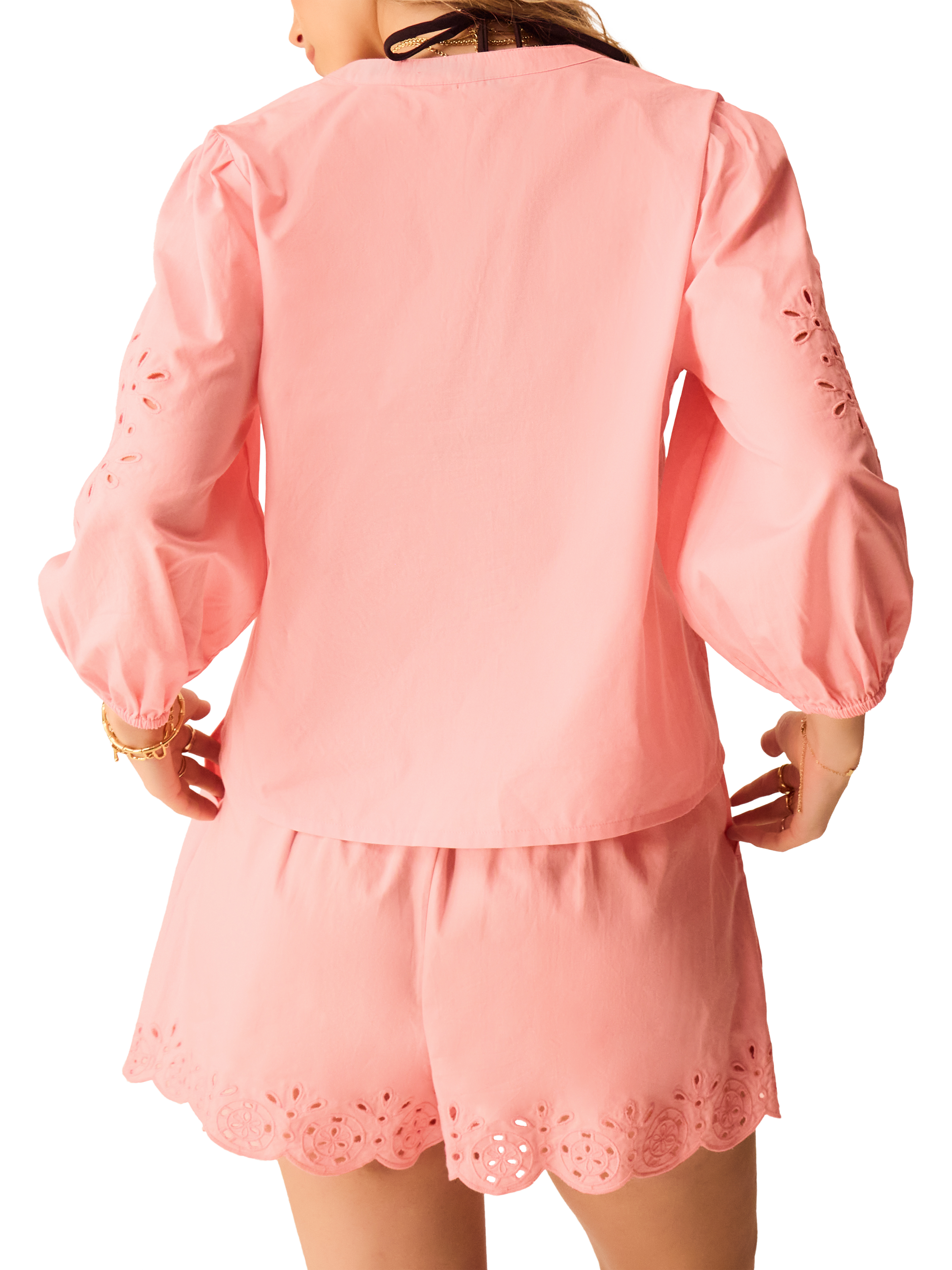 Crafted from breezy cotton, this blouse has been designed with a deep V-neck and floral cut-outs.