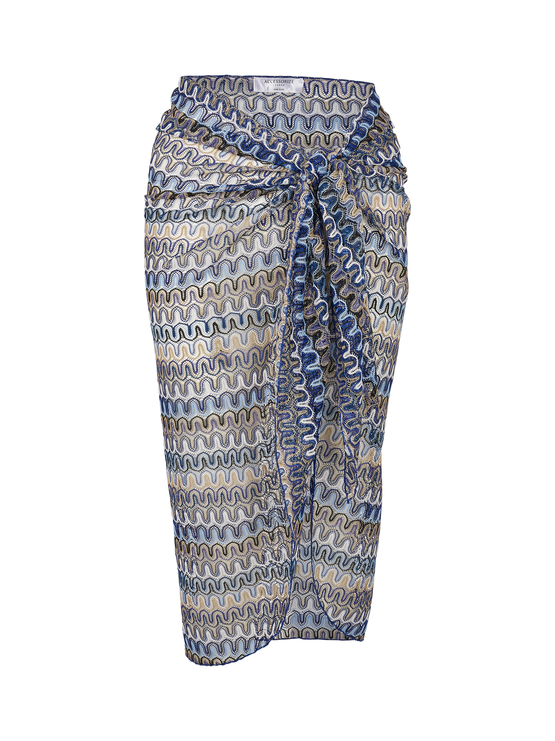 A suitcase staple for all your trips from pool lounger to pool bar. This sarong is stitched in a zig-zag style pattern in a mix of blues and gold.