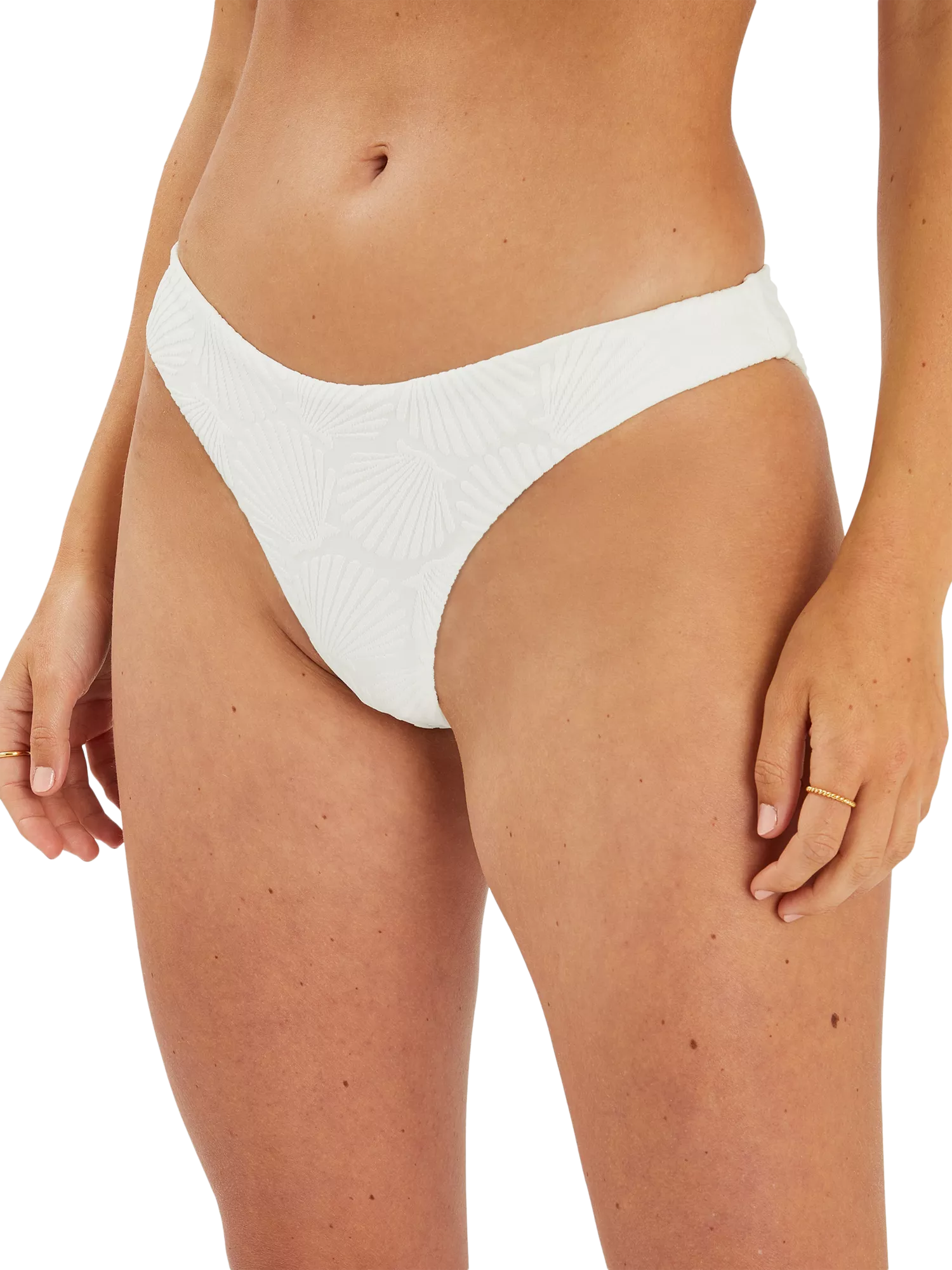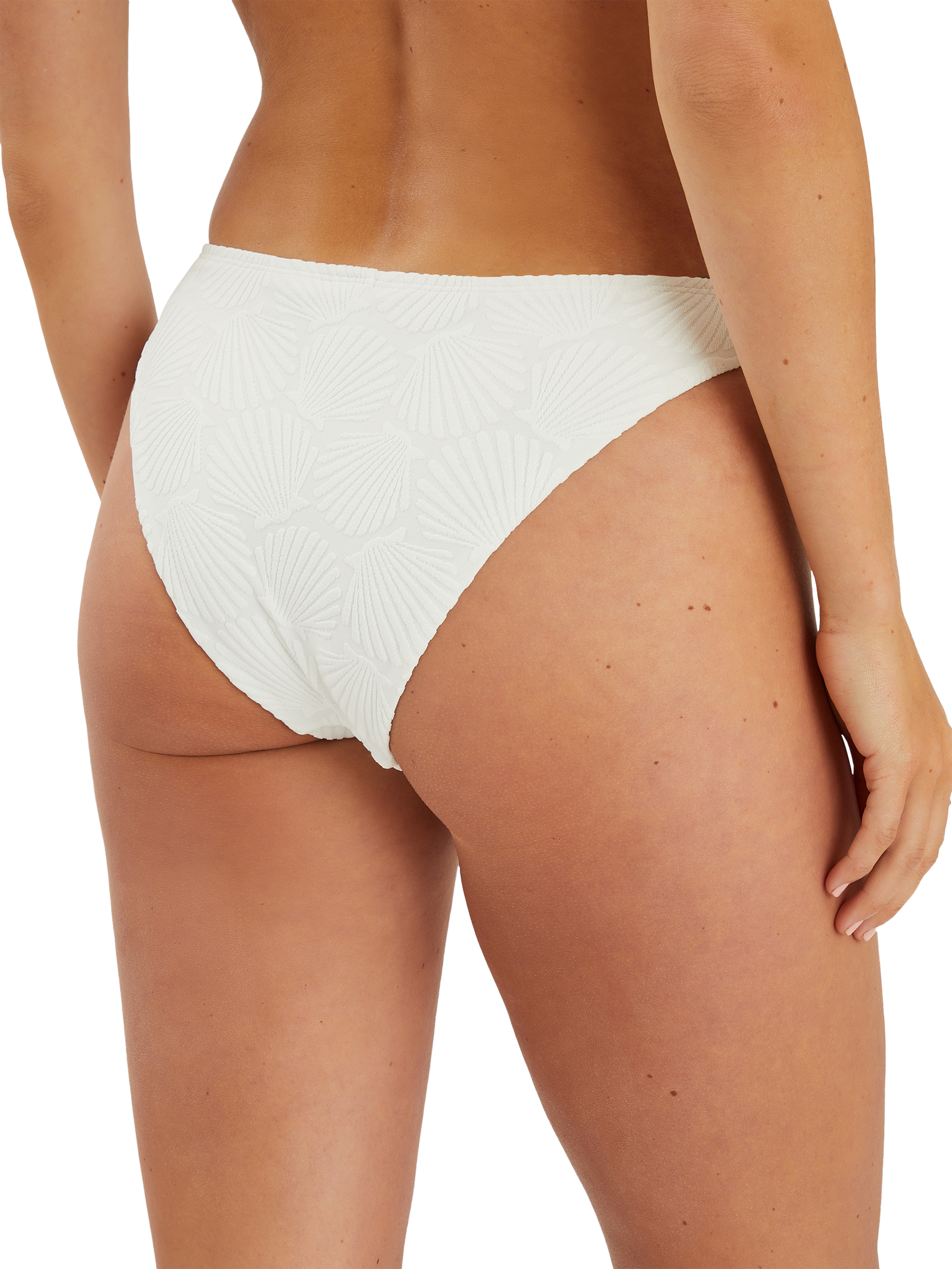 Classic shape bikini bottoms with textured seashell motifs.