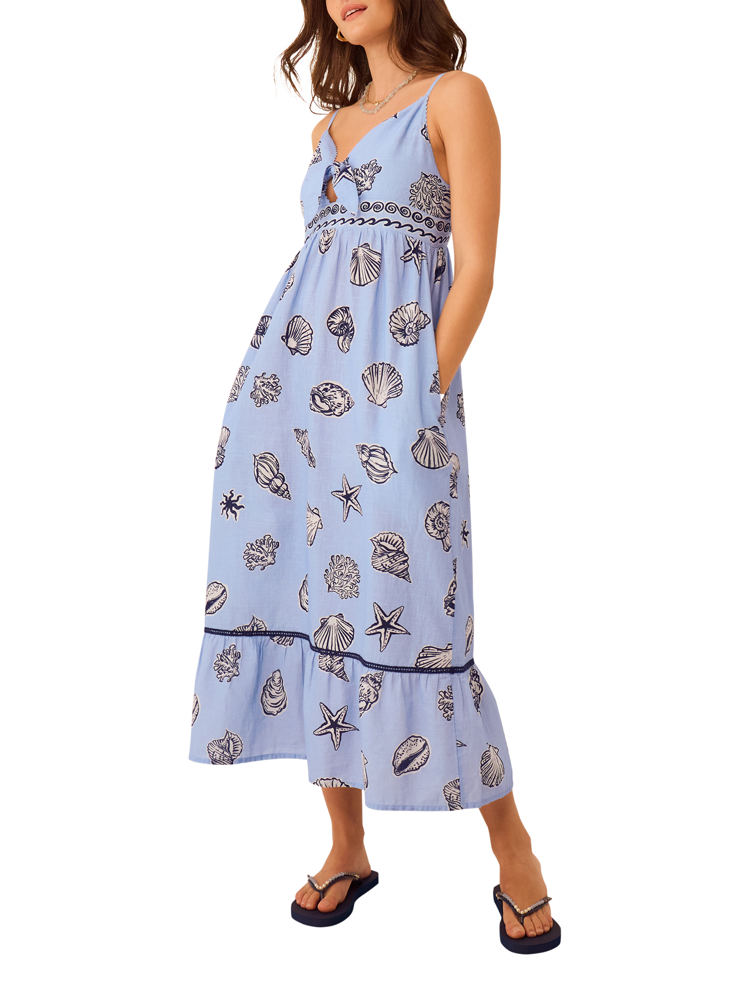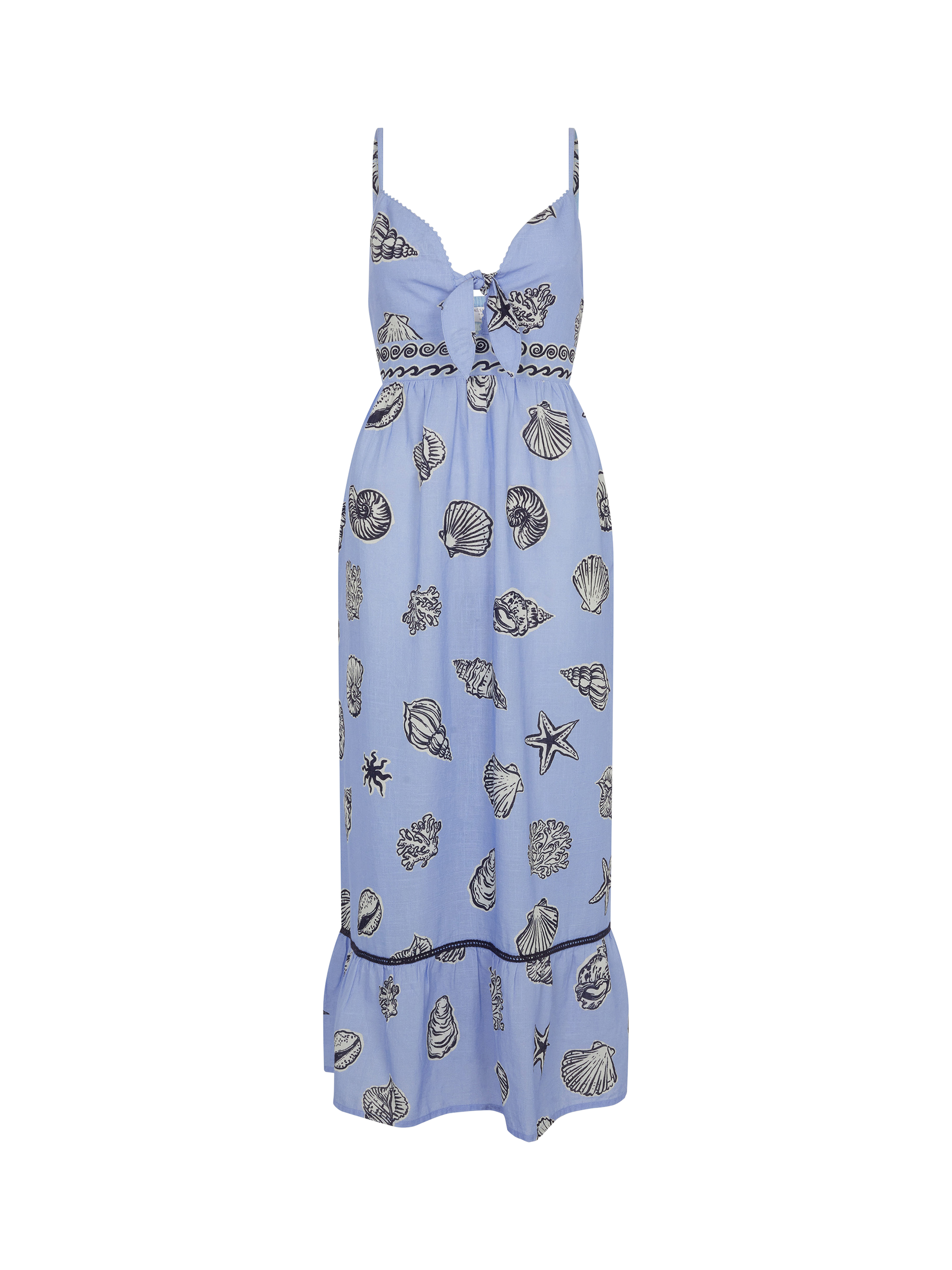 Made to be worn on afternoon beach strolls, this dress is printed with everyone's favourite seaside treasure. Crafted from breezy cotton, it features a playful front tie and V-neck.