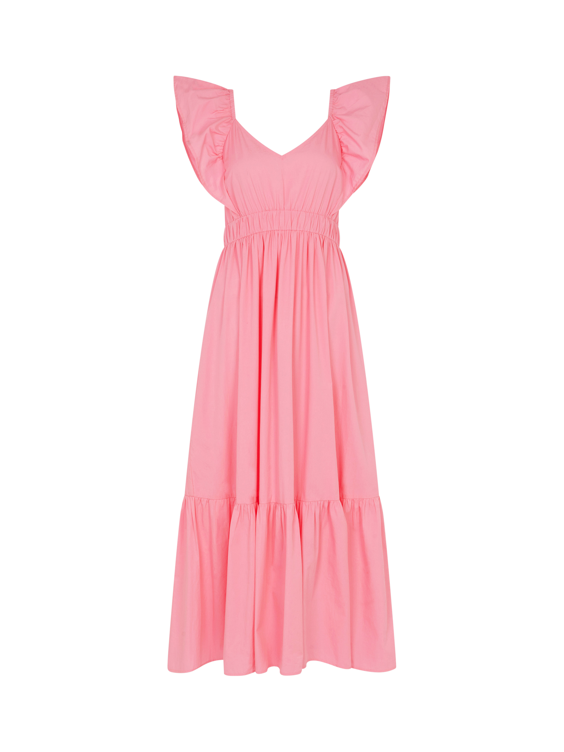 Crafted from lightweight cotton, this dress is designed with ruffled straps, a stretchy waistband and a floaty skirt that falls just above the ankles.