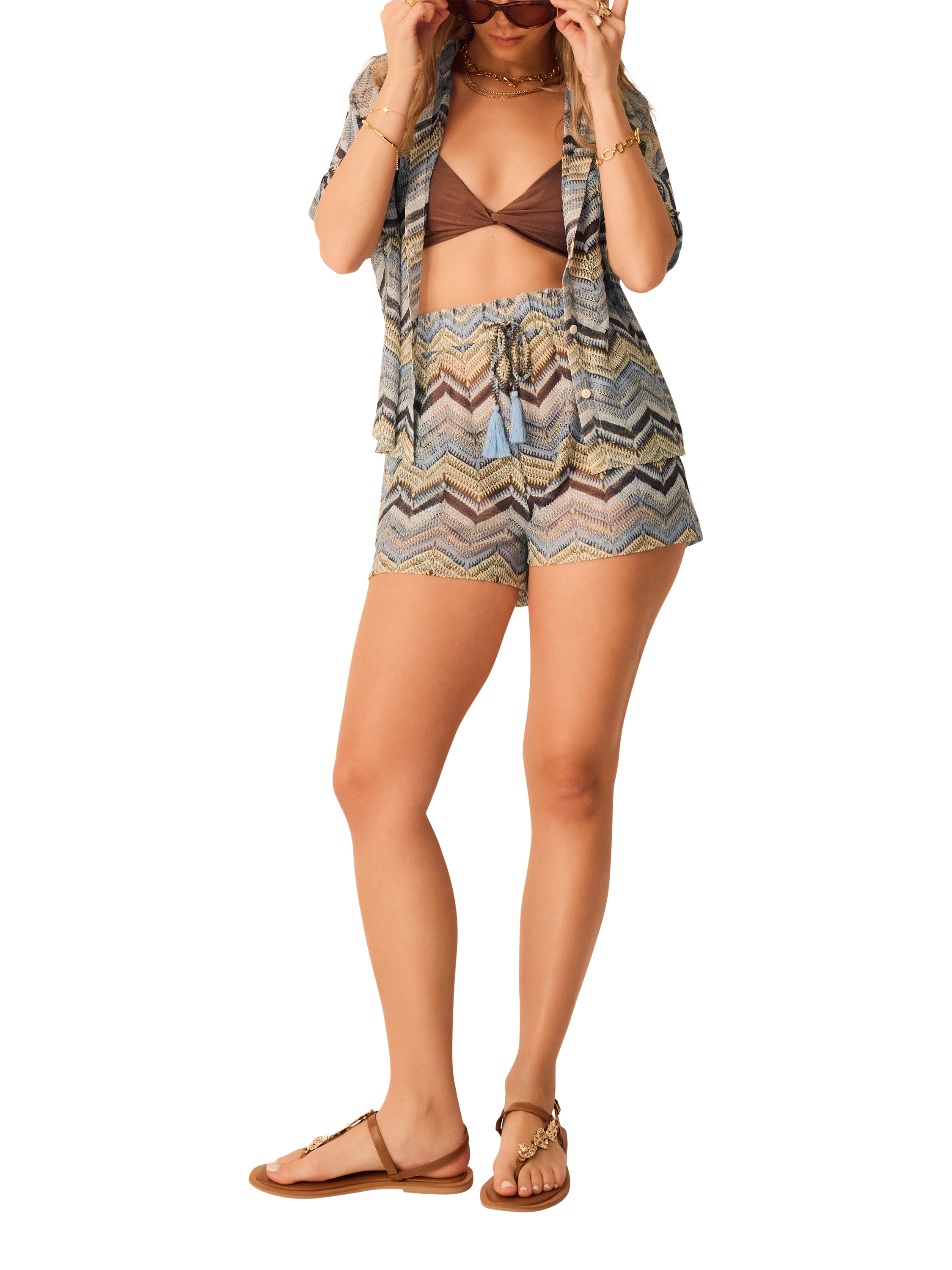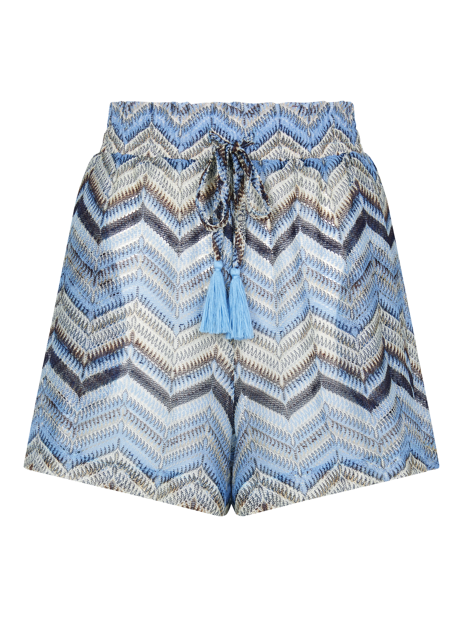 Patterned with zigzags, these crochet shorts are a must-have for any sunny holiday destination. Complete with a stretchy waistband and matching tassel tie.