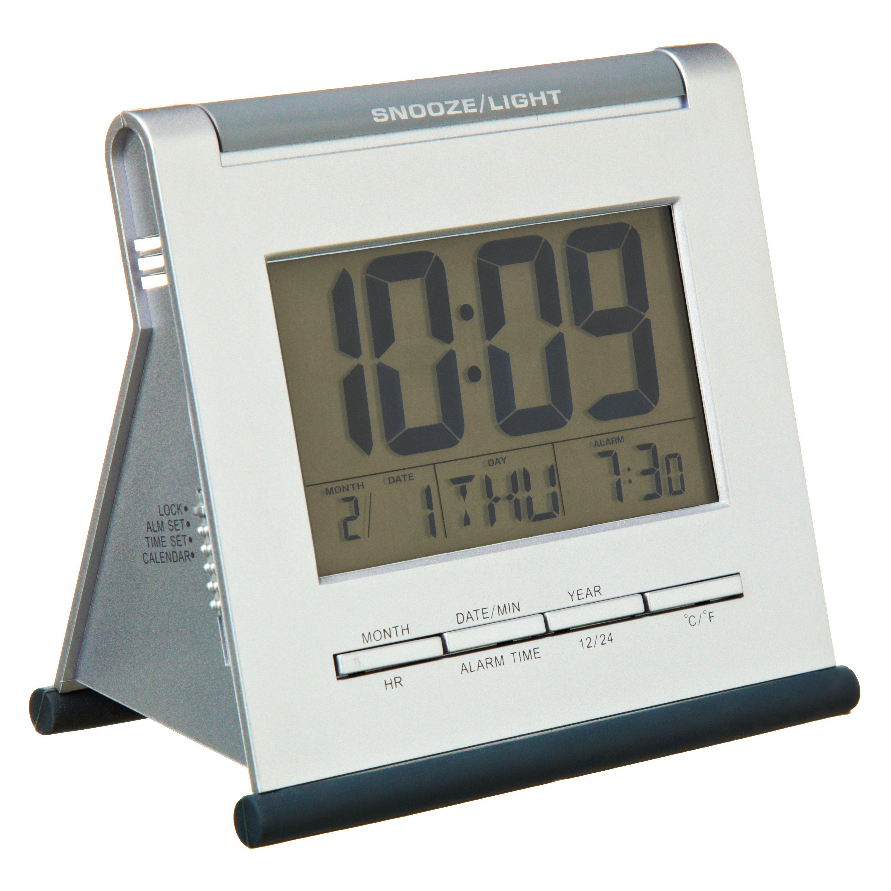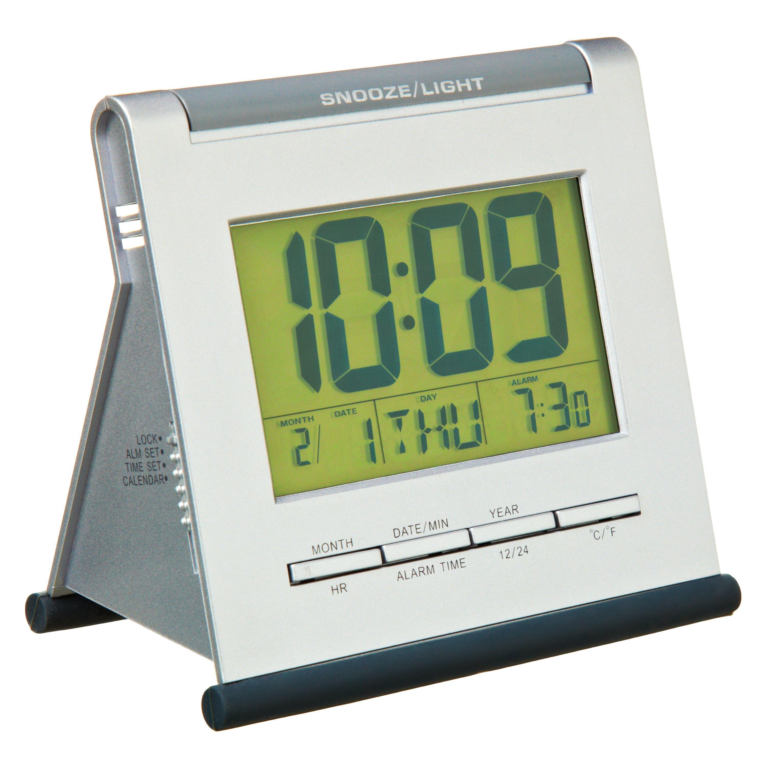 The Apex alarm clock features a digital display that shows time, calendar, alarm time and indoor temperature. It is easily viewed at night as it has Smartlite® technology, where a bright, green backlight illuminates the display as the room gets darker and turns it off again during the daytime to prolong the battery life.