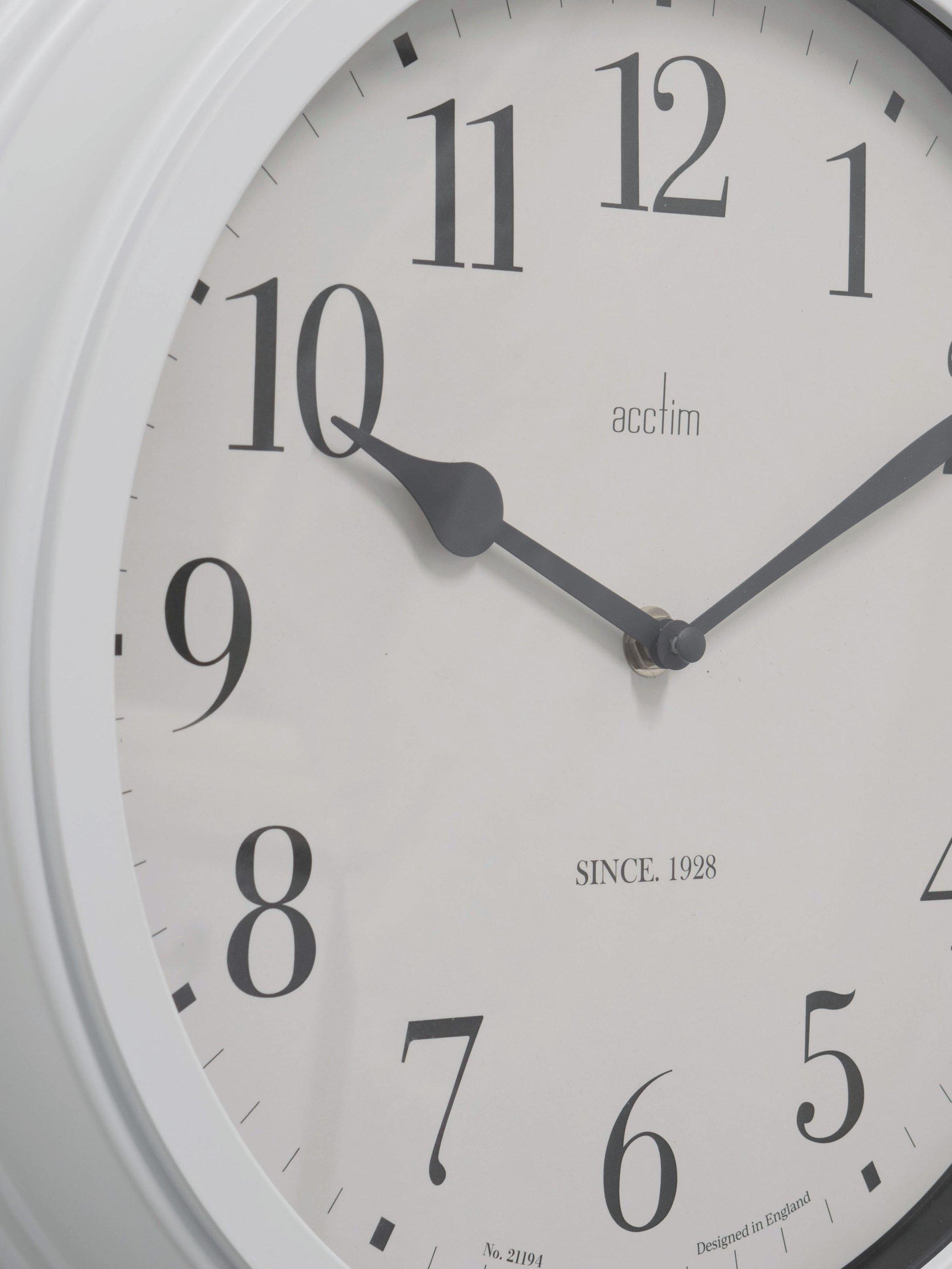 An elegant wall clock and a classic timepiece. With a deep case, large, easy-to-read Arabic numerals and a spade hour hand, it makes a statement in any room of the house.