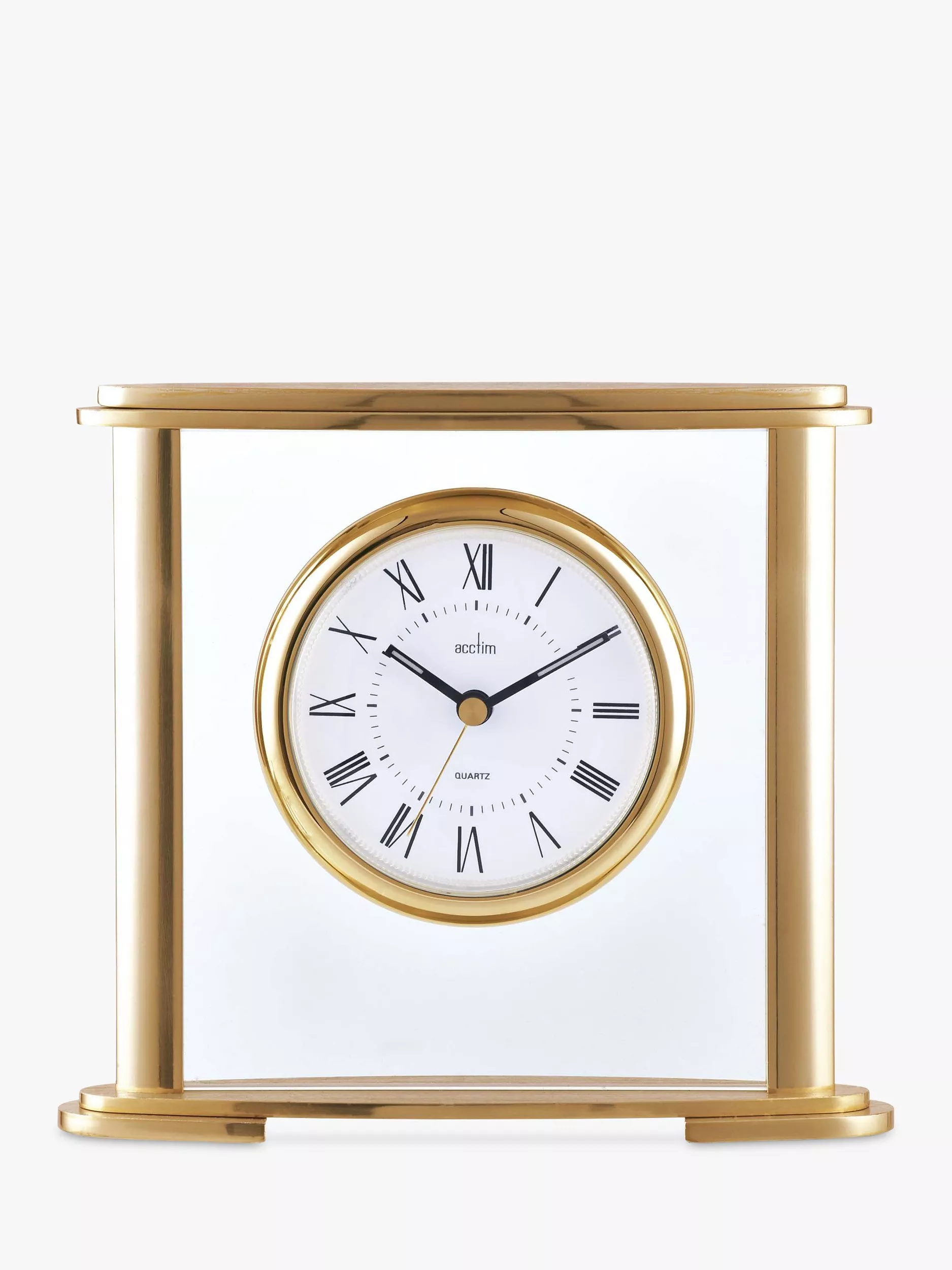 The Colgrove mantel clock from Acctim has a Roman numeral dial with an inner minute track and polished bezel, cleverly suspended within the glass frame, giving it an appearance of weightlessness. The hands have luminous tips for those dark nights and an energy-efficient quartz movement completes this traditional design.