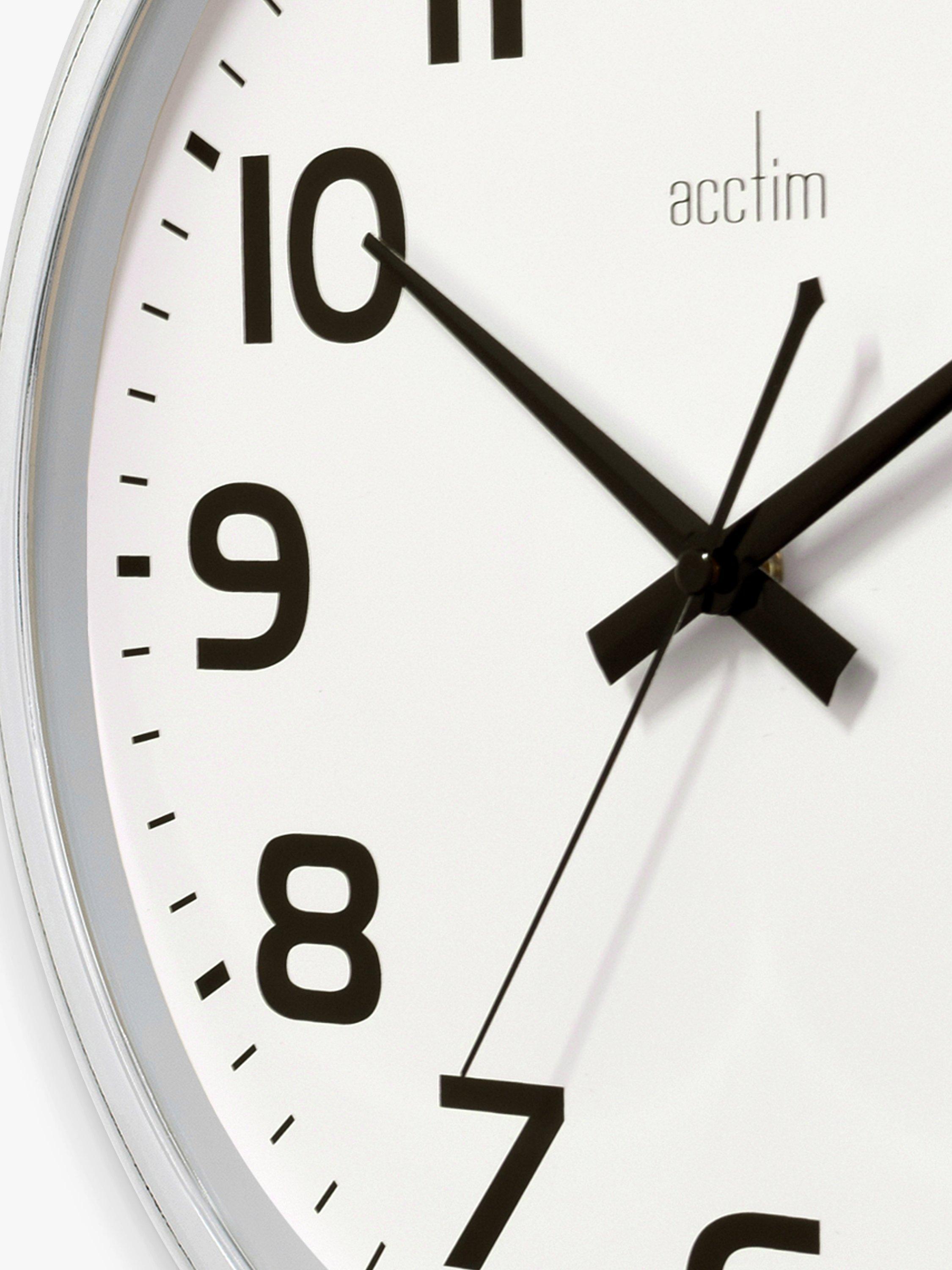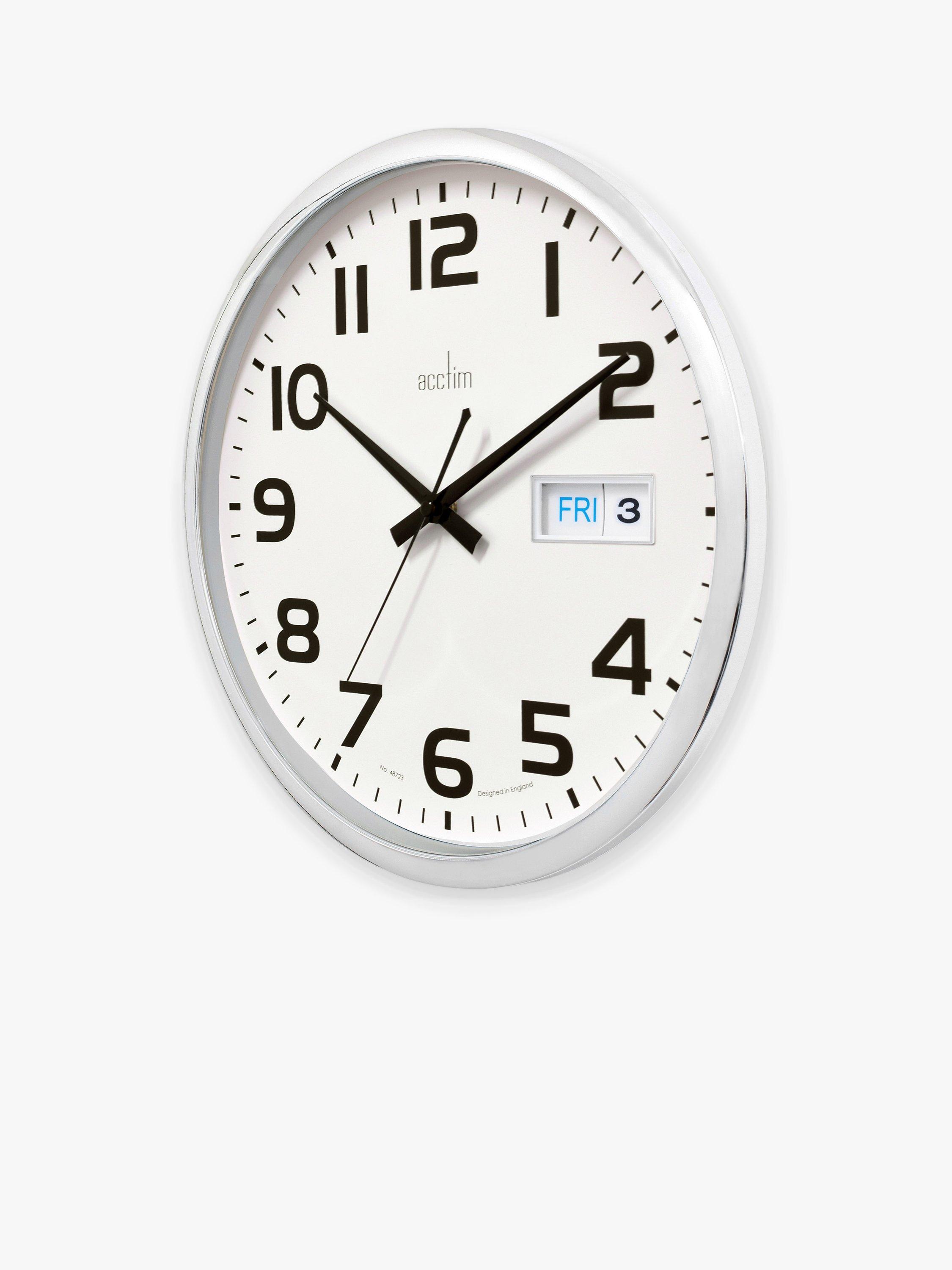 The perfect date reminder, this Acctim clock features a day and date window, chromed case and domed glass lens. Quartz movement ensures reliable accuracy.