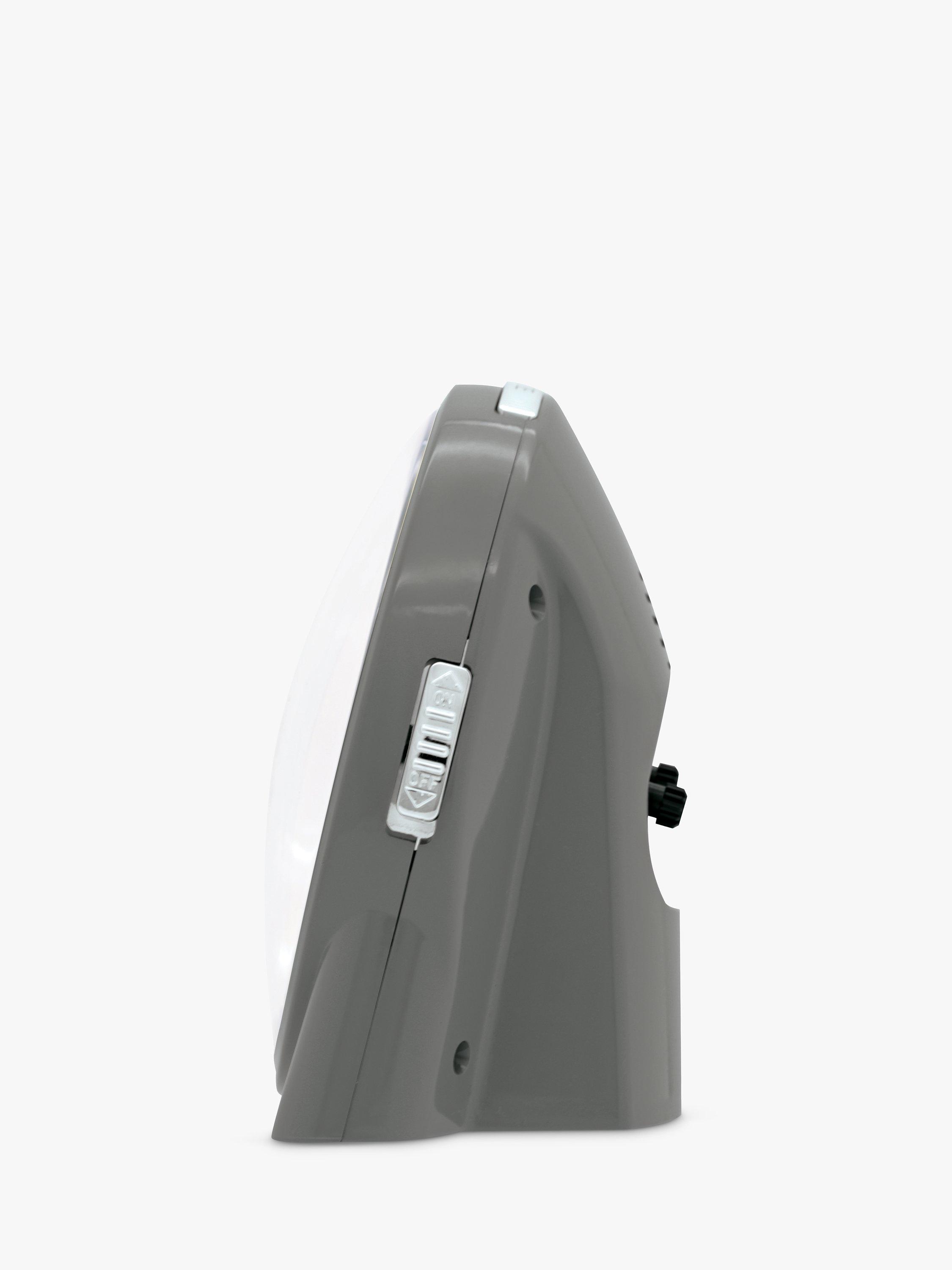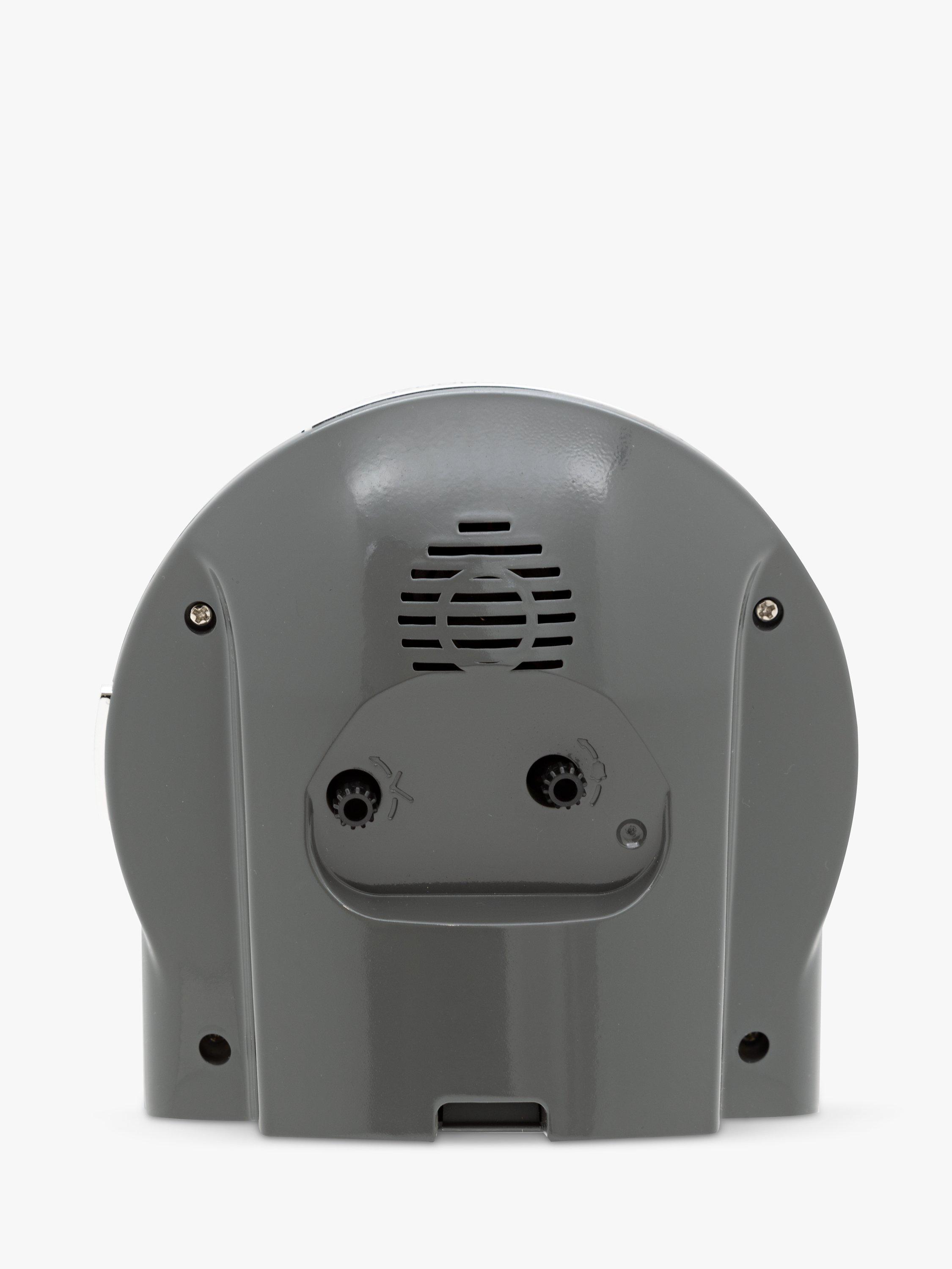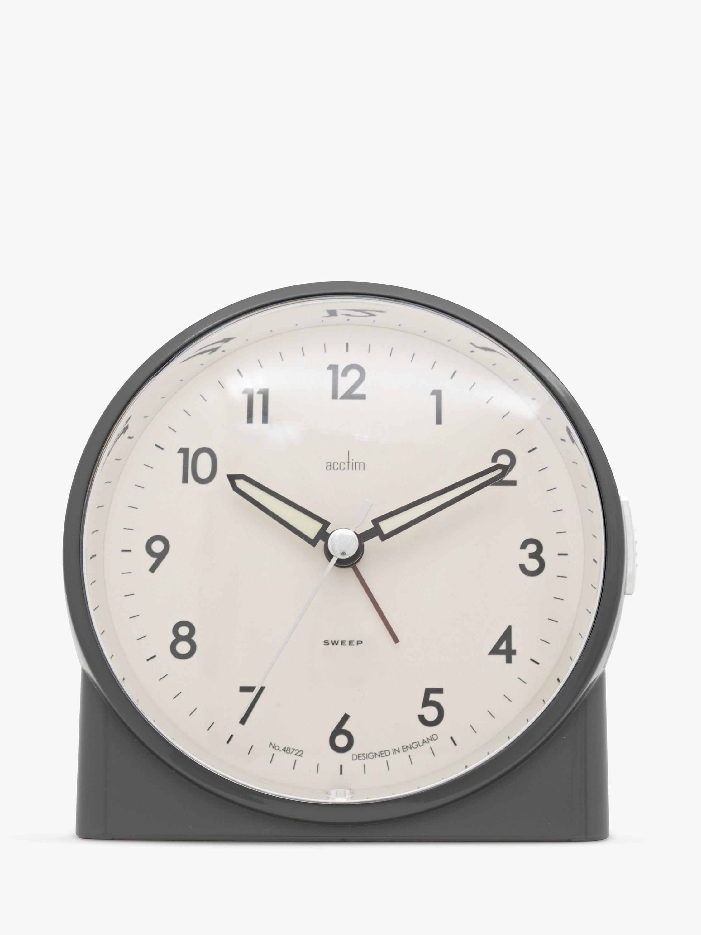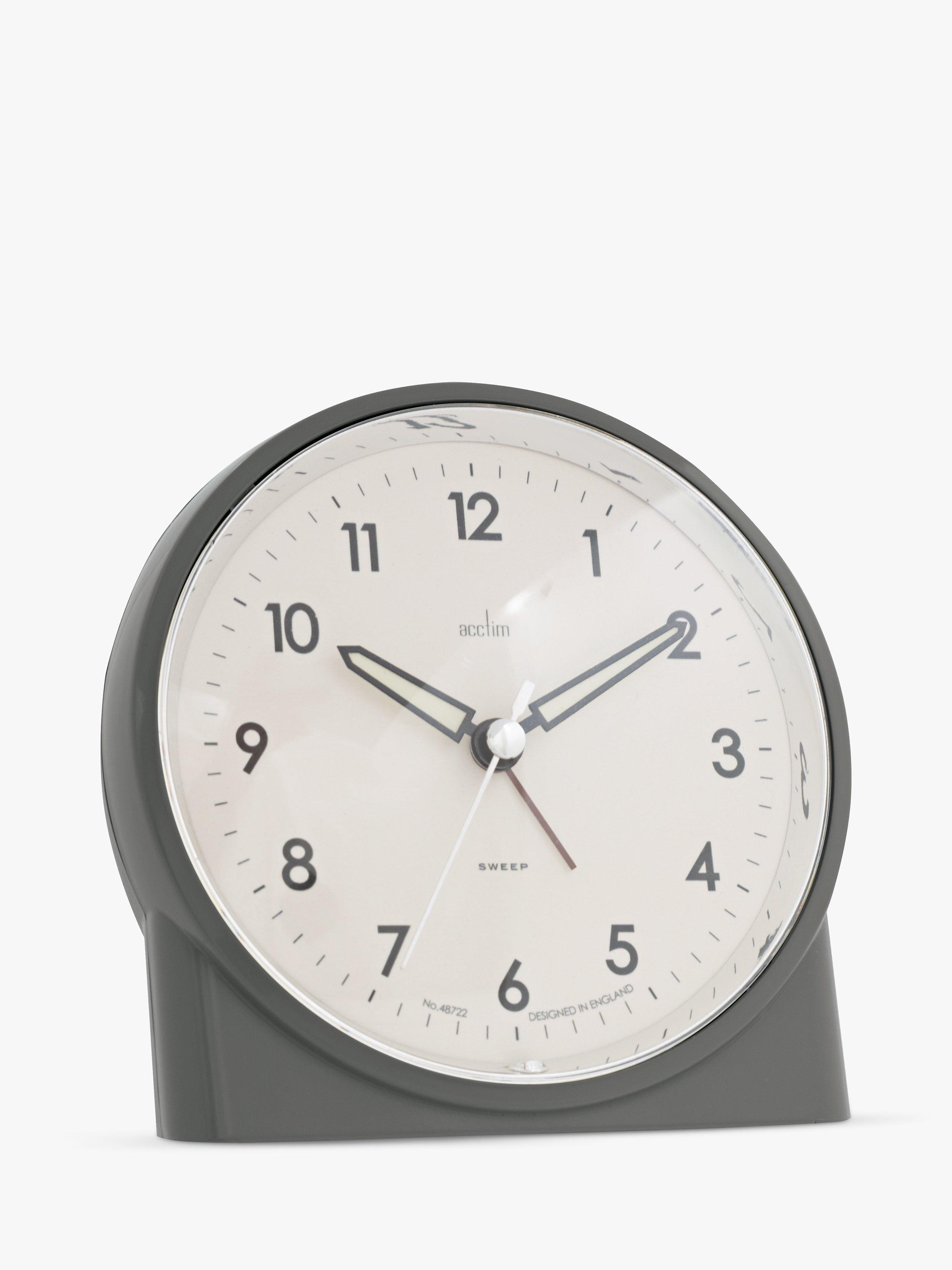 With a refined and modern design, this analogue alarm clock features a clear Arabic dial, luminous hands, and a polished chrome second hand powered by a silent sweep movement for an undisturbed night's rest. A curved glass dome lens beautifully completes the look. Minimal, refined, and effortlessly stylish.