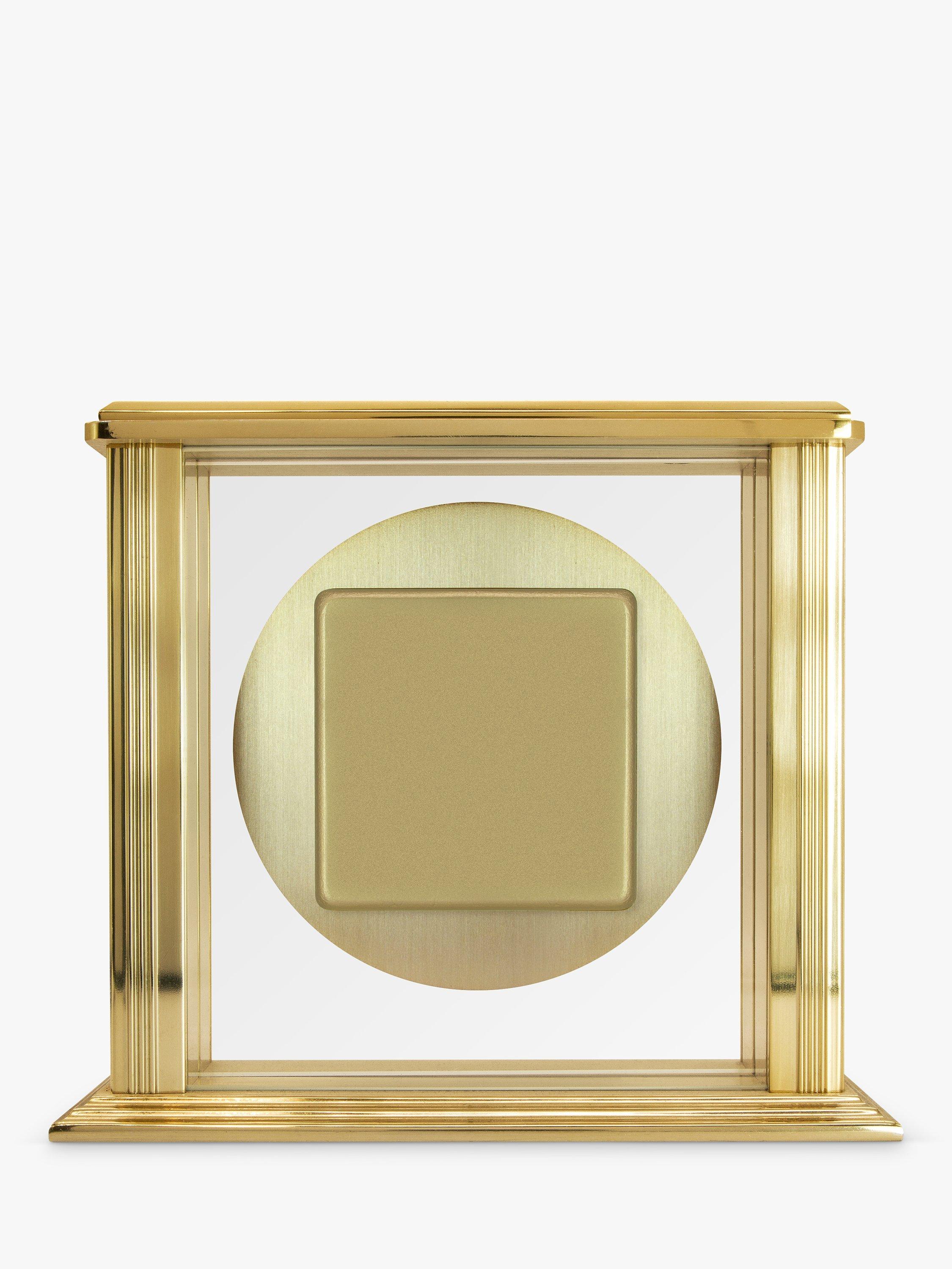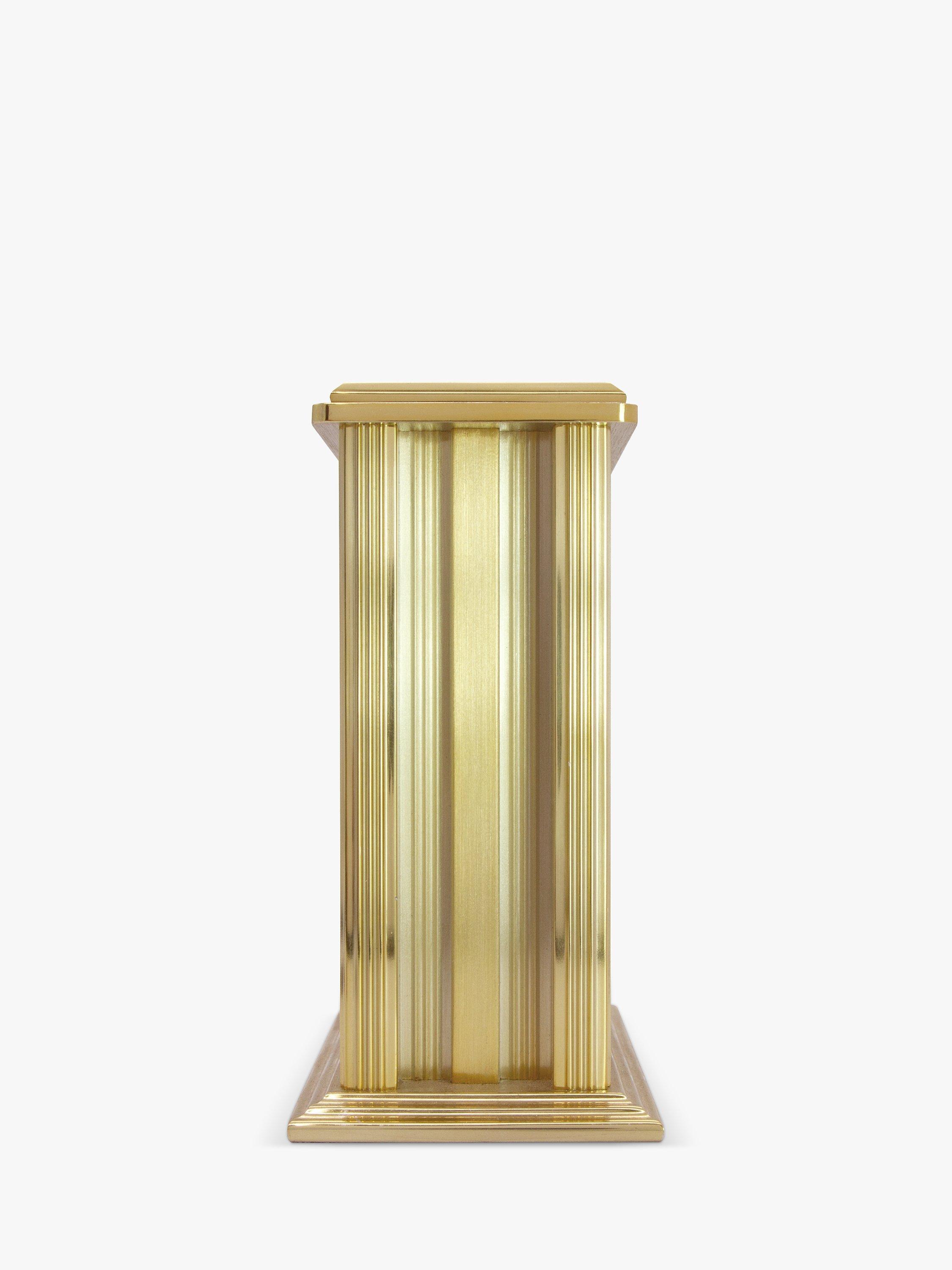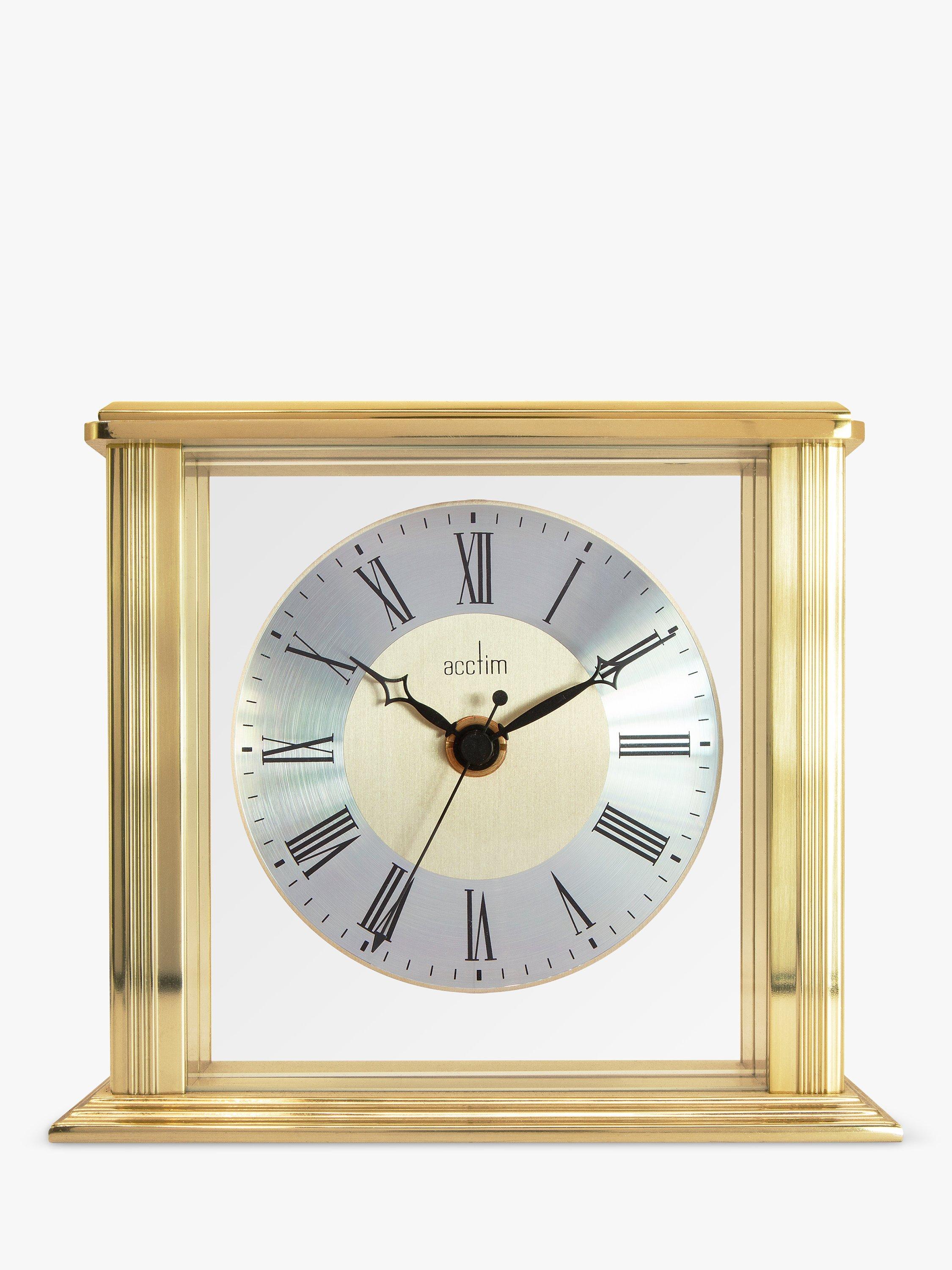Flanked by two neo-classical columns in brushed metal, the Hamilton clock's Roman numeral dial floats in a clear glass insert surrounded by a brass-effect chapter ring. The black, decorative hands finish off this classic design and Acctim's energy-efficient movement ensures maximum battery life.