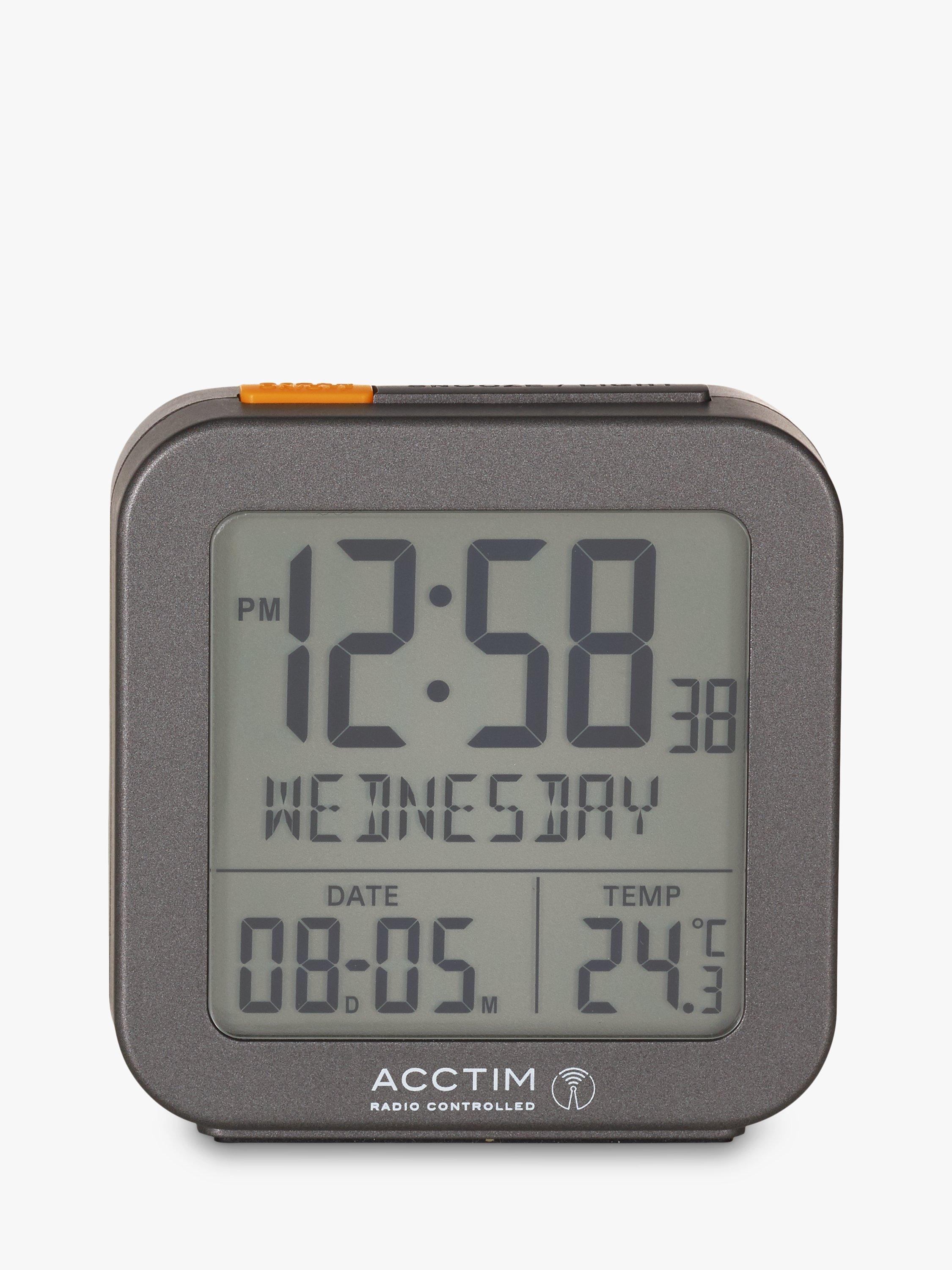 This compact digital alarm clock is loaded with extra practical features, including radio-controlled timekeeping, a snooze function for a little extra sleep, a calendar and an indoor temperature display.