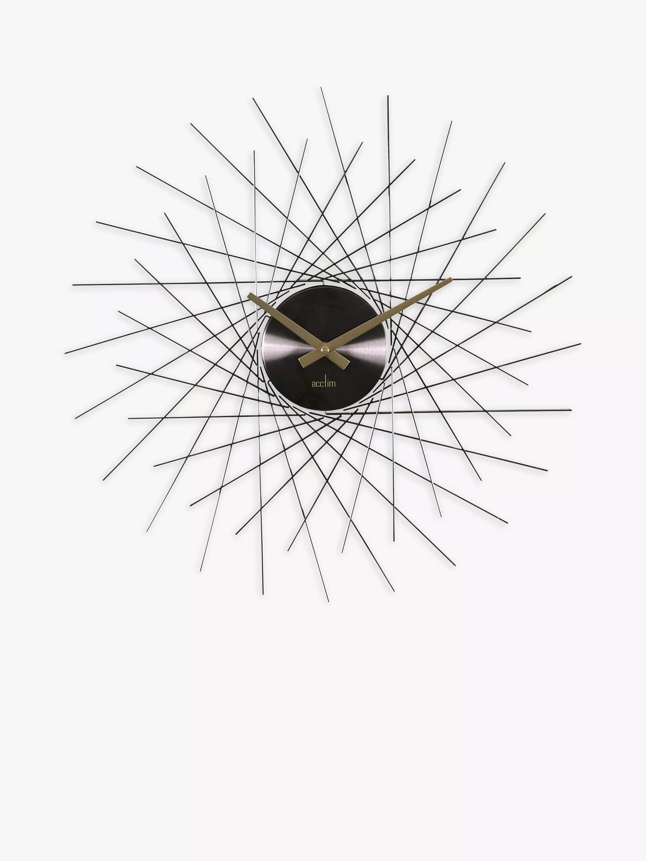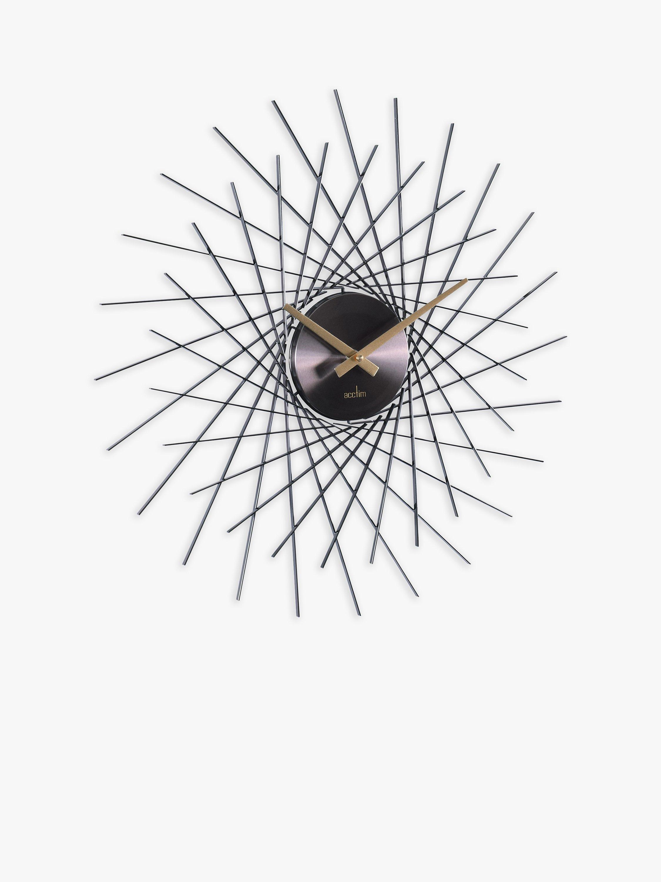 Lohne from Acctim is a dynamic sunburst-inspired wall clock with latticed spokes and a spun metal hub. The simple baton clock hands add a contrasting touch to the design.