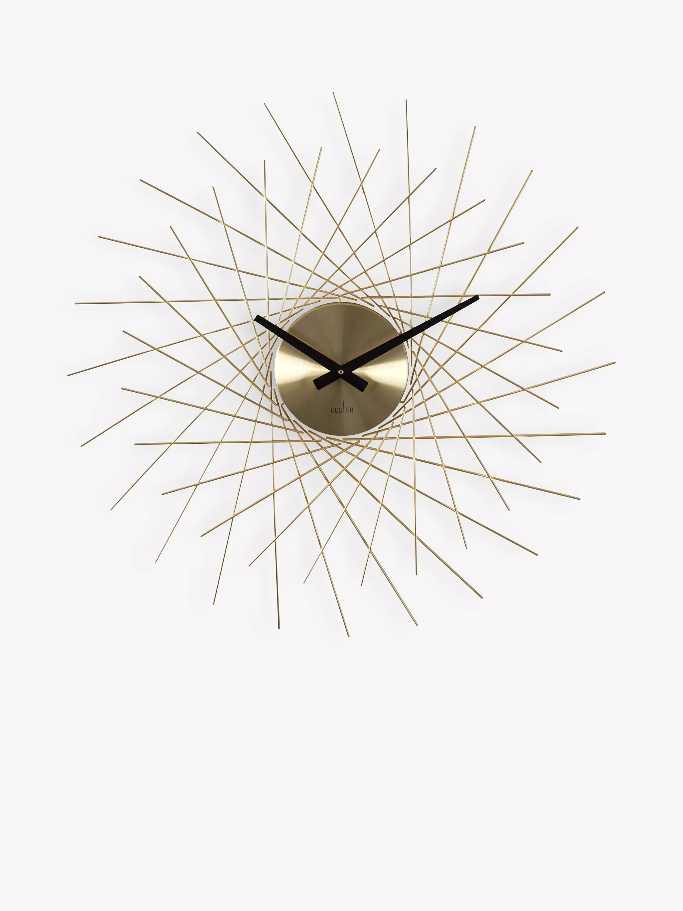 Lohne from Acctim is a dynamic sunburst-inspired wall clock with latticed spokes and a spun metal hub. The simple baton clock hands add a contrasting touch to the design.