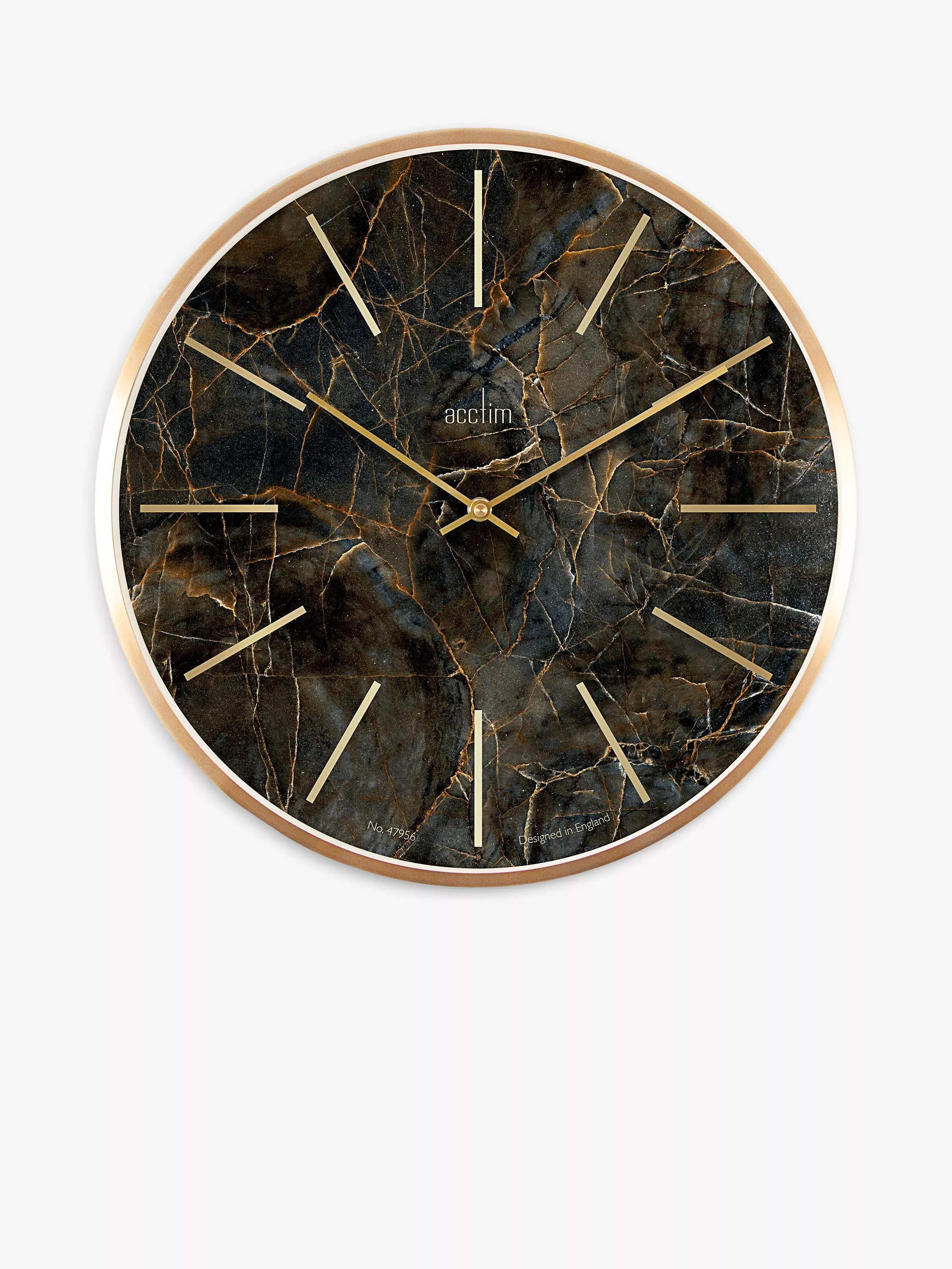 With echoes of Art Deco design, the Luxe wall clock from Acctim has a marble-effect dial and a glass lens, with metallic baton hands, hour markers and casing. This metal clock boasts quartz movement for precision time-keeping.