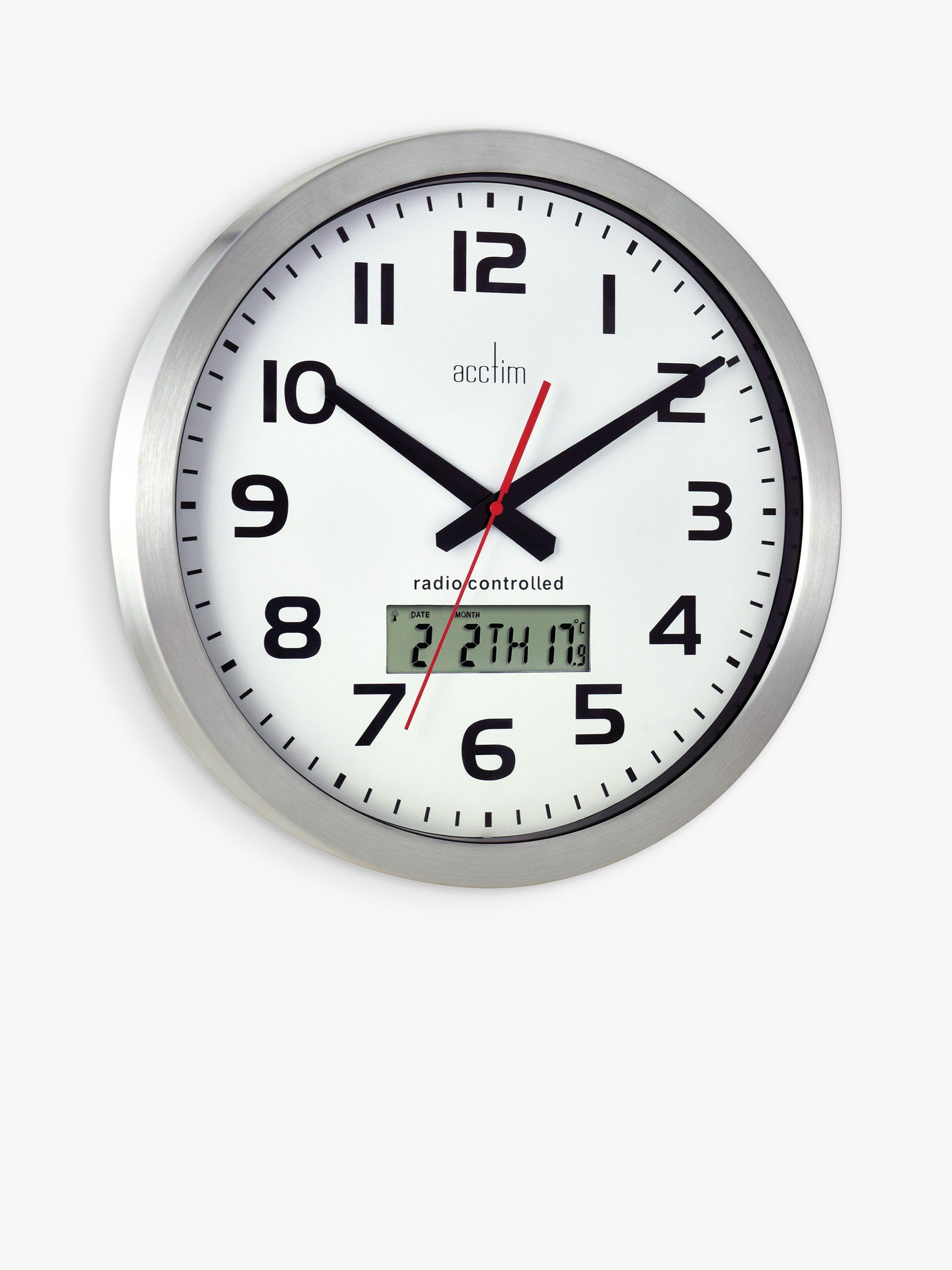 Time is kept by a radio-controlled mechanism, which improves accuracy and saves you setting it backwards or forwards as the seasons change. The clock is completed with a glass lens and energy-efficient movement.