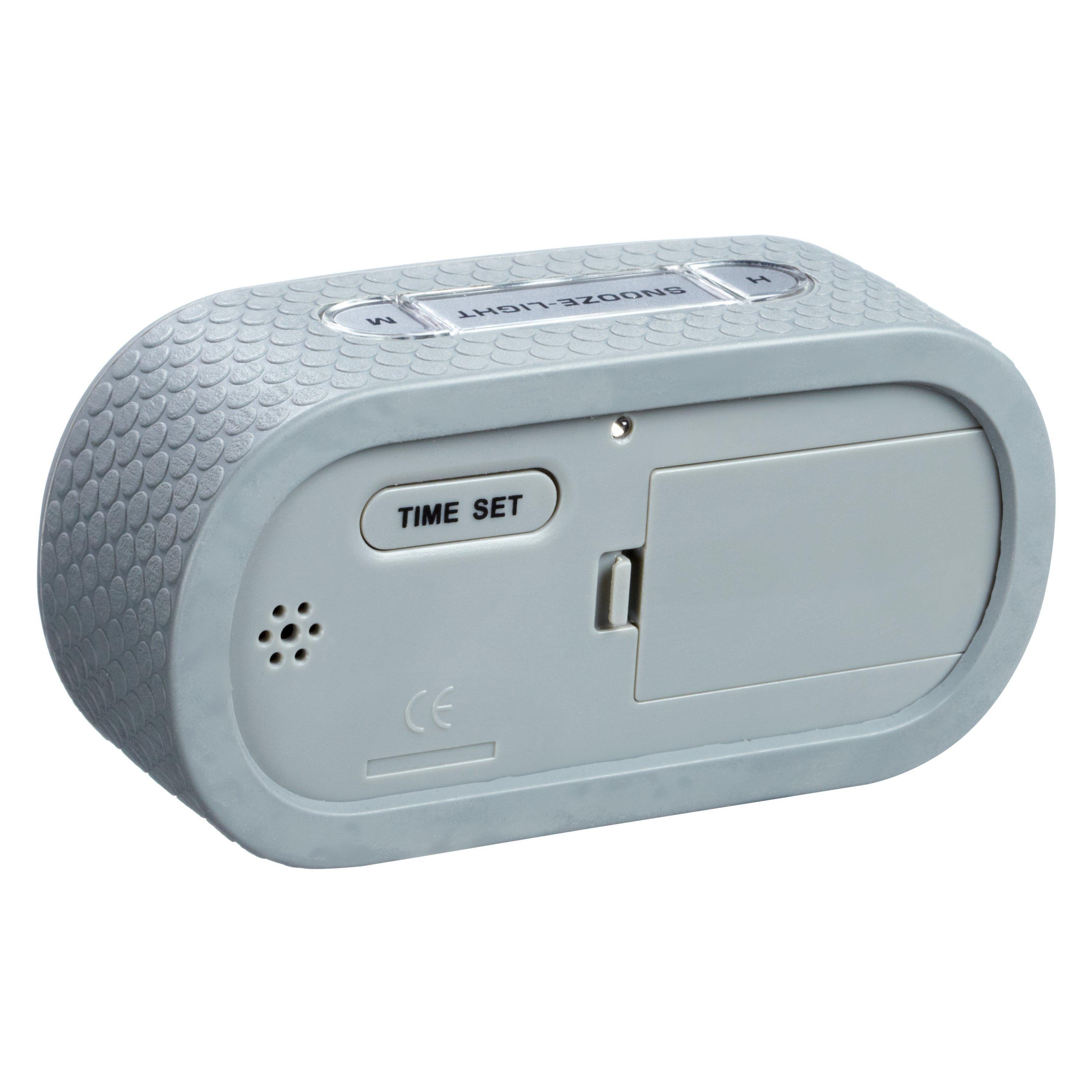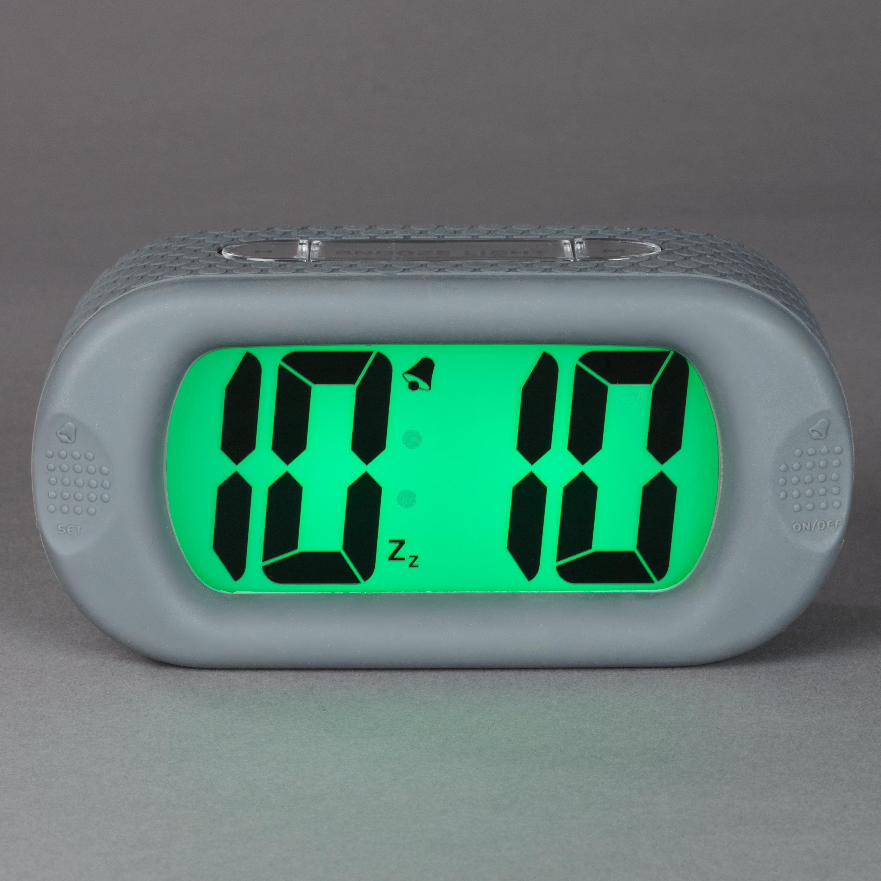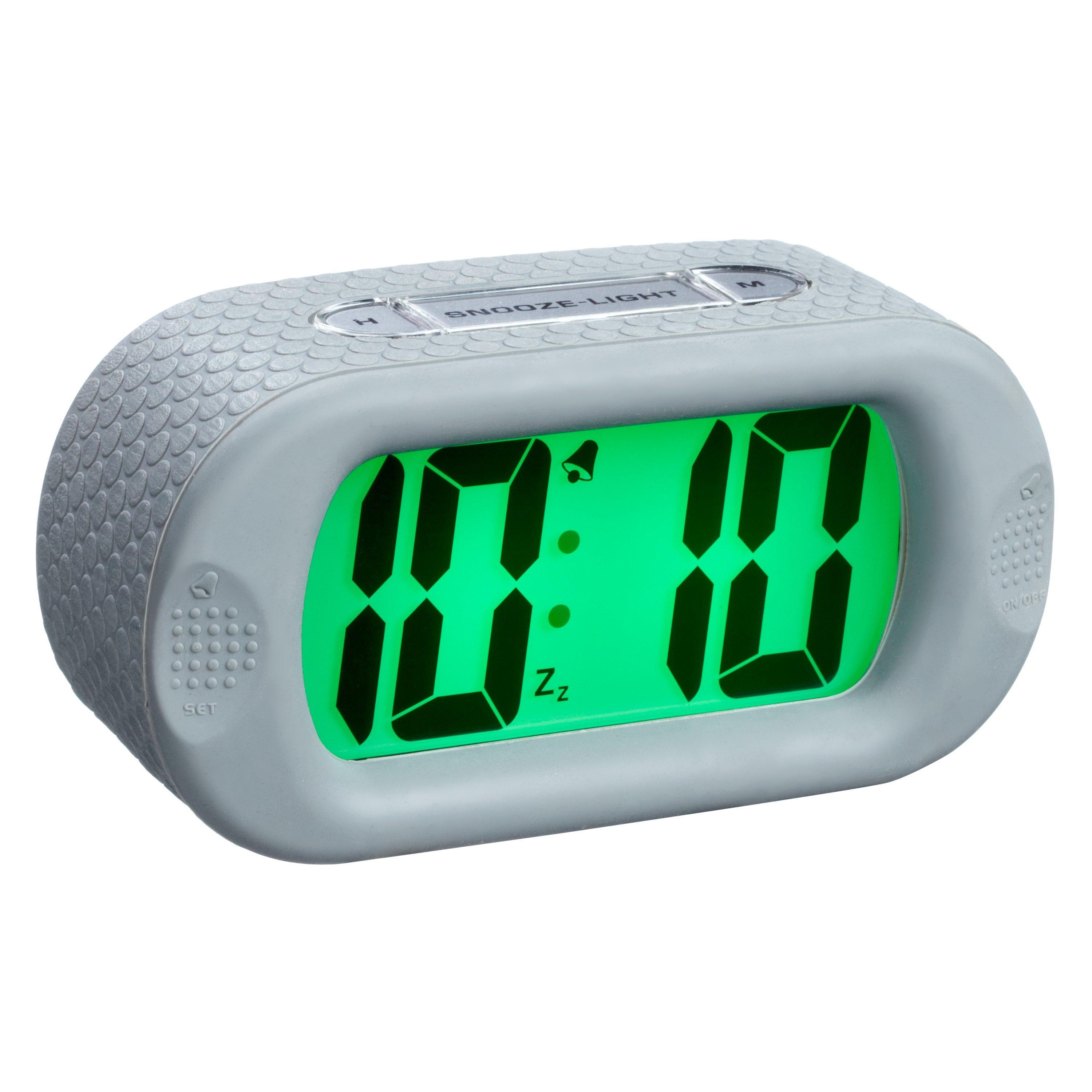 This alarm features a soft-touch silicone case and a large digital display which lights up at the touch of a button. It's just as easily viewed at night thanks to Smartlite® technology. The bright backlight illuminates the display as the room gets darker and turns it off again during the daytime to prolong battery life.