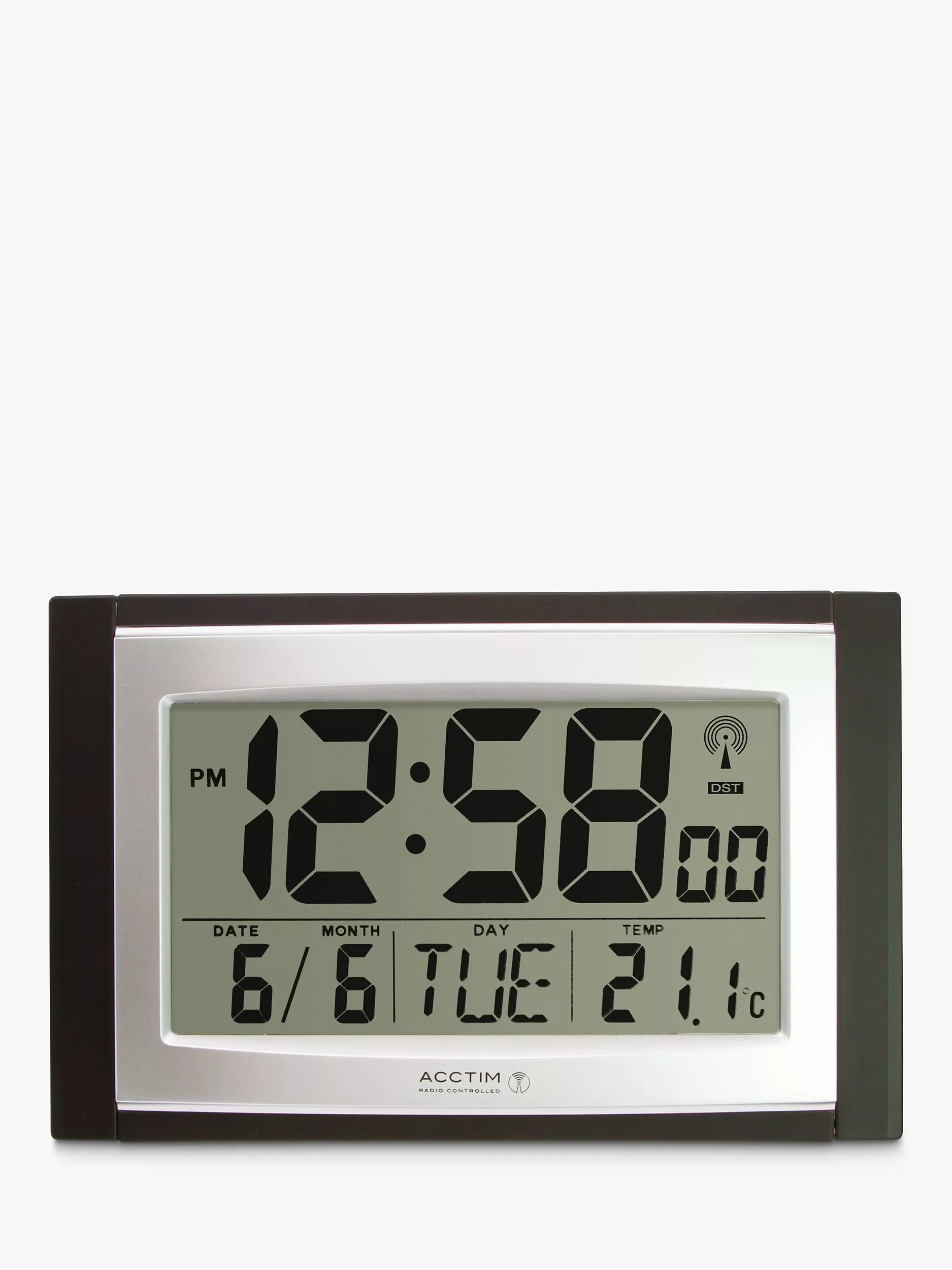 At home, on the table or wall, this radio-controlled LED clock features automatic set-up, calendar, alarm and indoor temperature. Get the date, month and day and rely on the radio-controlled clock for precision time-keeping and automatic daylight saving updates.