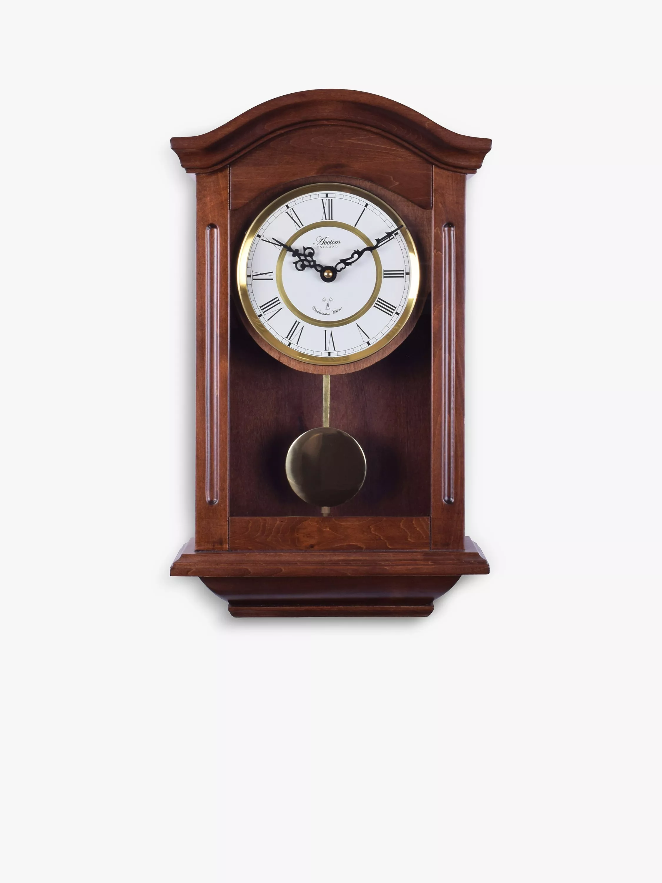 An understated regulator clock with a carved dark wood case and glass front, Thorncroft from Acctim has a pressed metal dial and a chapter ring. Thorncroft also keeps perfect time with its radio-controlled technology, decorative hands and traditional Roman numeral hours. Featuring an hourly Westminster chime and strike, this pendulum clock has volume control and automatic night shut-off.