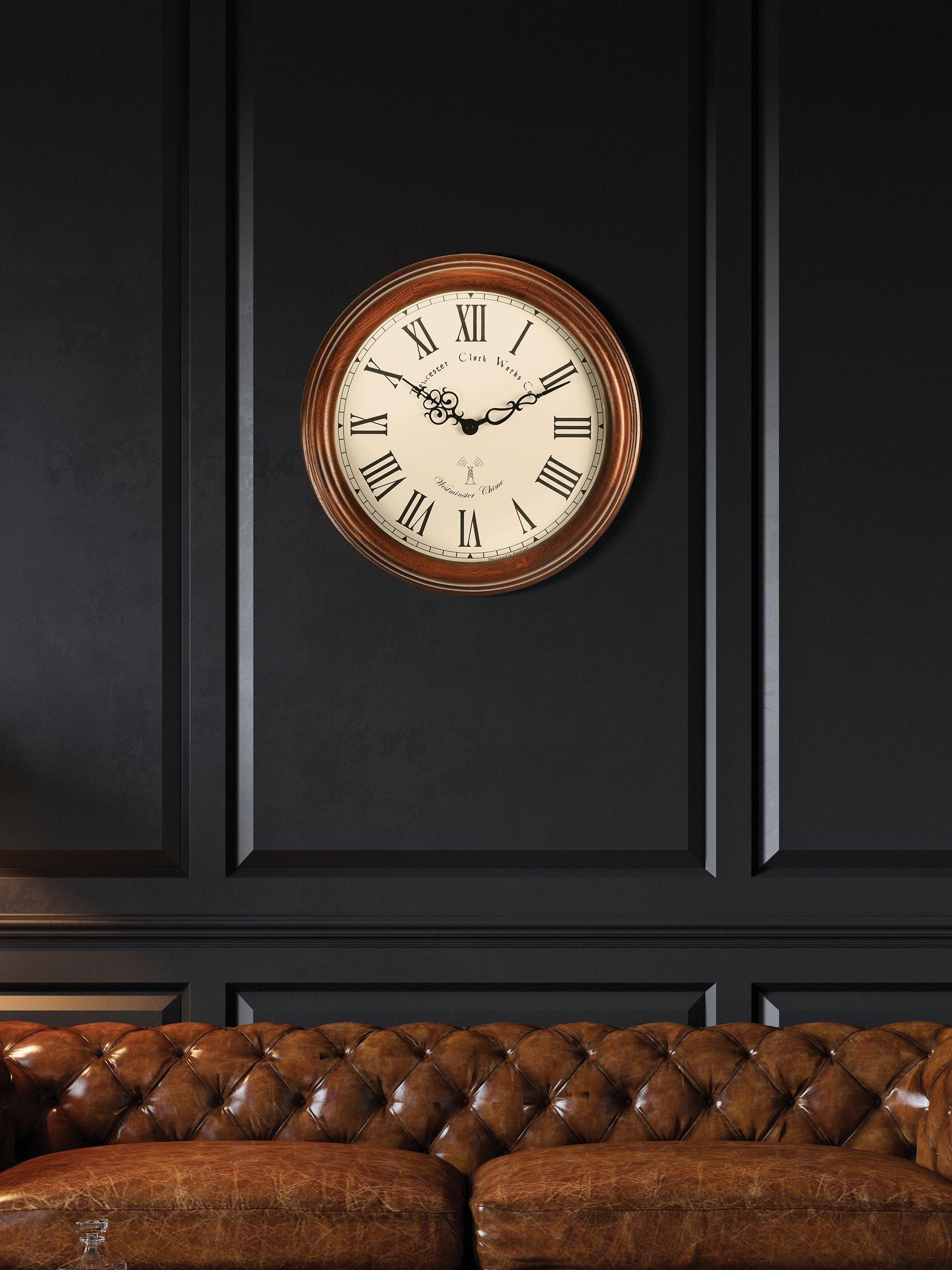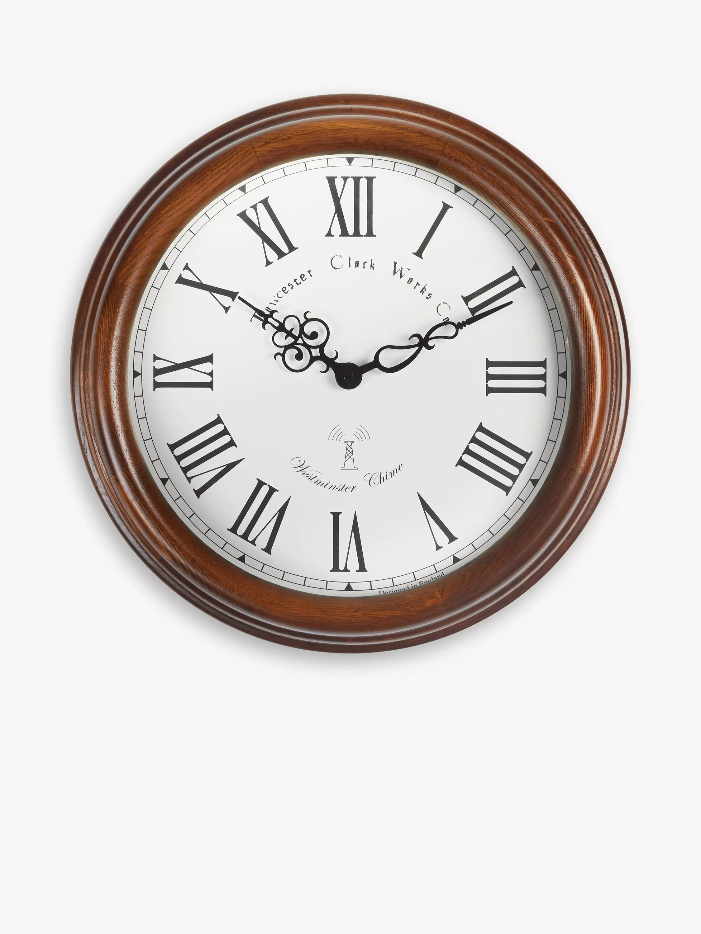 Taking its name from the beautiful historical village in the Cotswolds, Lacock seamlessly combines the traditional with the modern. Complete with Roman numeral hours and ornate clock hands, this wooden-cased atomic wall clock keeps perfect time from the MSF radio signal in Cumbria and delivers it with panache through its hourly Westminster chime.