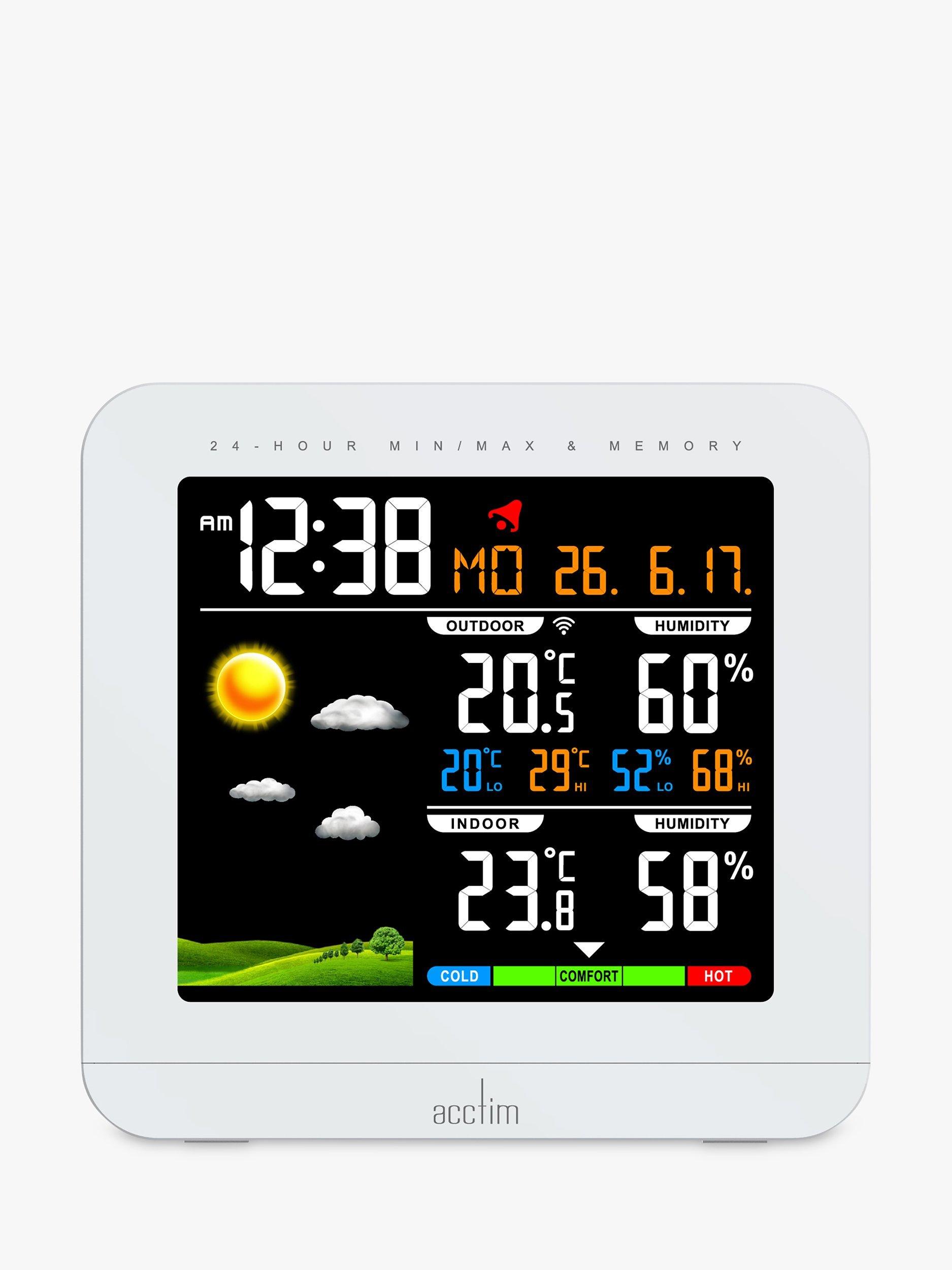 The Acctim Wyndham Weather Station is an alarm clock as well as an indoor and outdoor weather gauge, with an included wireless outdoor temperature sensor.