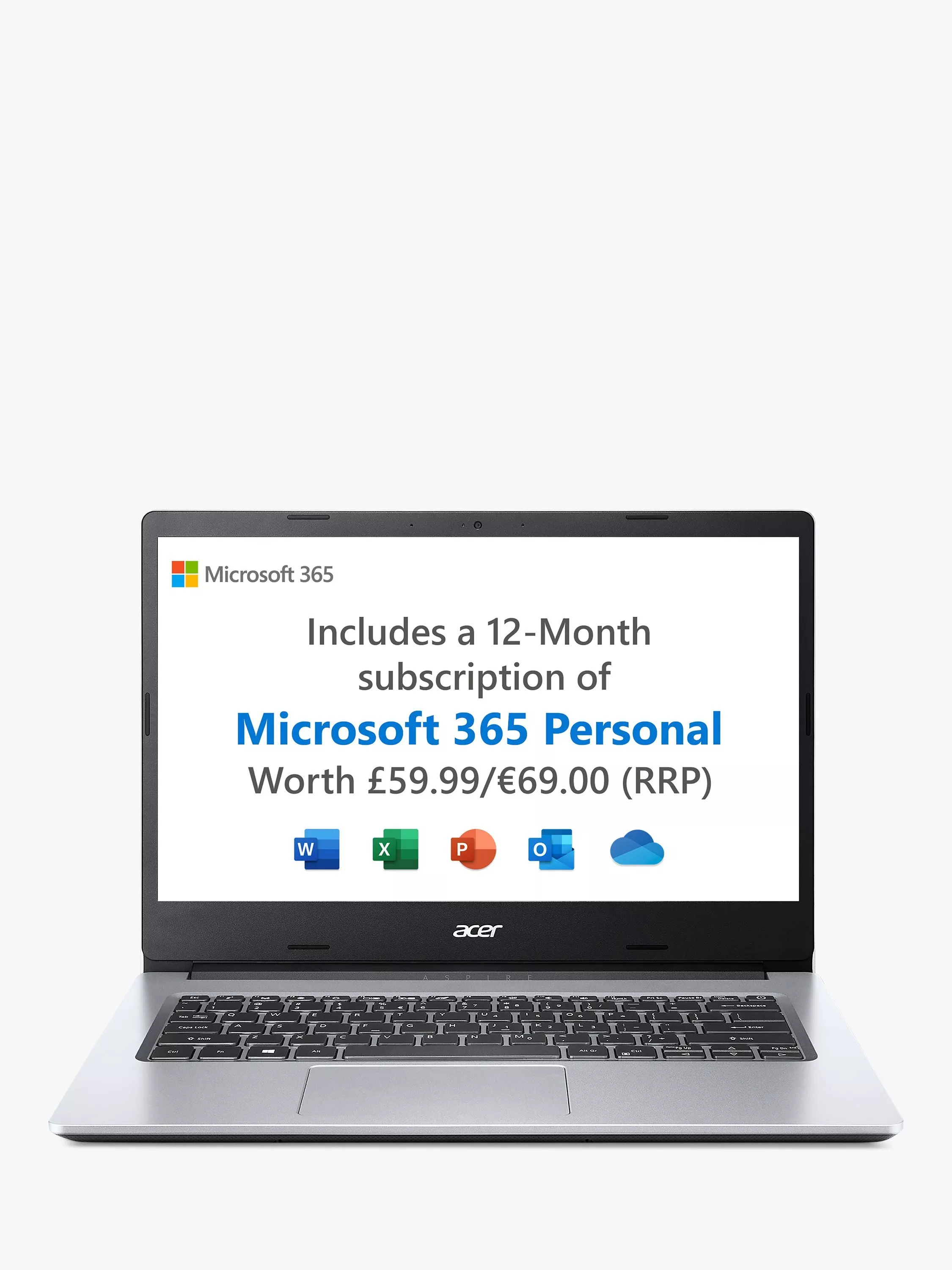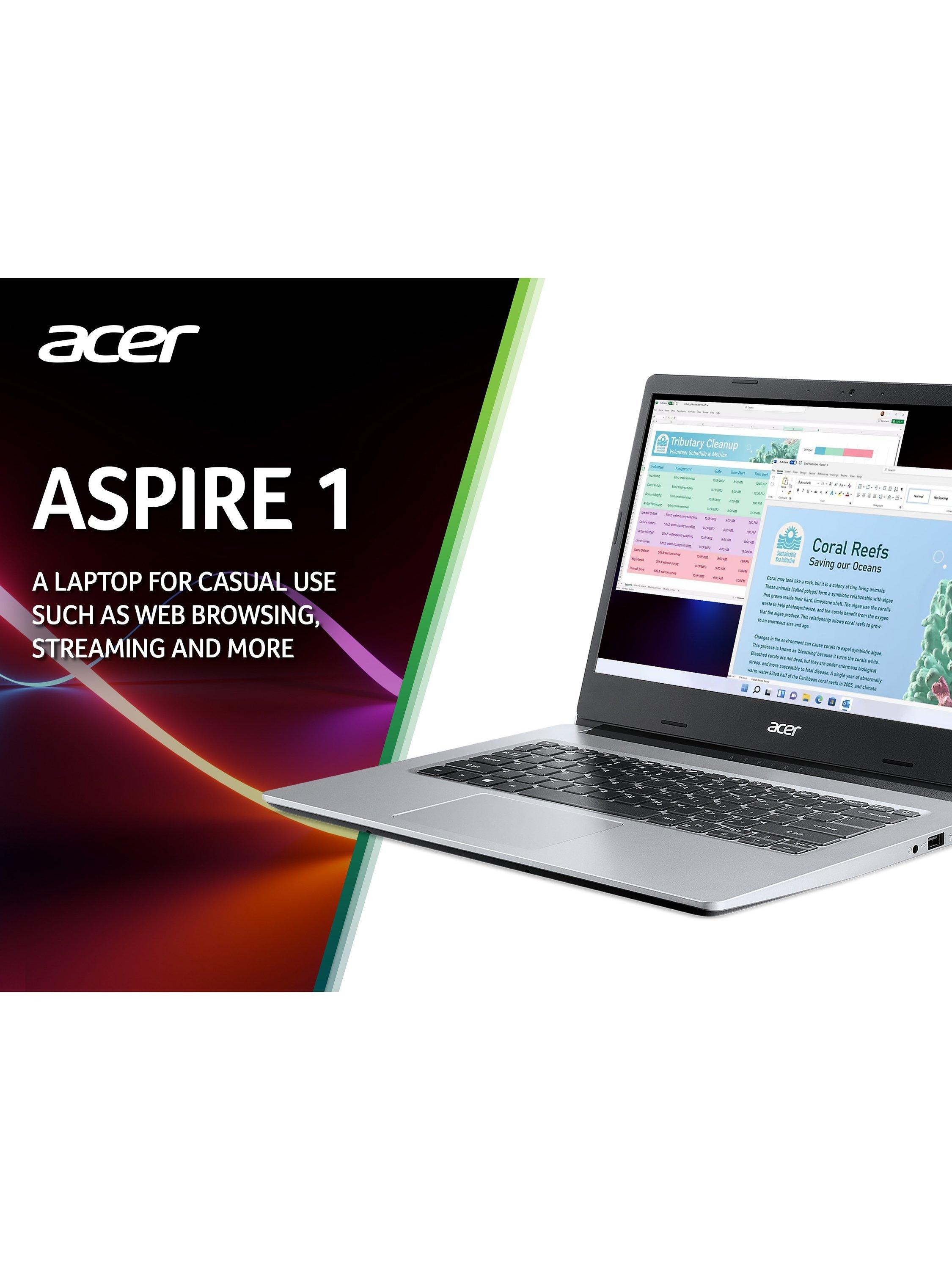 AcerAspire 1 Laptop, Intel Pentium Silver Processor, 4GB RAM, 128GB eMMC, 14” Full HD, Silver