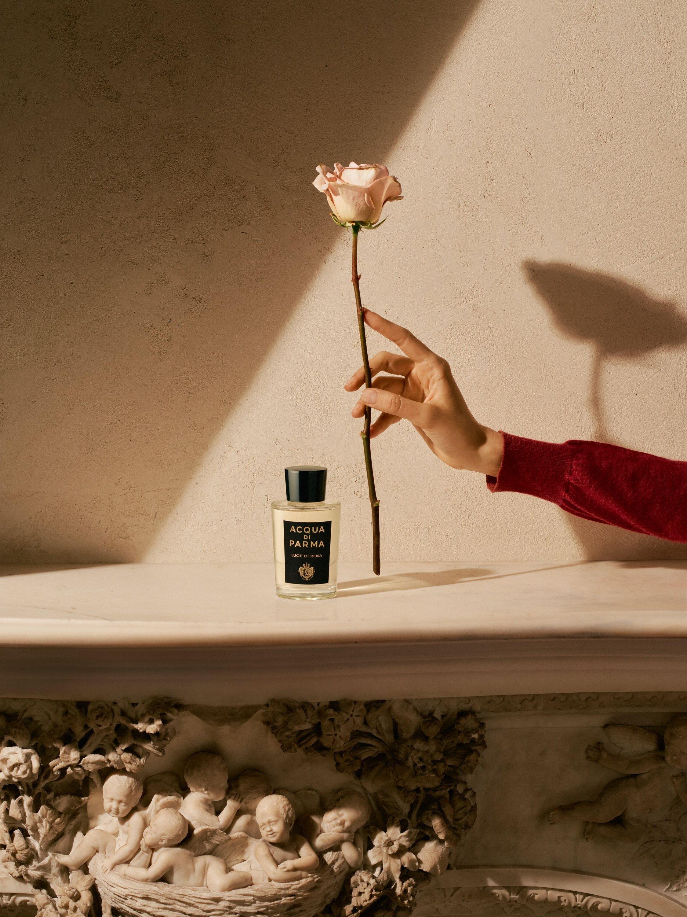 Luce di Rosa is the sublimation of a contemporary and dynamic rose sculpted by light that counters mineral sharpness with a chiaroscuro effect, giving life to a multifaceted gender-neutral scent whose vibrant, clean, and bright notes are reminiscent of a symphony that alternates between piano and forte, adagio and vivace.
