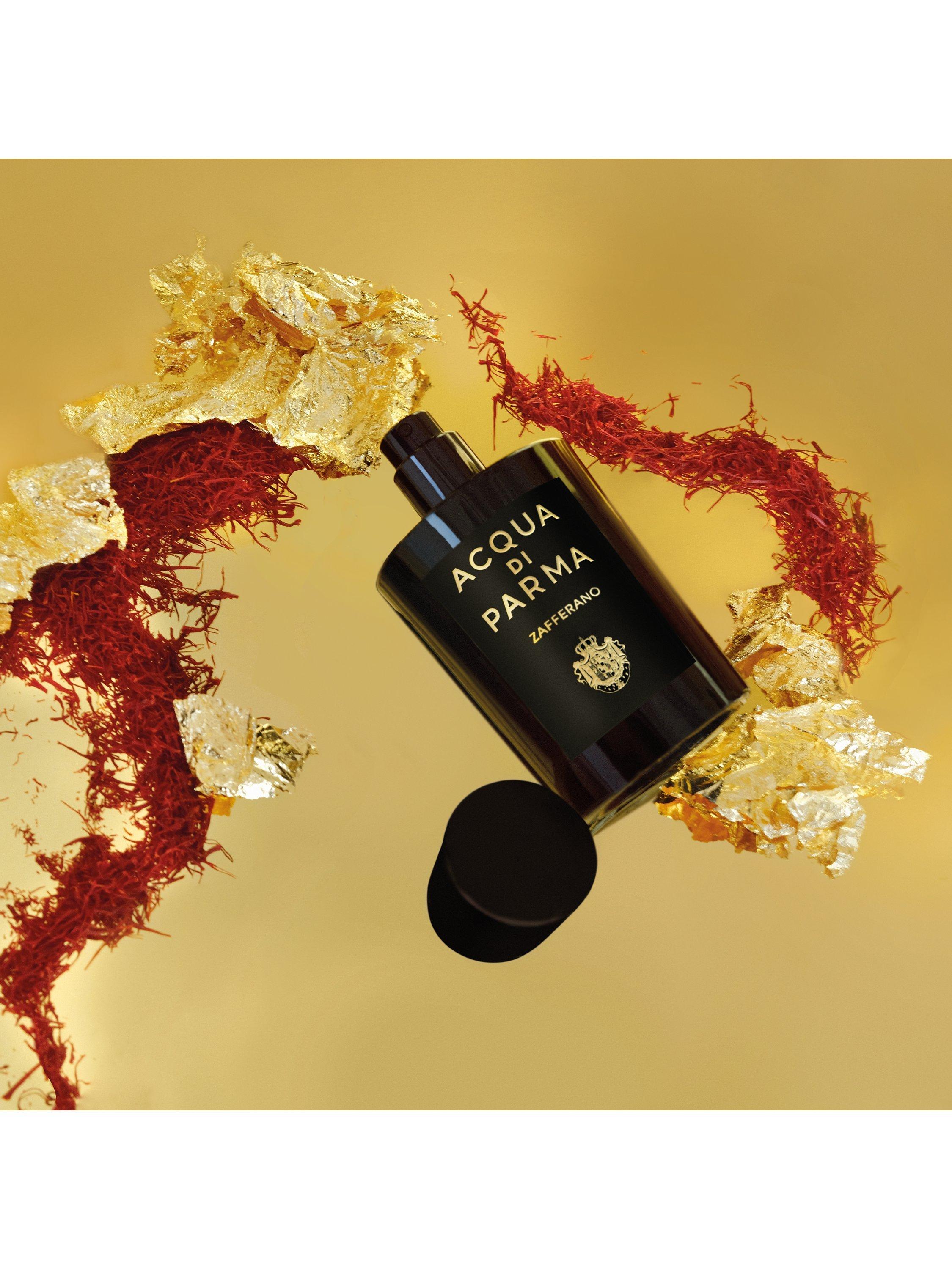 In Acqua di Parma's Zafferano, the warm and dry notes of saffron are distilled and combined with luminous notes of Italian golden fruits, like gilded sparks dancing with the intense spicy notes to create an unexpected and vibrant sensation.