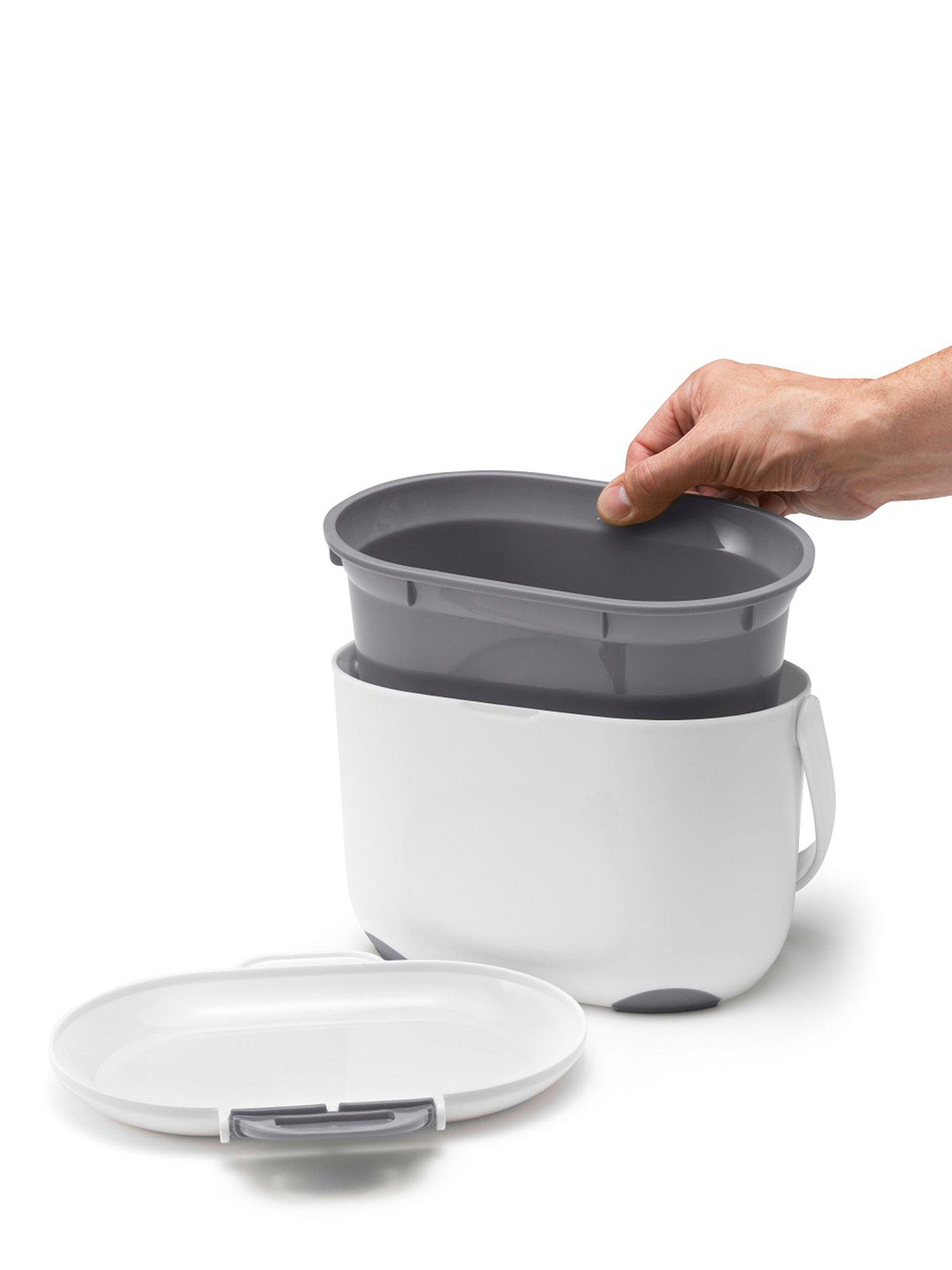 This stylish and functional compost caddy comes with a removable inner bucket for easy cleaning and a carry handle for added convenience.