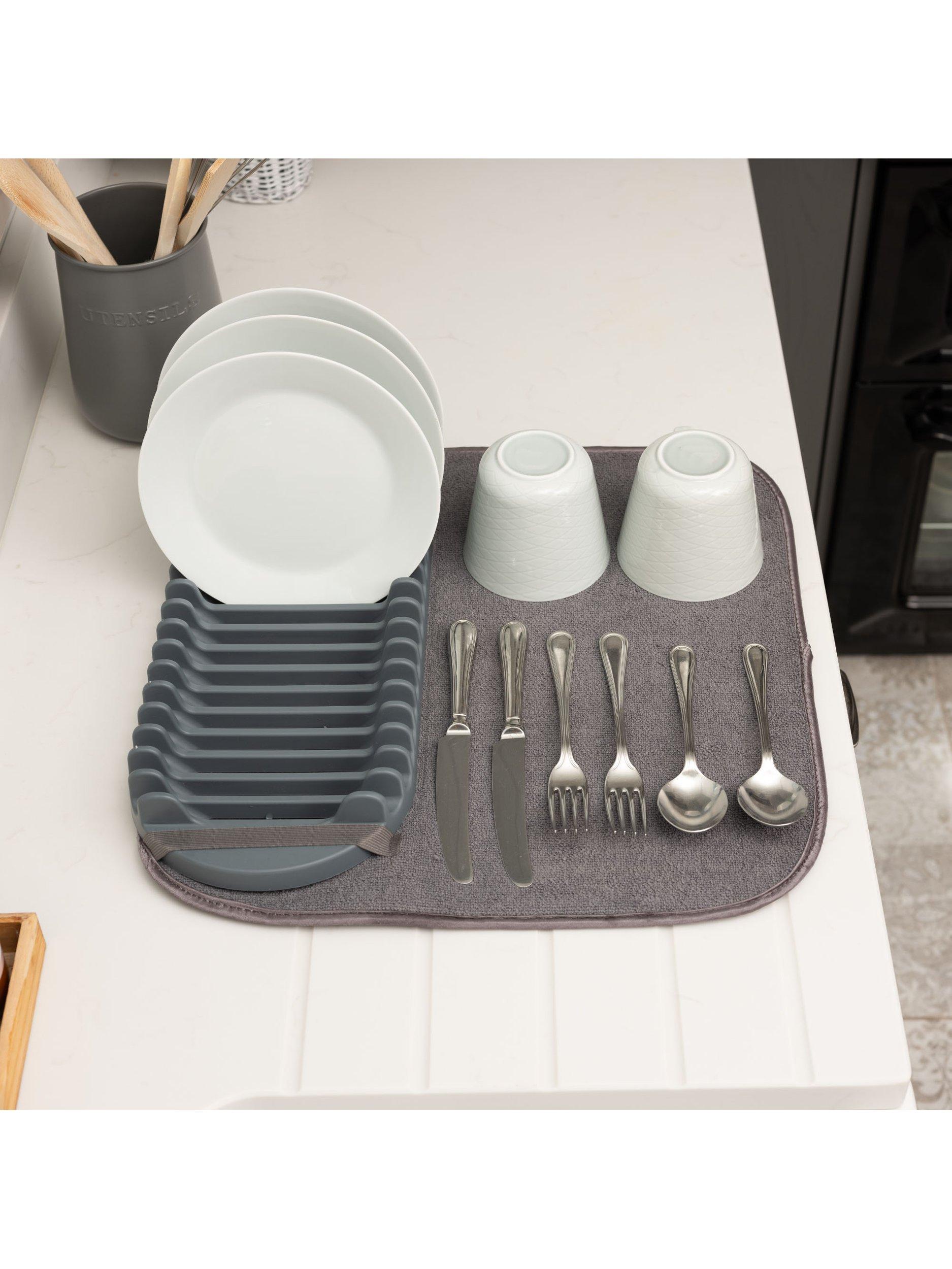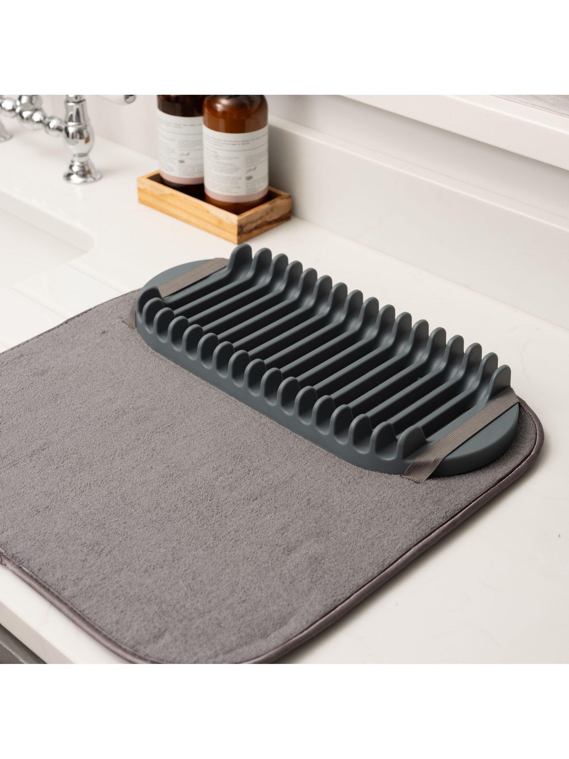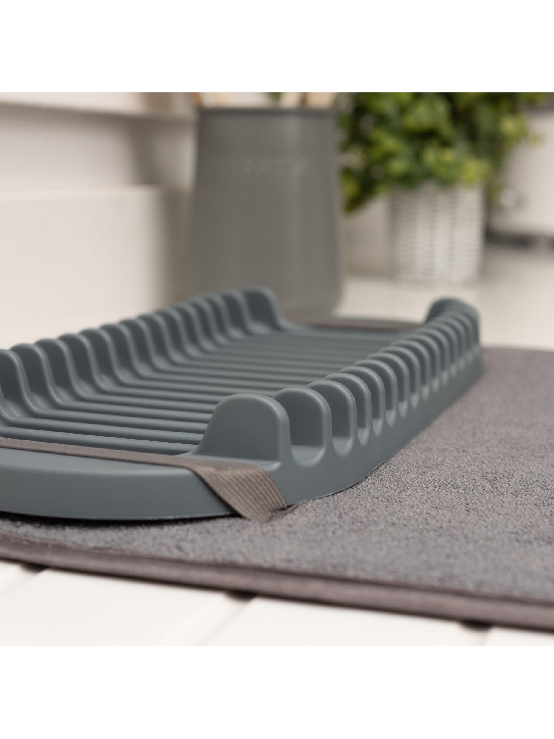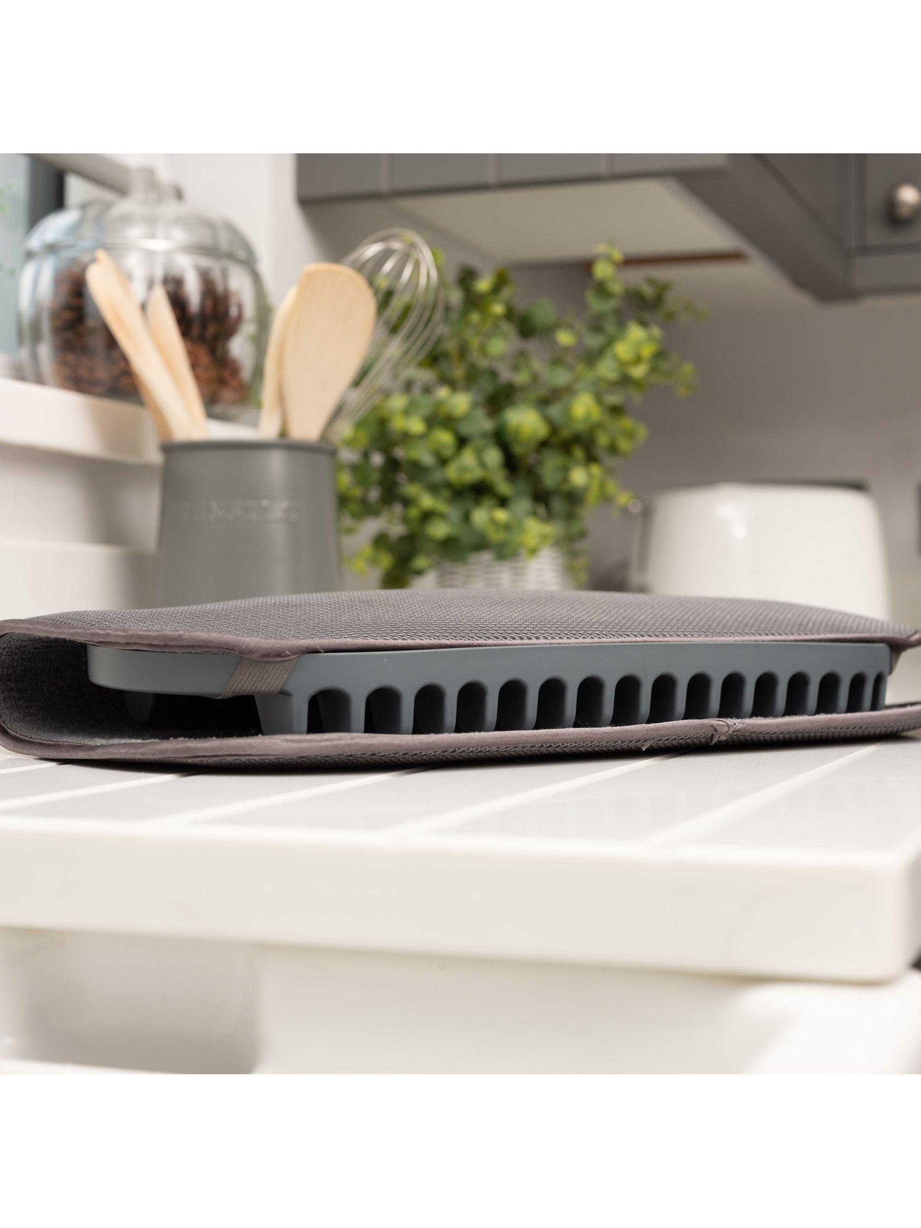 The mat absorbs water whilst protecting the worktop and has a removable, durable dish drainer that conveniently folds away, keeping the counter clutter free.