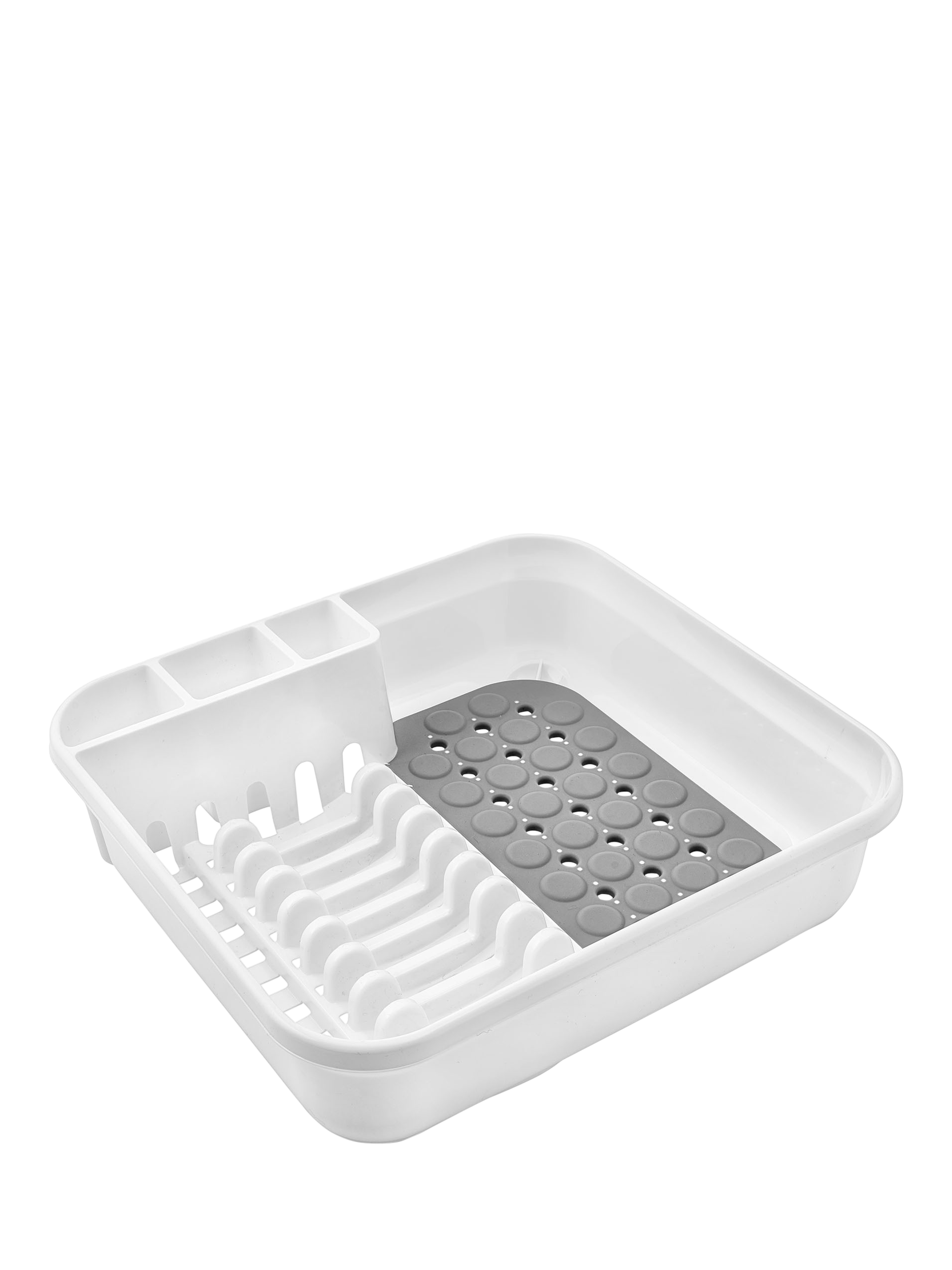 A large drainer in a wipe clean finish, with soft-touch feet to protect your sinkside and a soft-touch liner to protect glassware and cups.