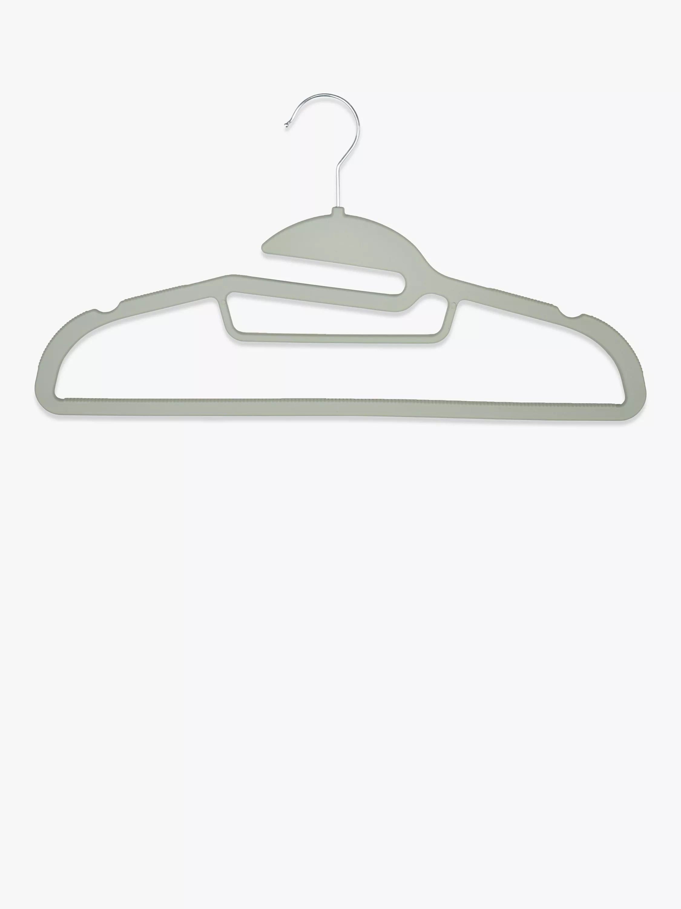 These rubber clothes hangers stop your clothes from sliding and moving around, helping prevent creases. They also have a 360° swivel hook for neat organisation and a slim profile to free up extra space for more clothes in your wardrobe.
