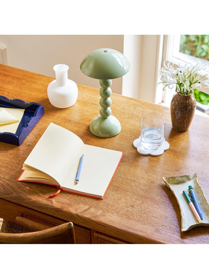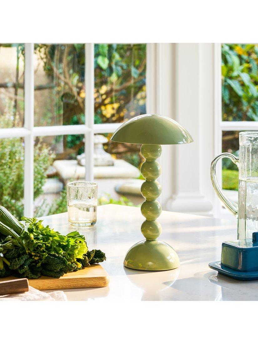 Part of Addison Ross's bobbin-shaped collection, this table lamp is a cordless design, offering up to 10 hours of battery life on its brightest setting and has three adjustable light levels. Tap the button on the top to activate the LED Lamp. The unique and versatile lamp can be used as a portable or stationary lighting feature.