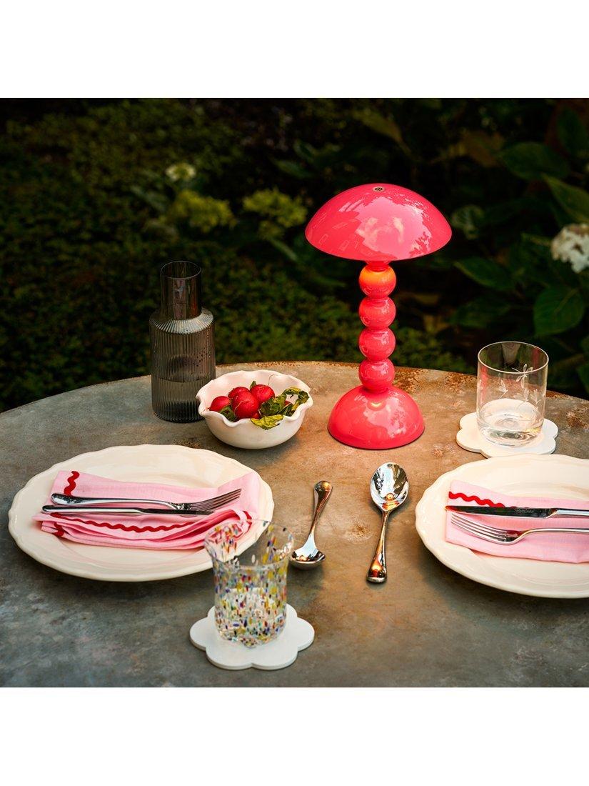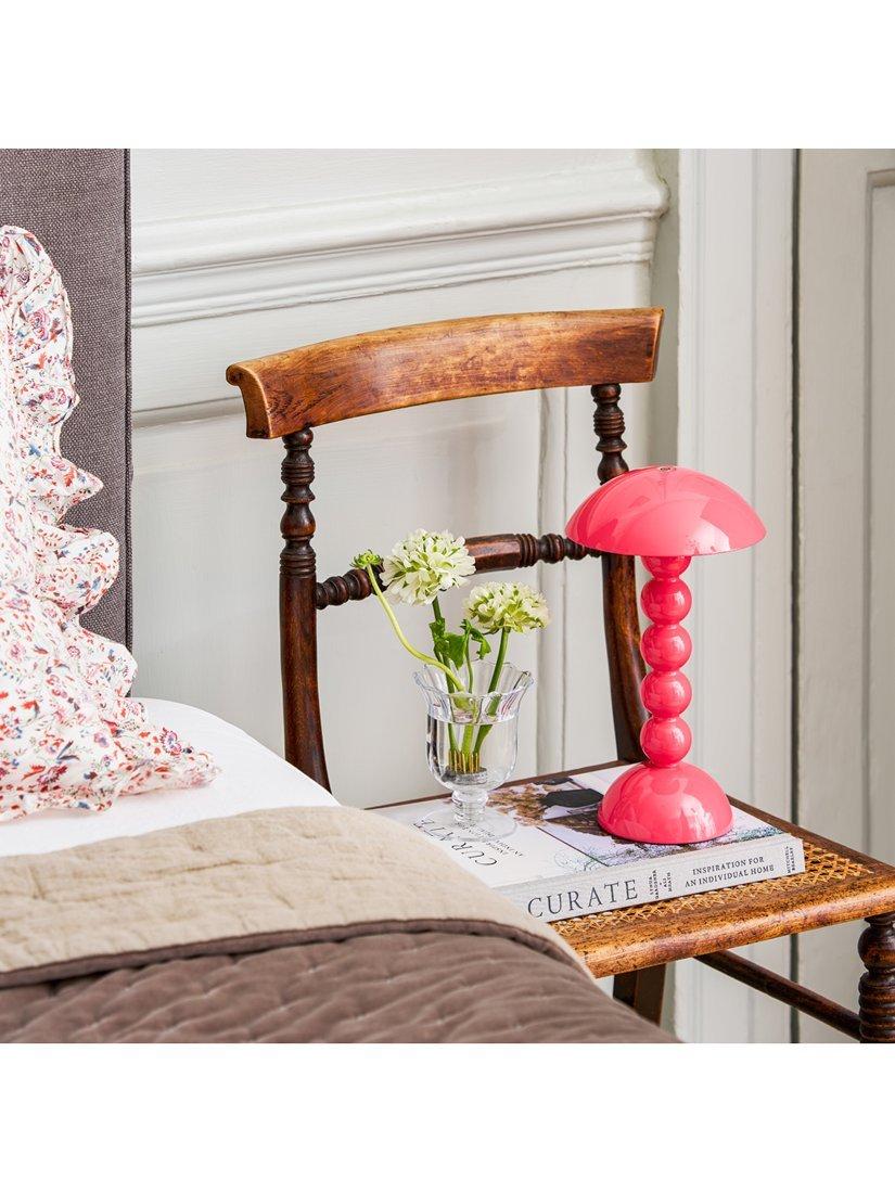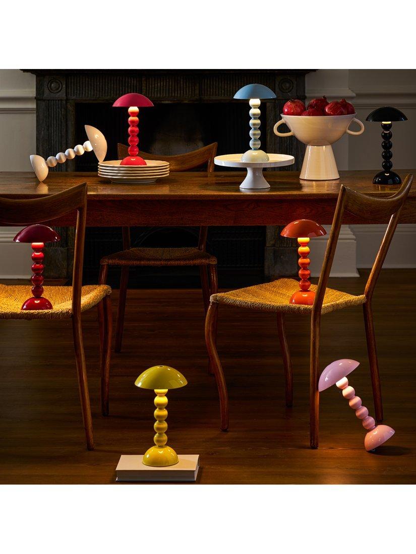 Part of Addison Ross's bobbin-shaped collection, this table lamp is a cordless design, offering up to 10 hours of battery life on its brightest setting and has three adjustable light levels. Tap the button on the top to activate the LED Lamp. The unique and versatile lamp can be used as a portable or stationary lighting feature.